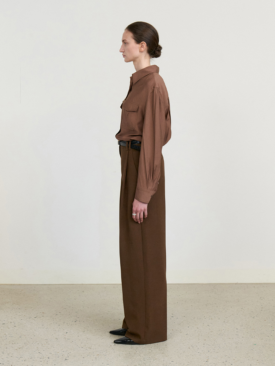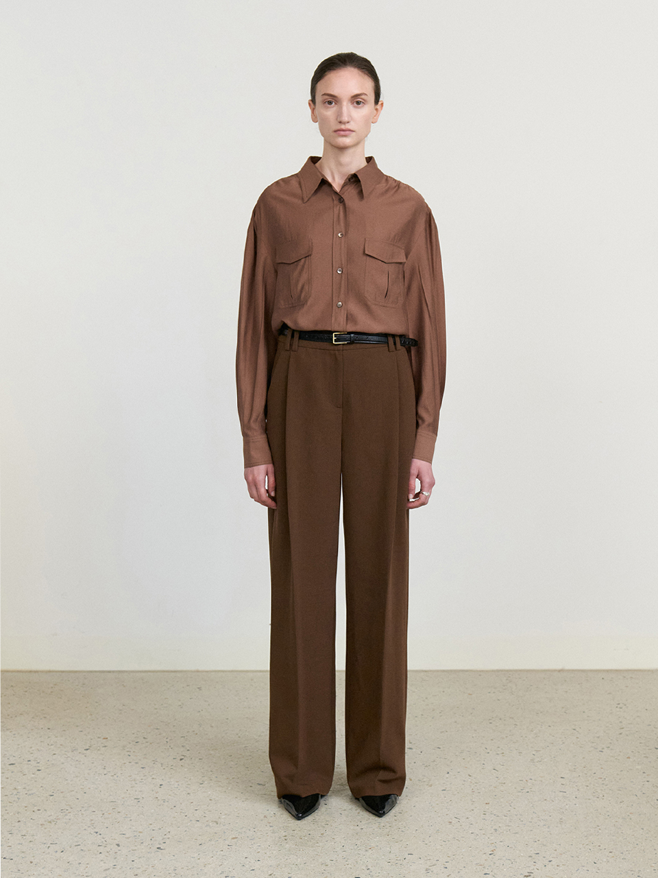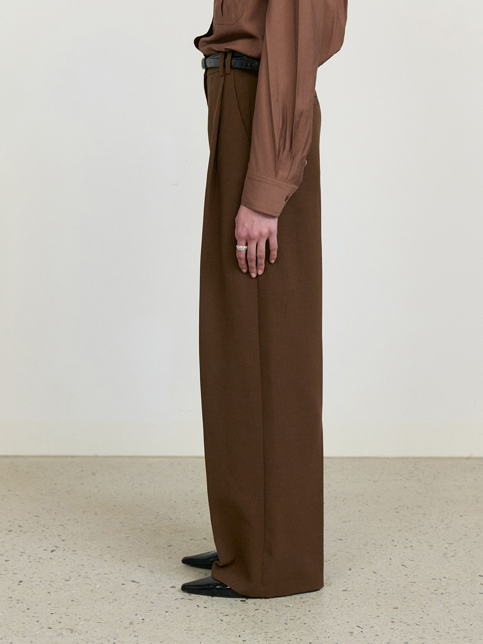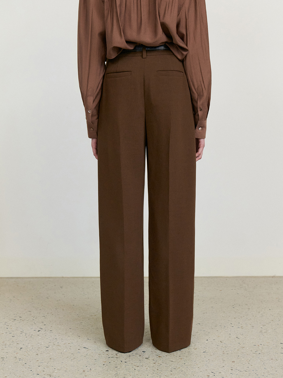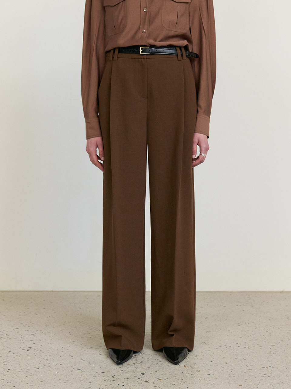 Front tuck wide slacks_BROWN