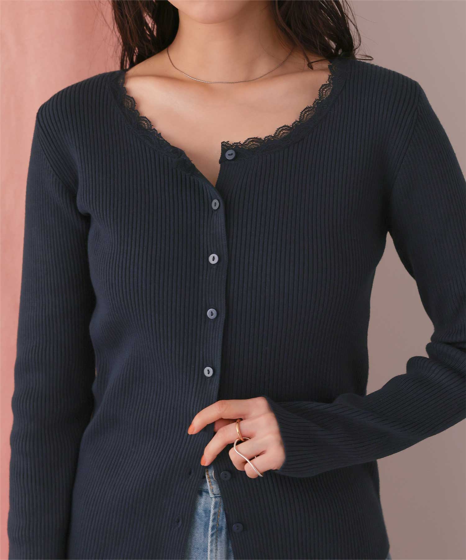 ・ほんのり甘く、でも大人っぽく。レース×リブの上品コンビネーション