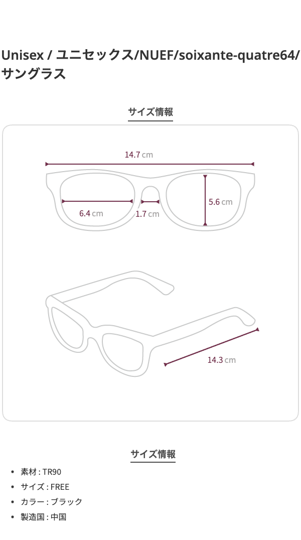 ユニセックス/NUEF/soixante-quatre64/サングラス/ブラック