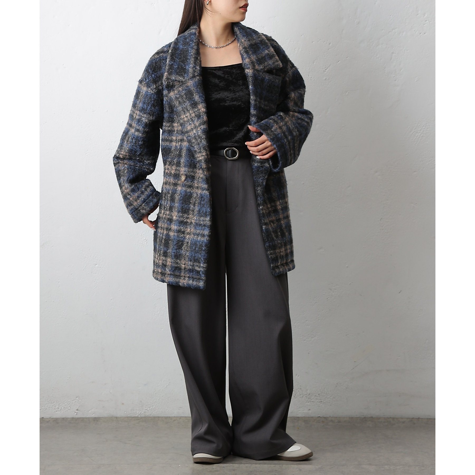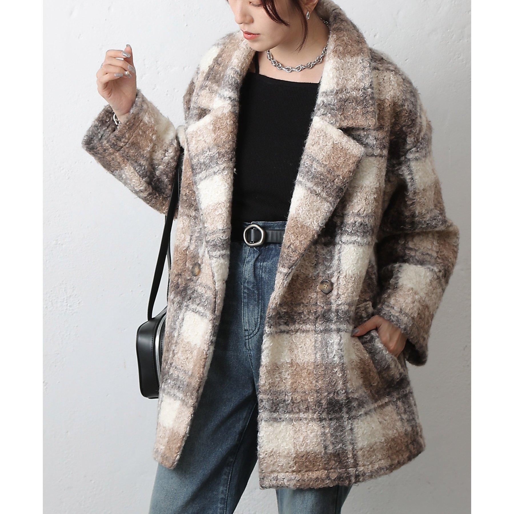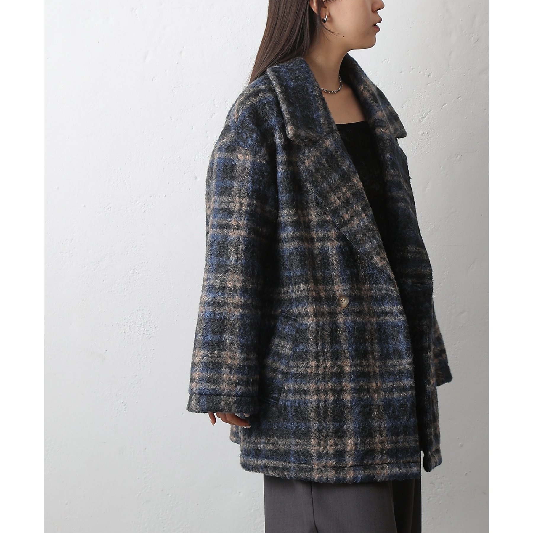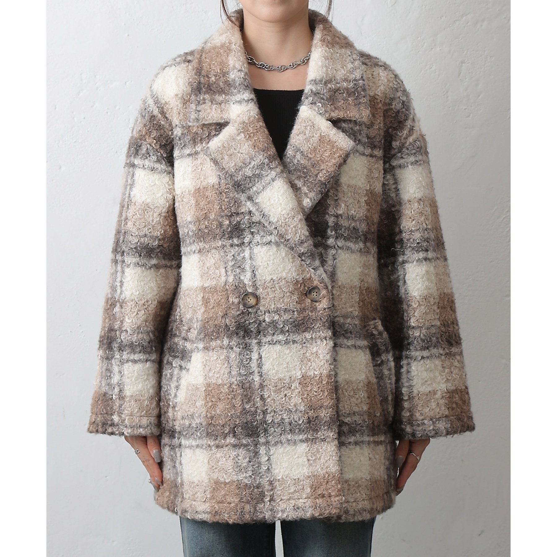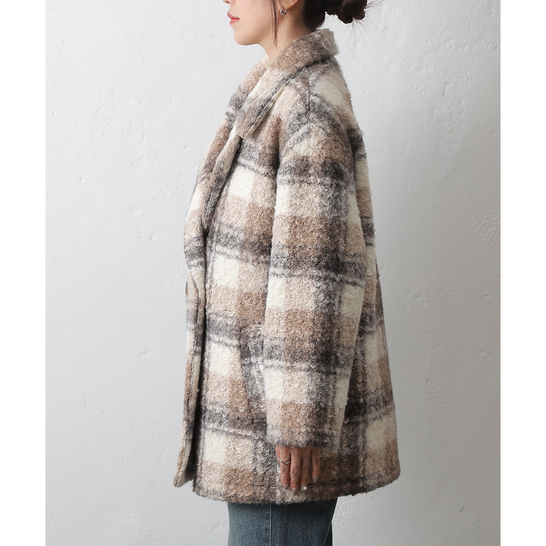 チェックダブルテーラードジャケットコート
