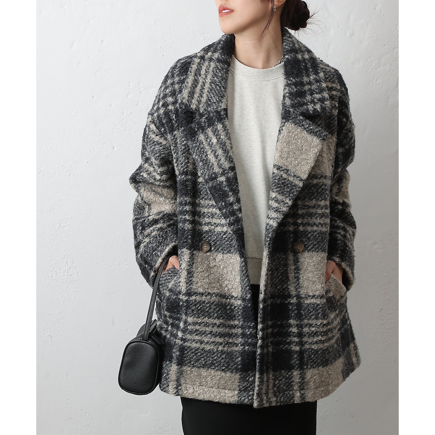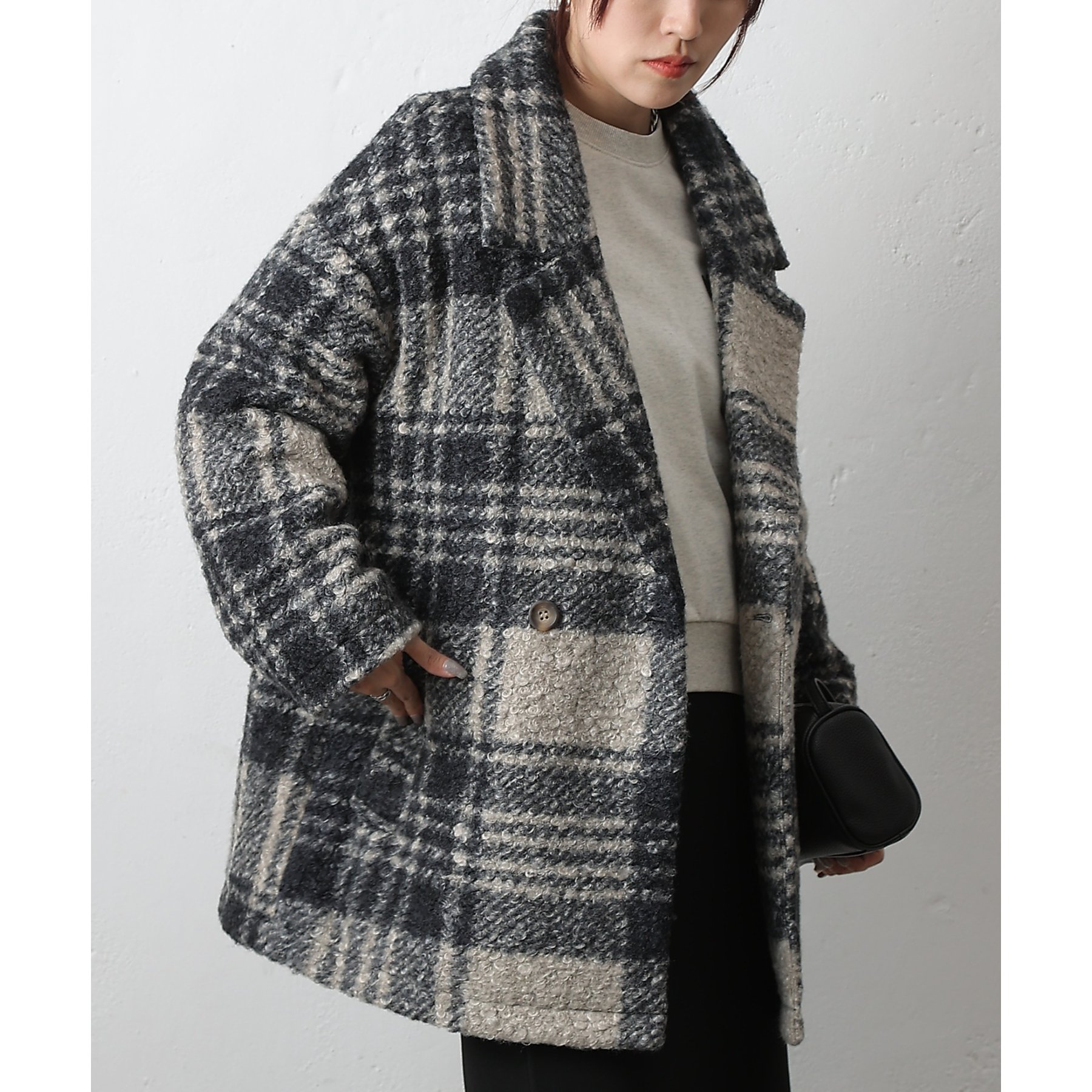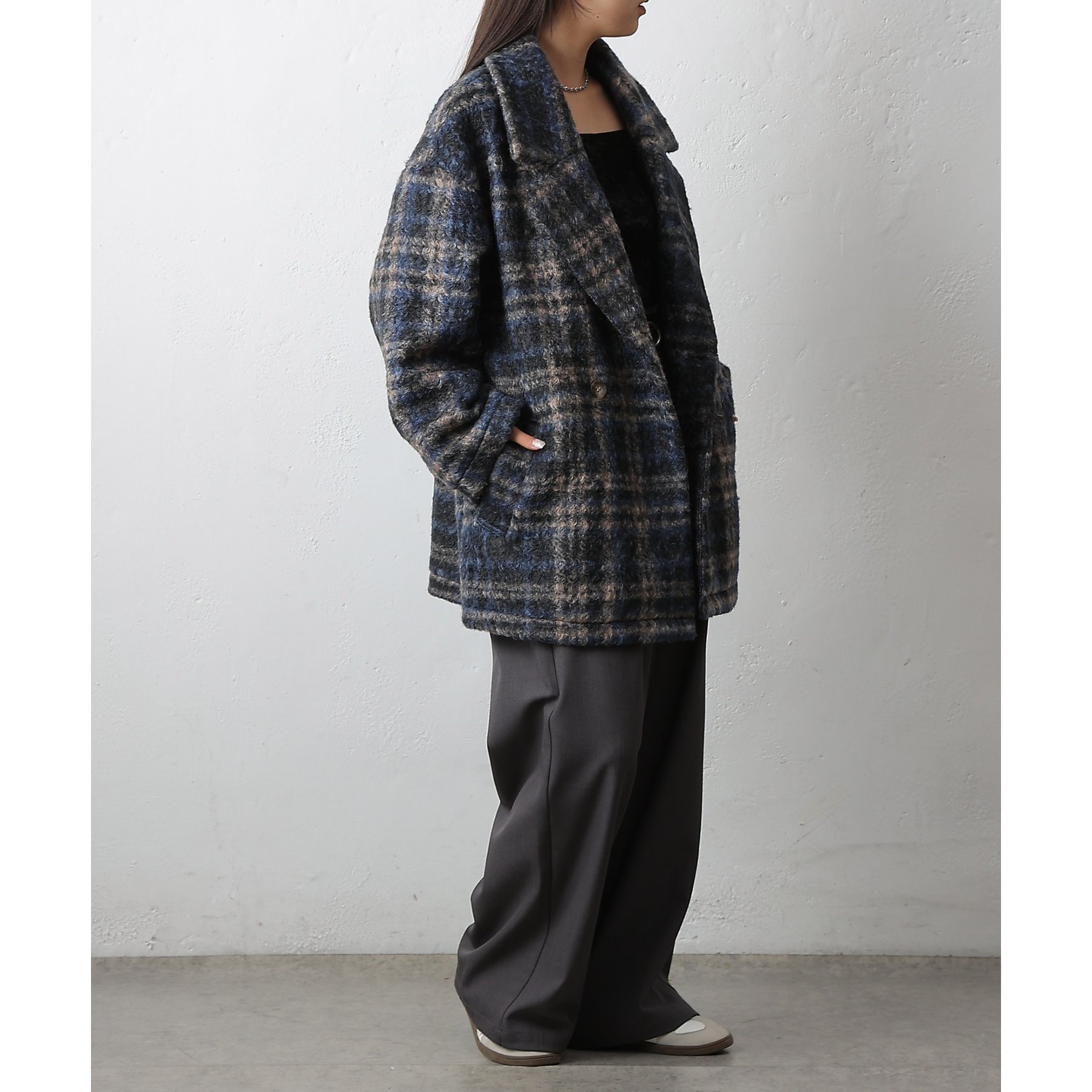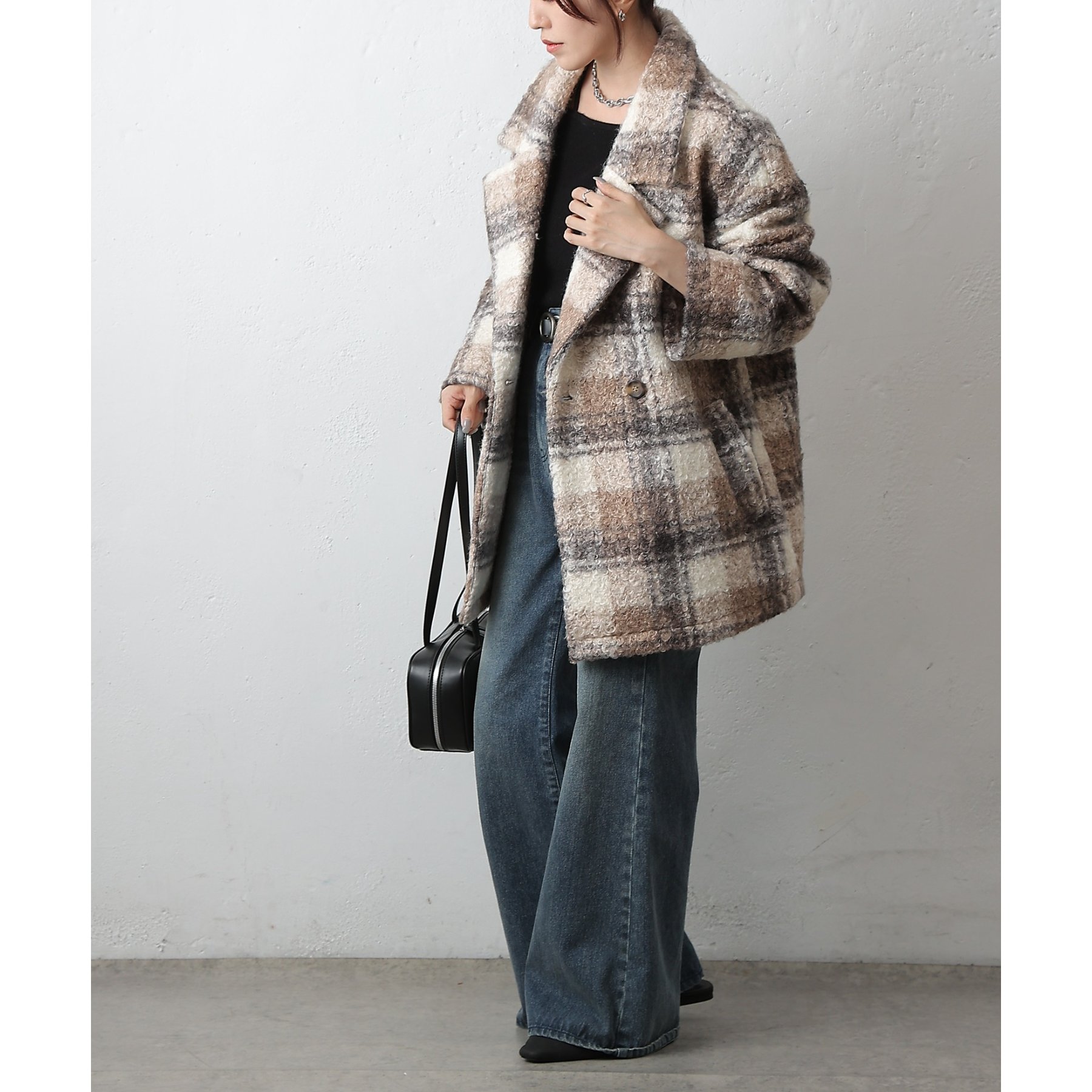 チェックダブルテーラードジャケットコート