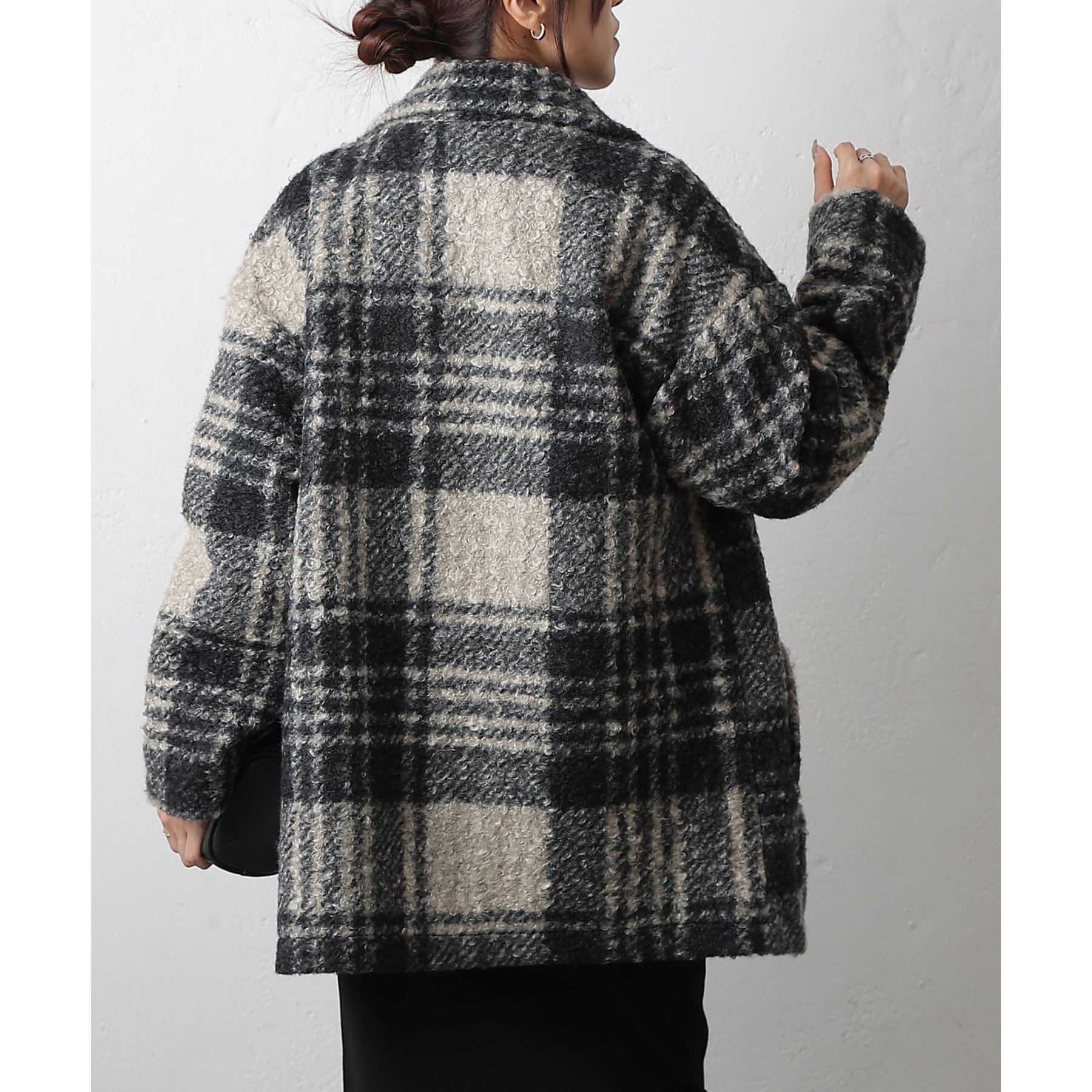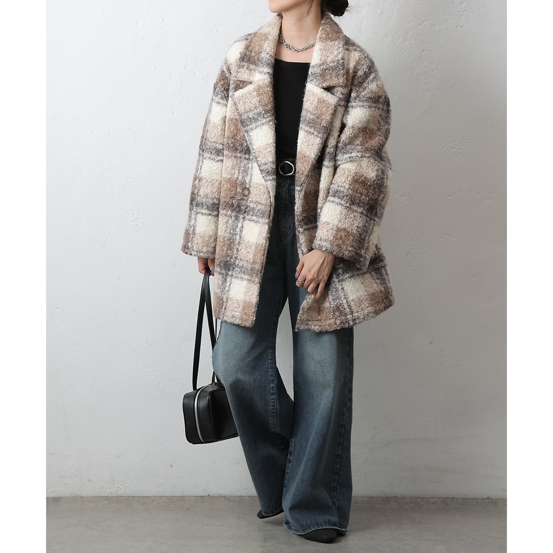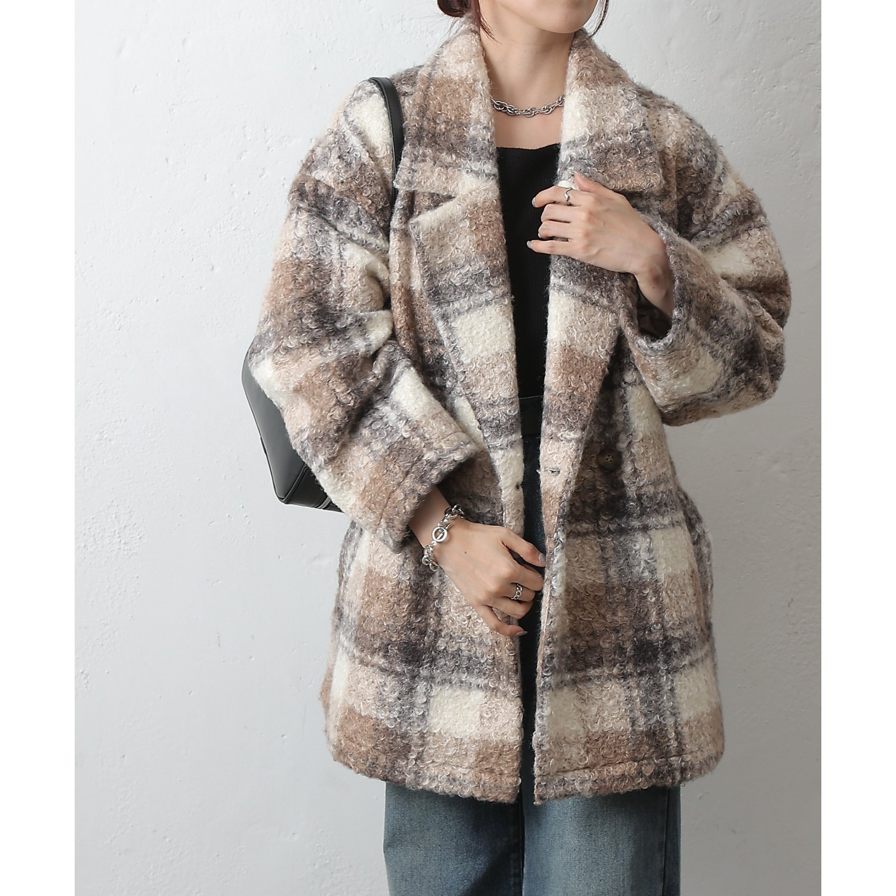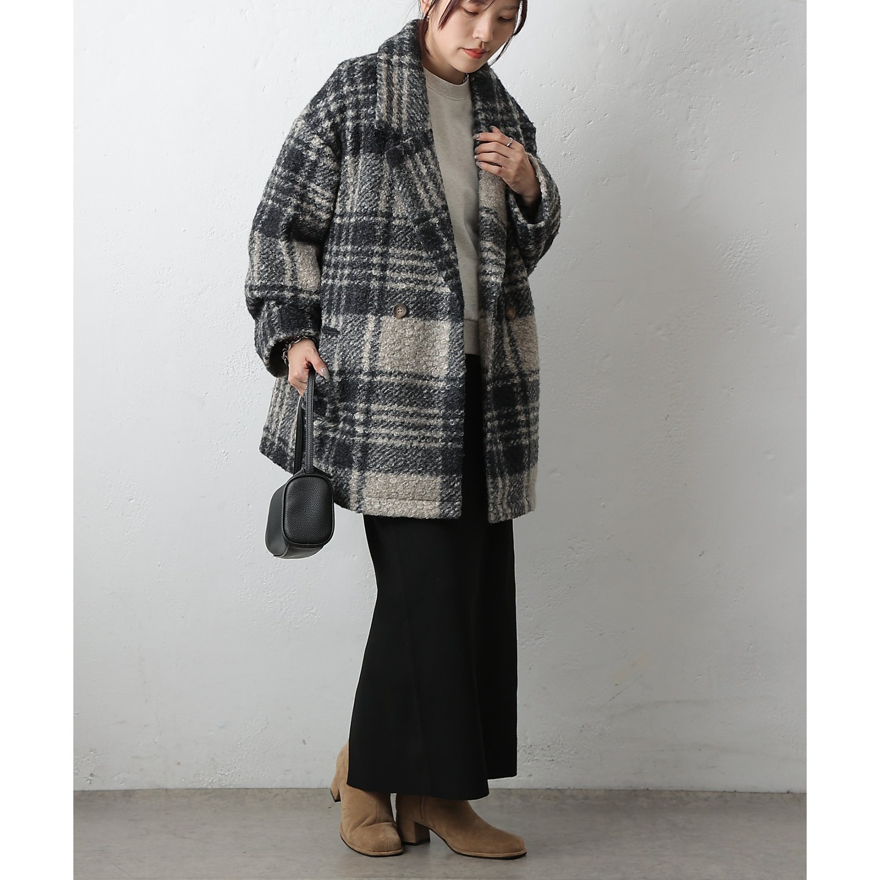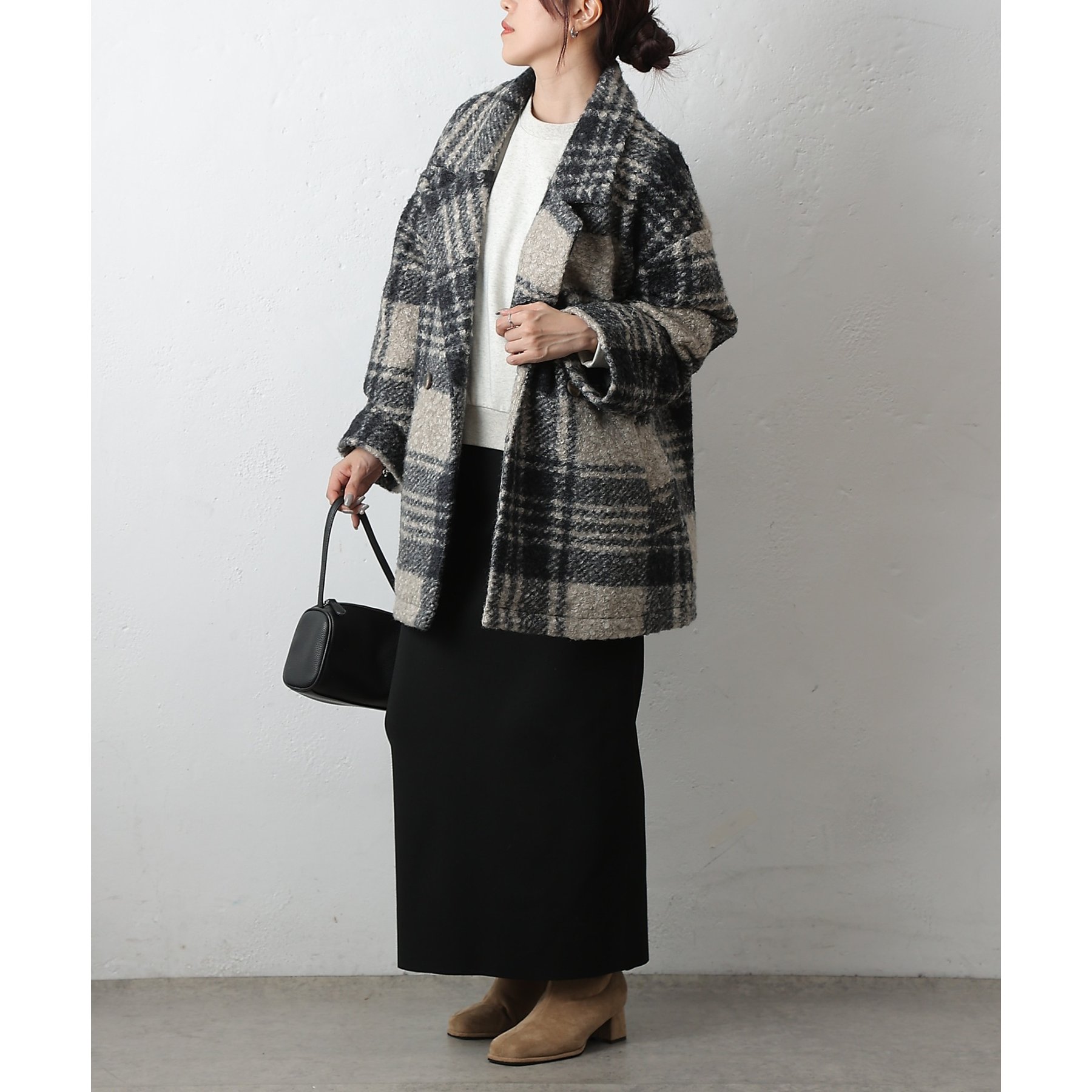 チェックダブルテーラードジャケットコート