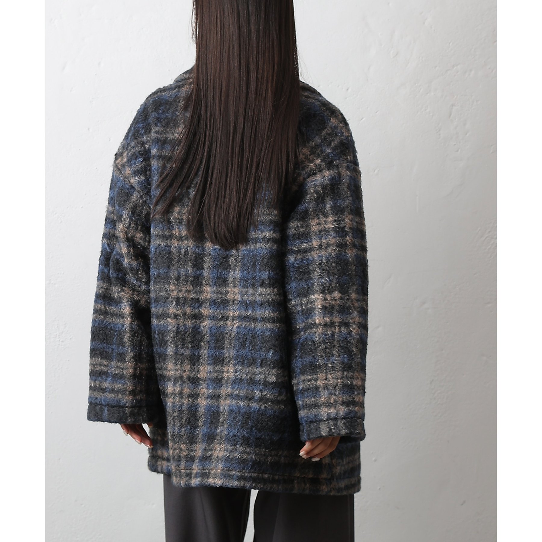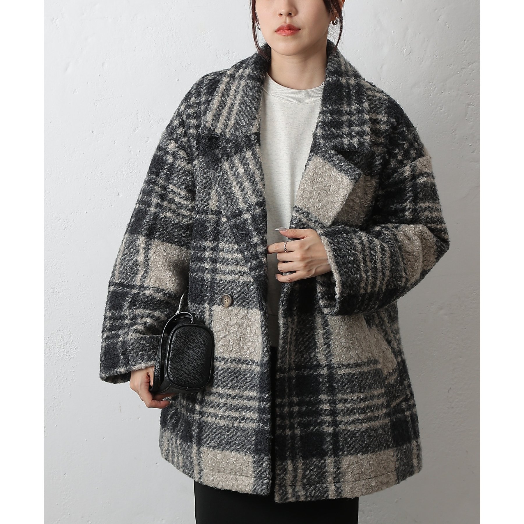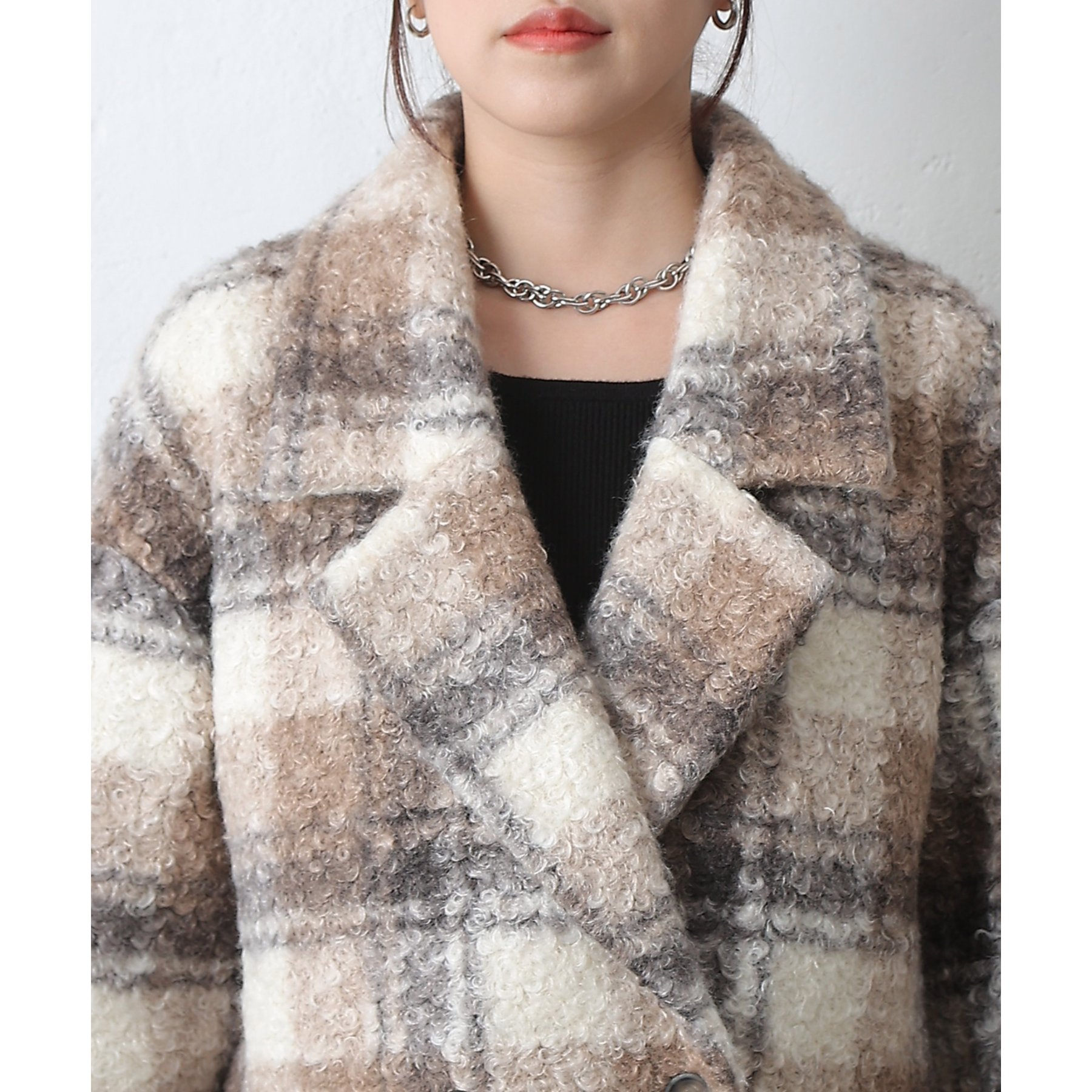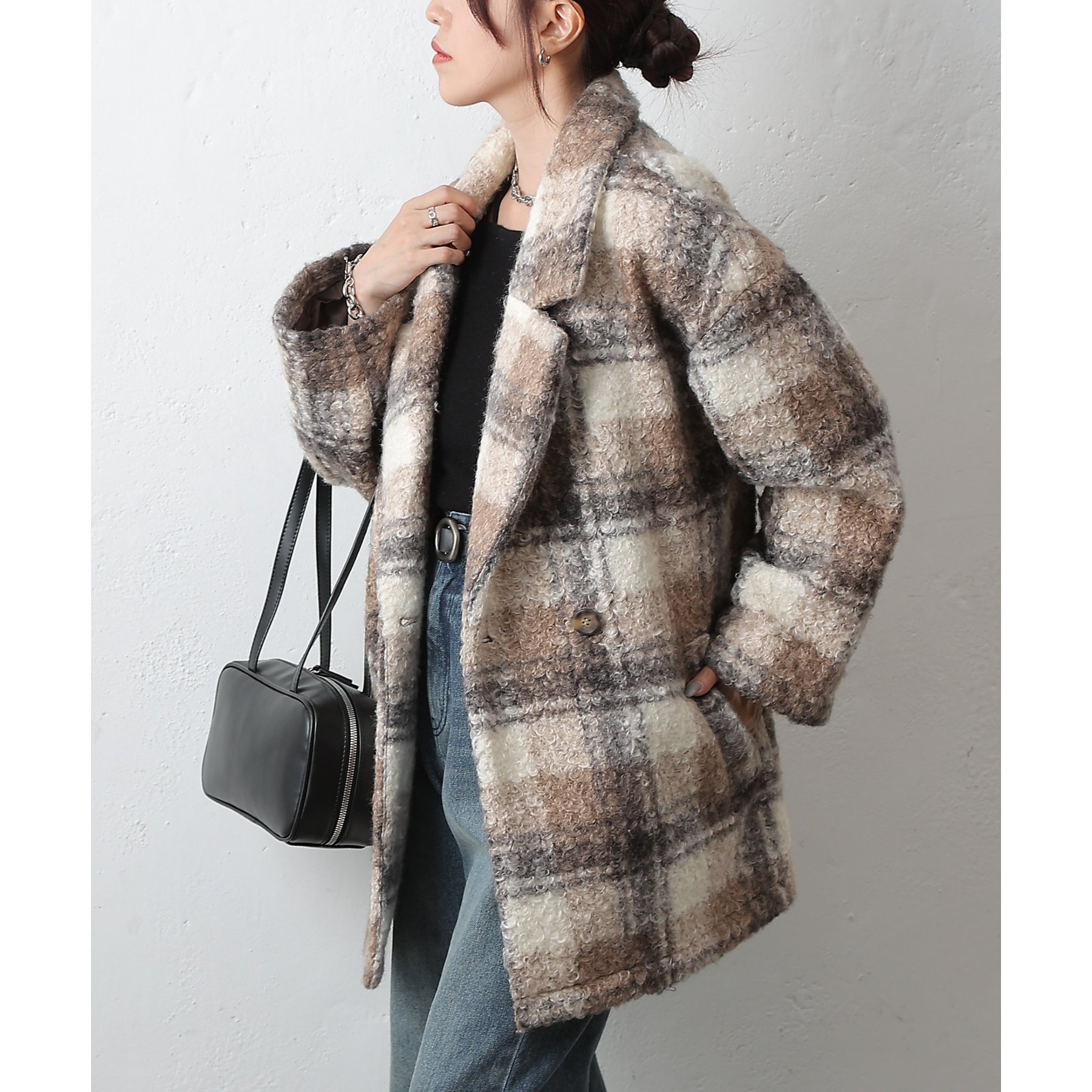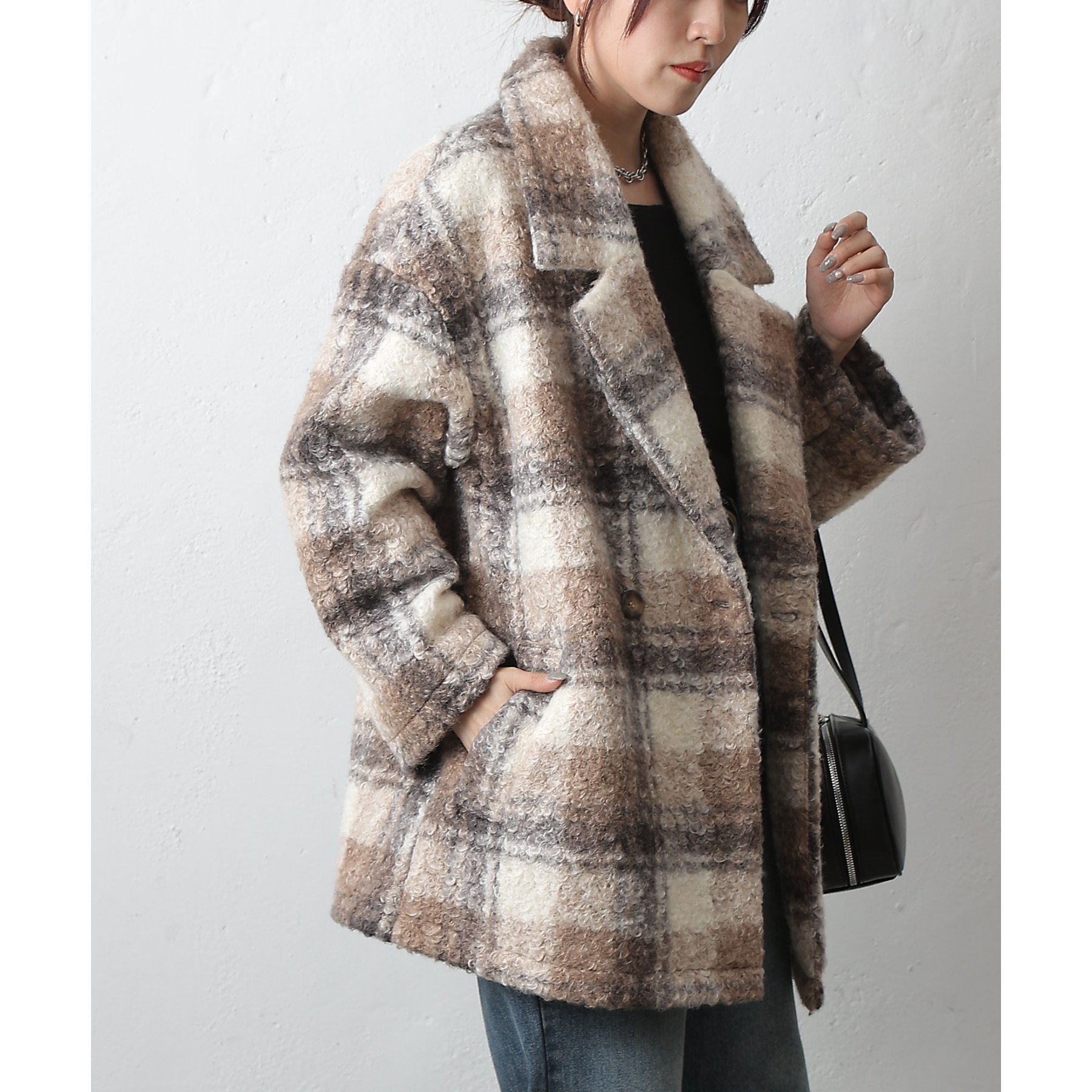 チェックダブルテーラードジャケットコート