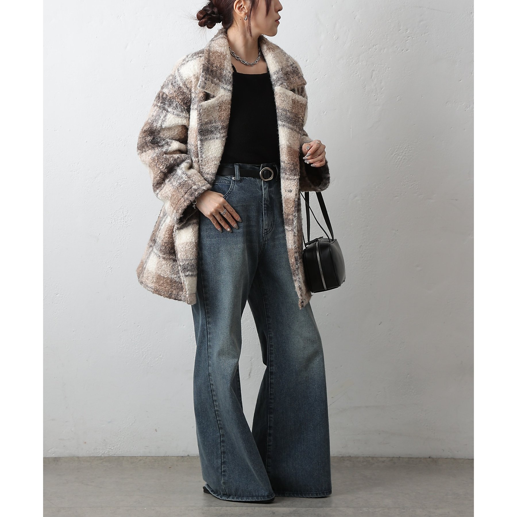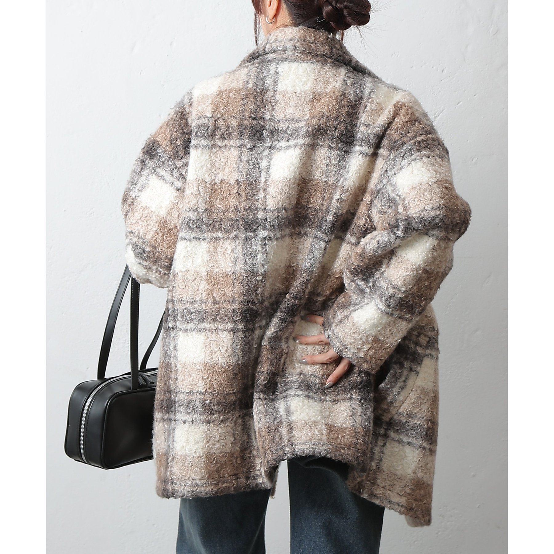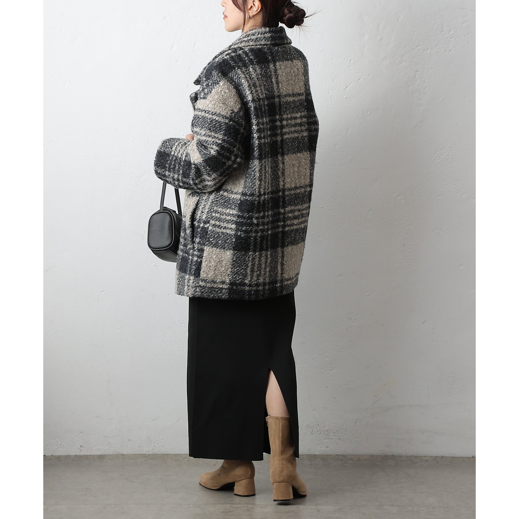 【クラシカルなチェック柄で品よく決まるジャケットコート】