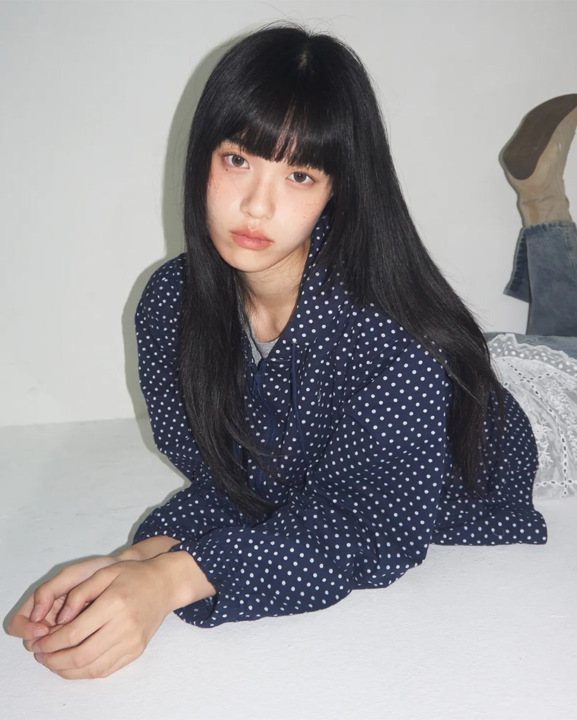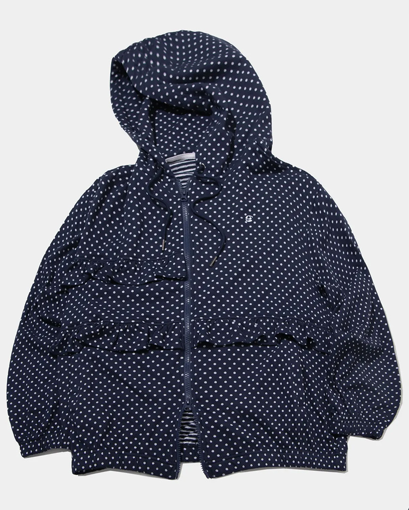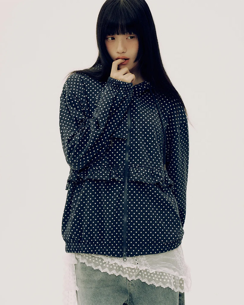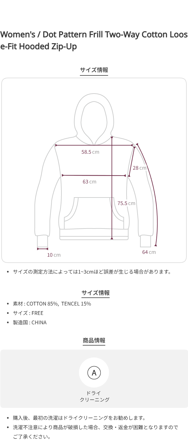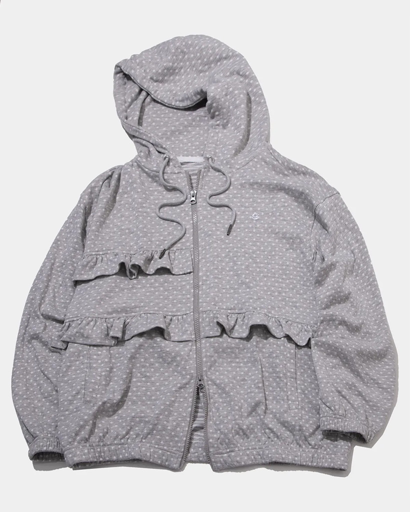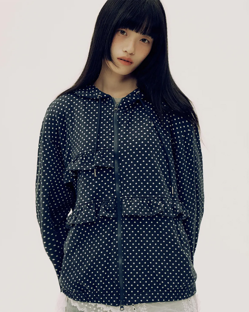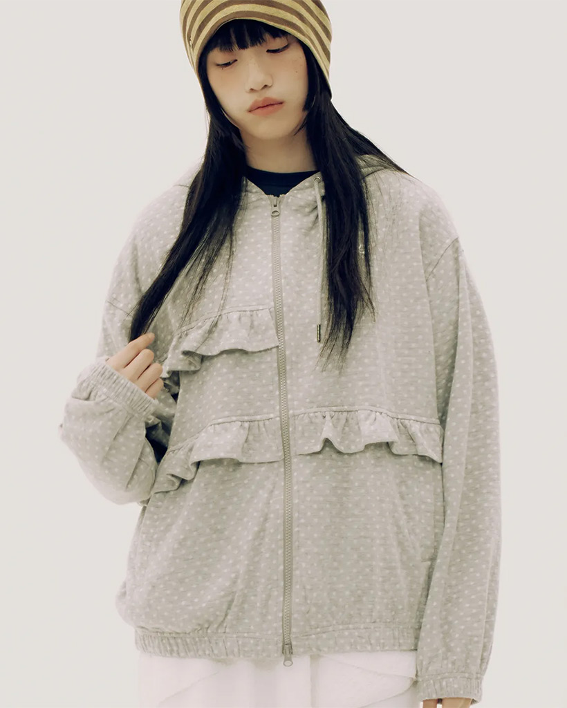 Dot Pattern Frill Two-Way Cotton Loose-Fit Hooded Zip-Up_2COLOR