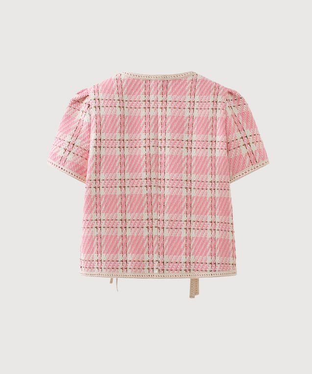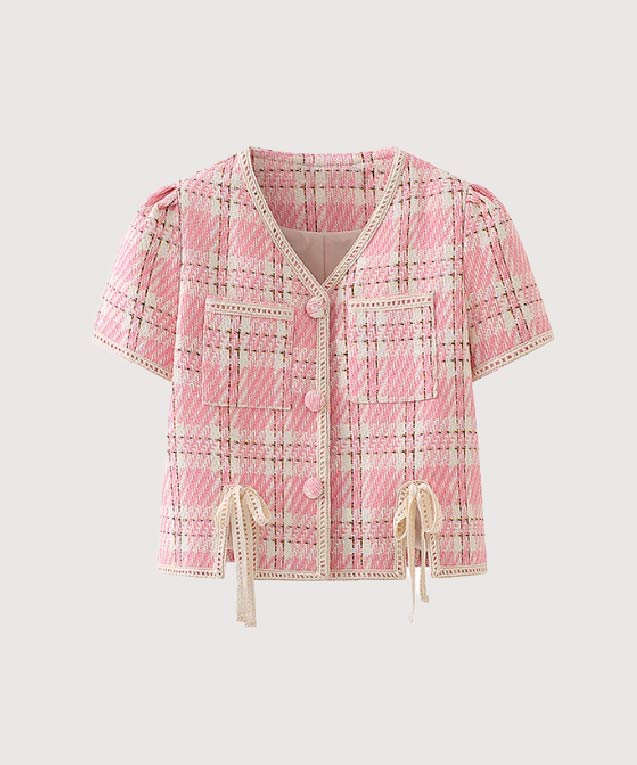 ピンクタータンチェックリボンシャツ