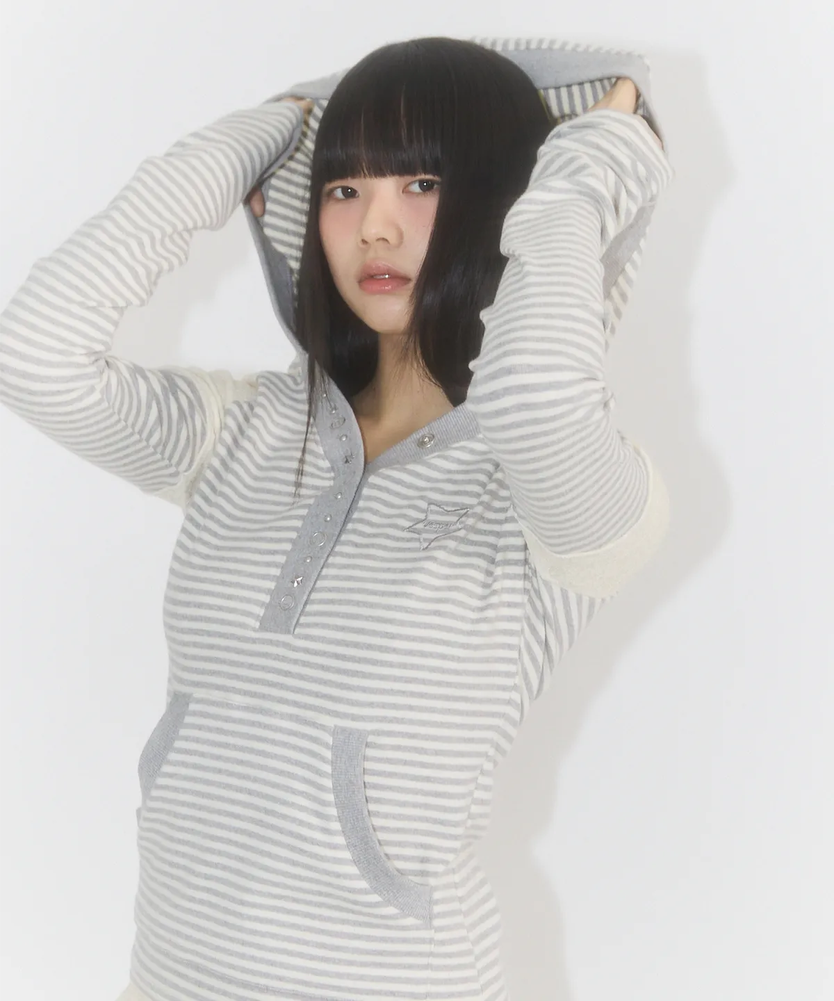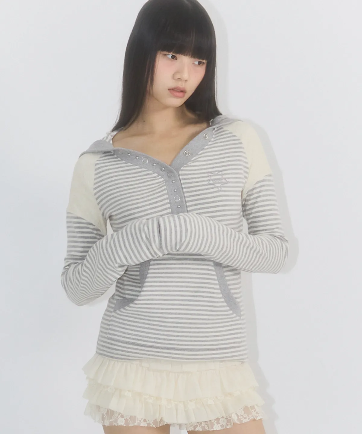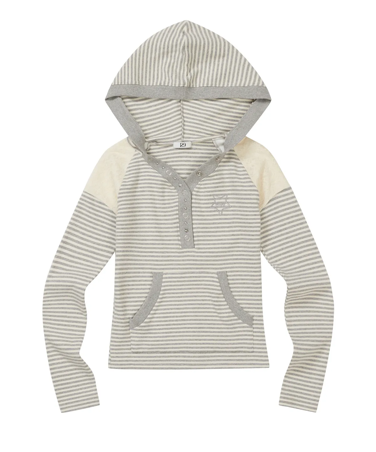 STRIPE LACE COLOR-BLOCKED HOODIE IVORY MELANGE