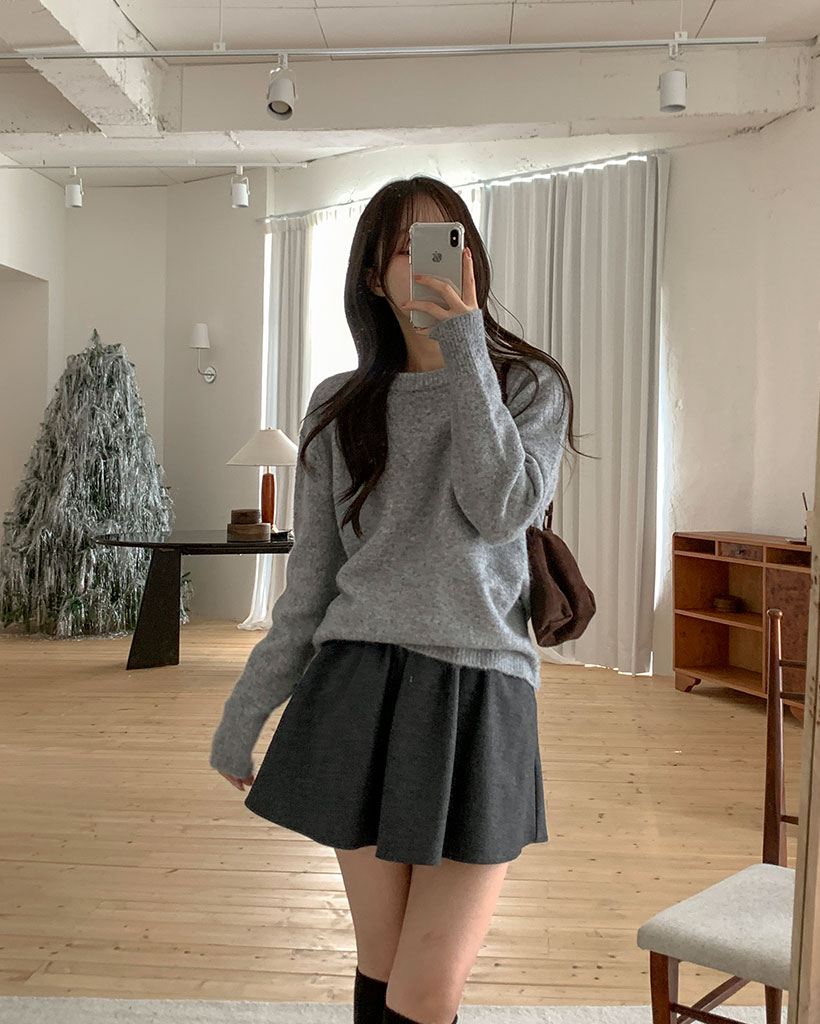 Macaroon essential wool round knit