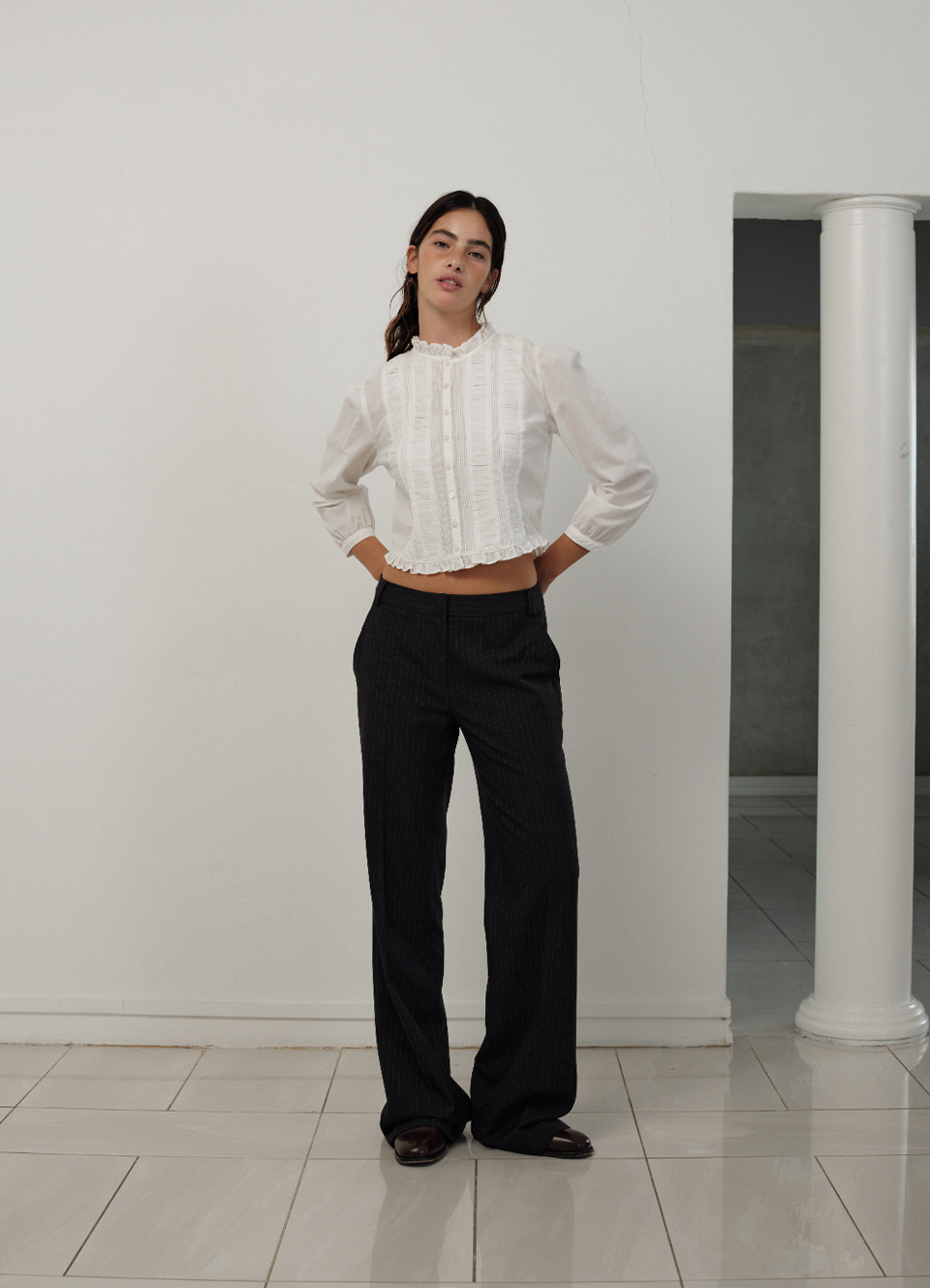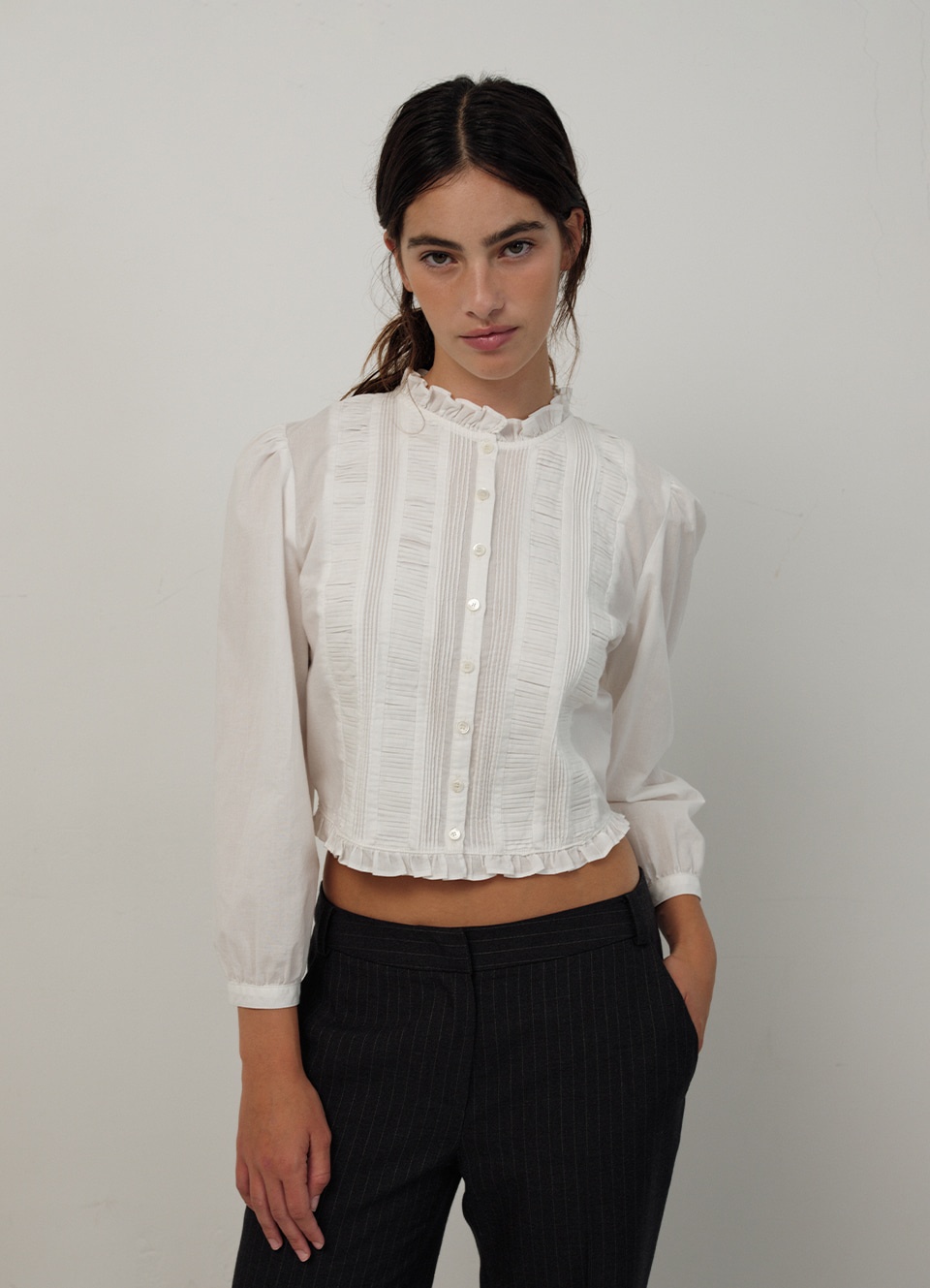 Plene Pintuck blouse_Ivory