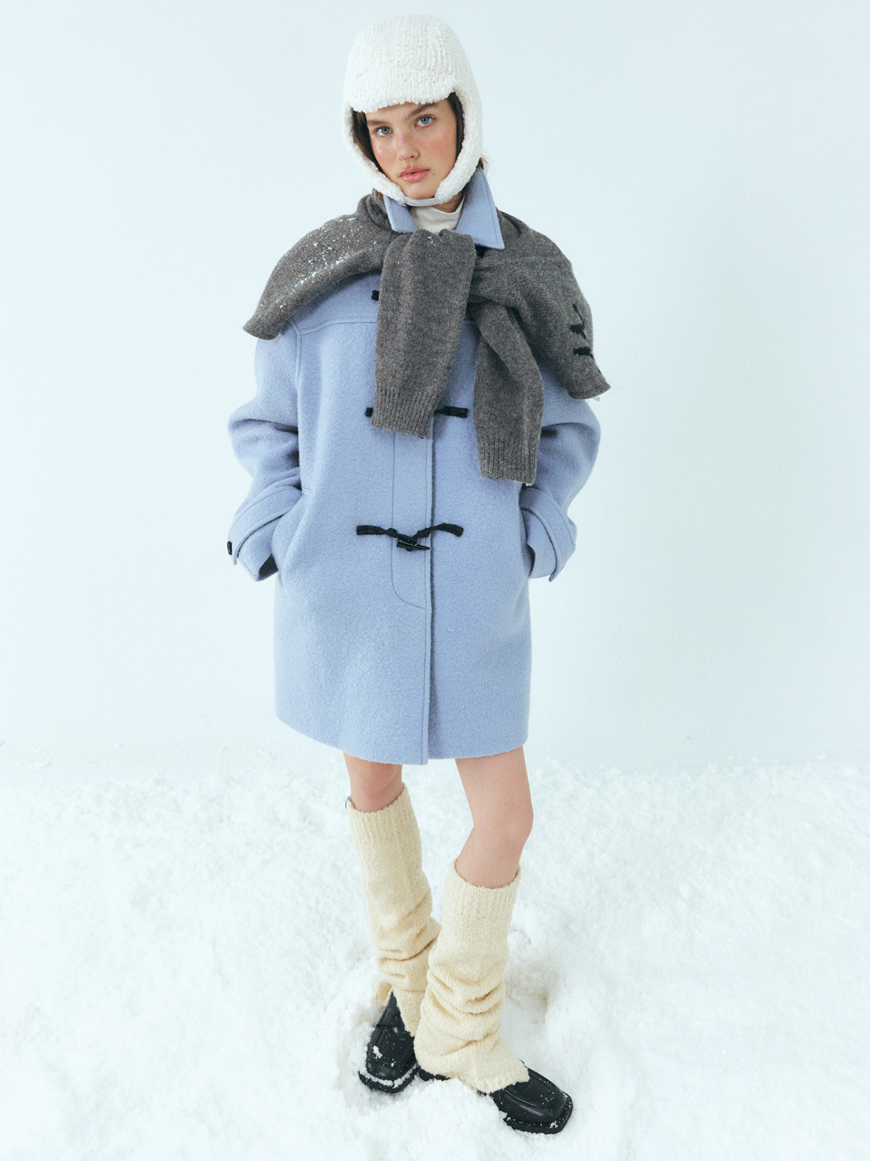 Wool Duffle Half Coat, Sky Blue