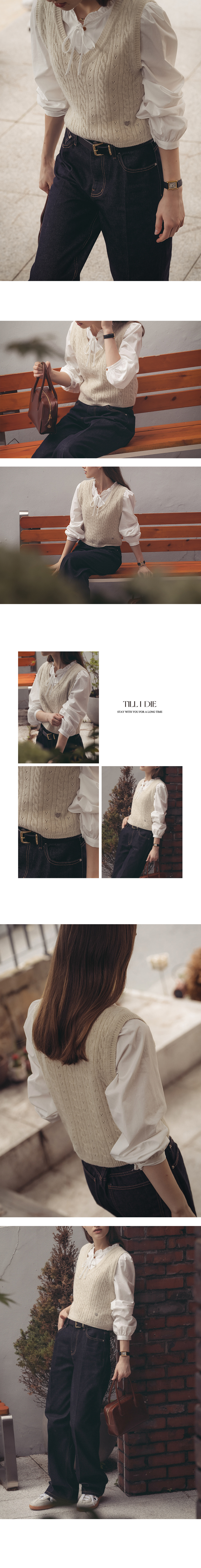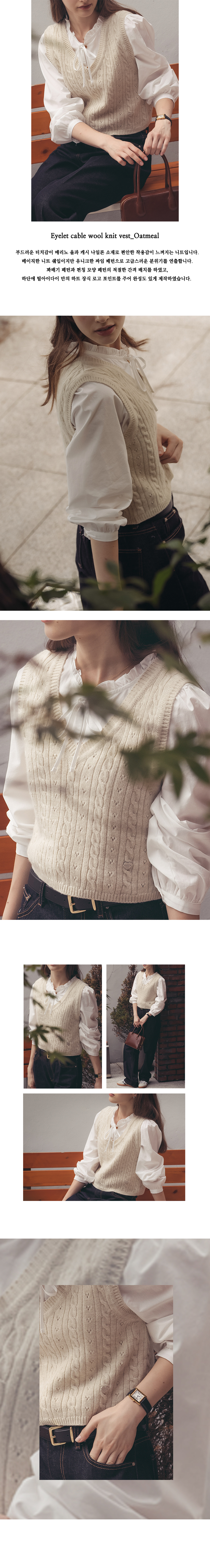 Eyelet cable wool knit vest_Oatmeal