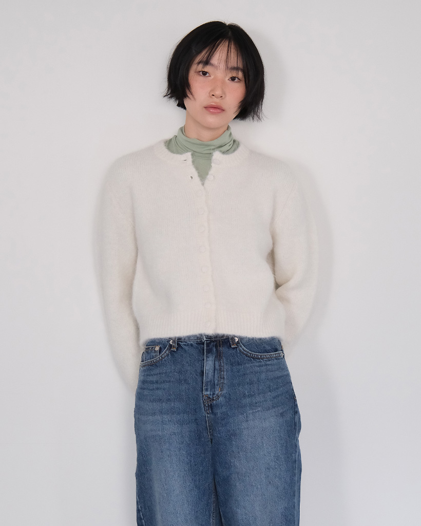 moui Alpaca slit ribbon knit cardigan (IVORY)