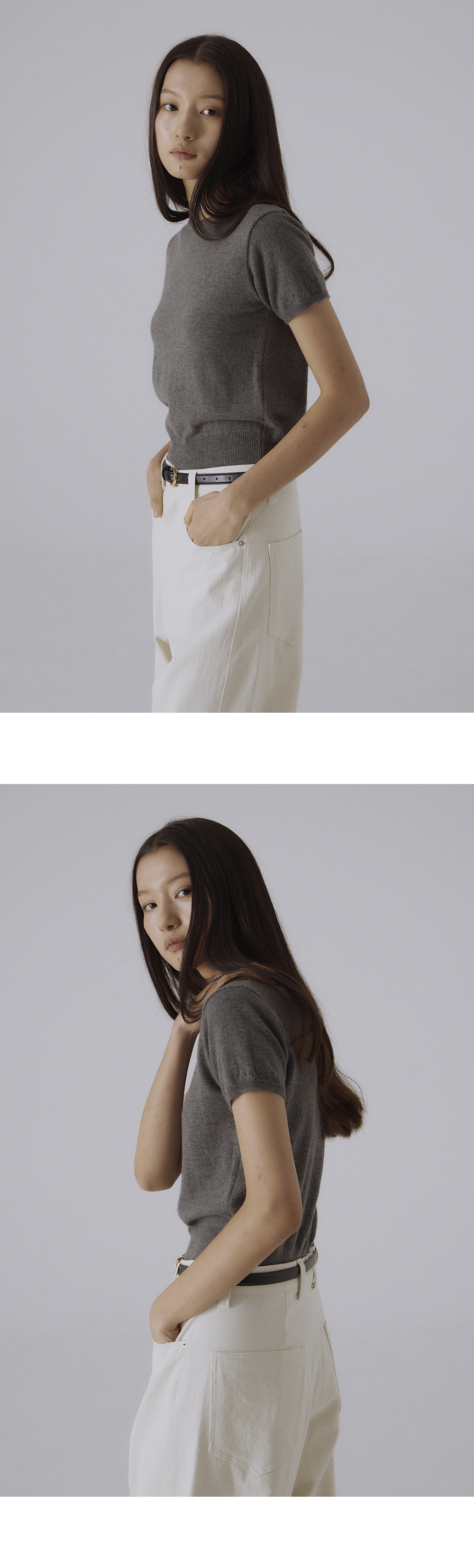 Ever Wool Knit Cardiganと同じ質感とトーンで統一されたセットアップスタイルは、無駄のないシルエットの中にさりげない奥行きを加え、デイリーユースからクラシックなコーディネートまで幅広く活躍します。