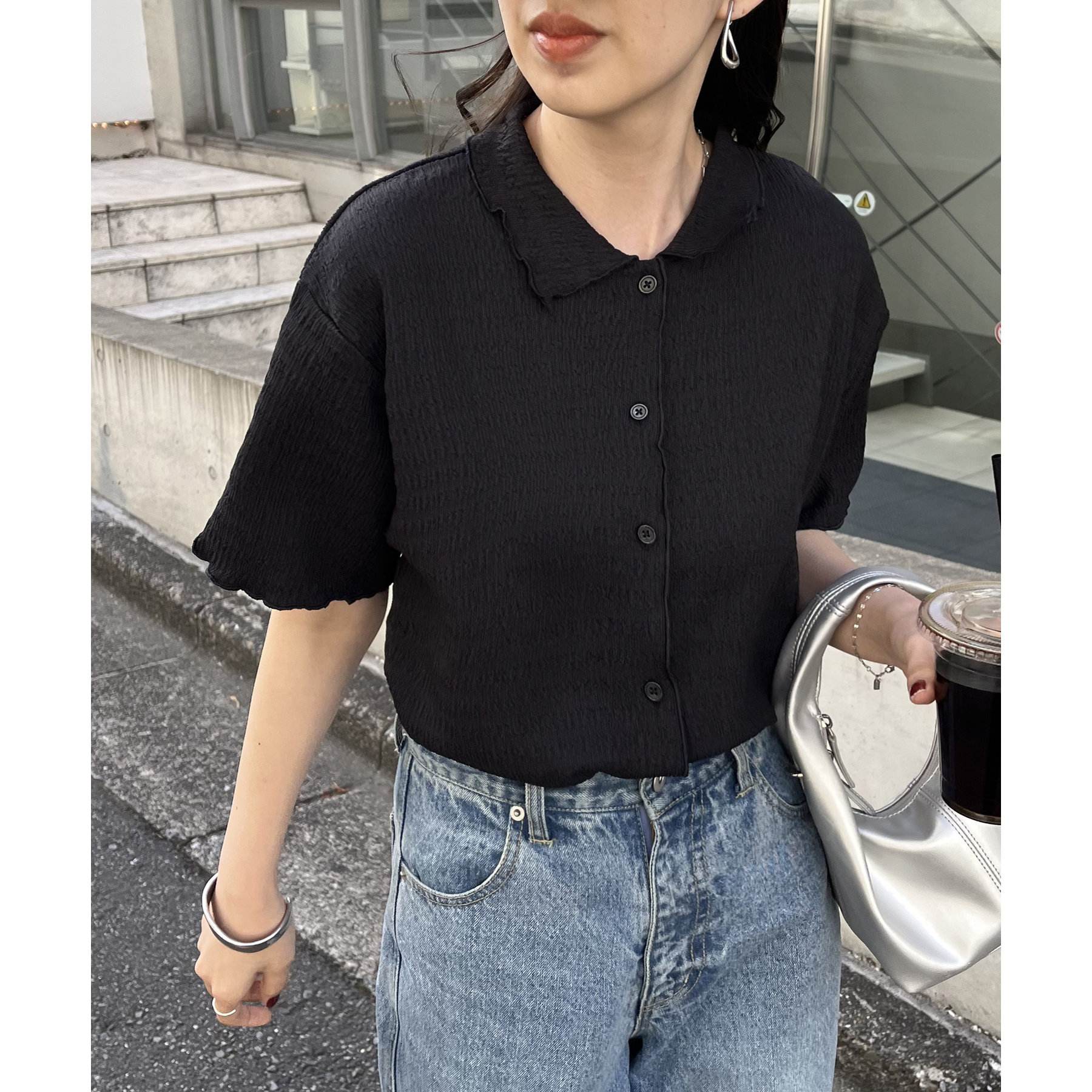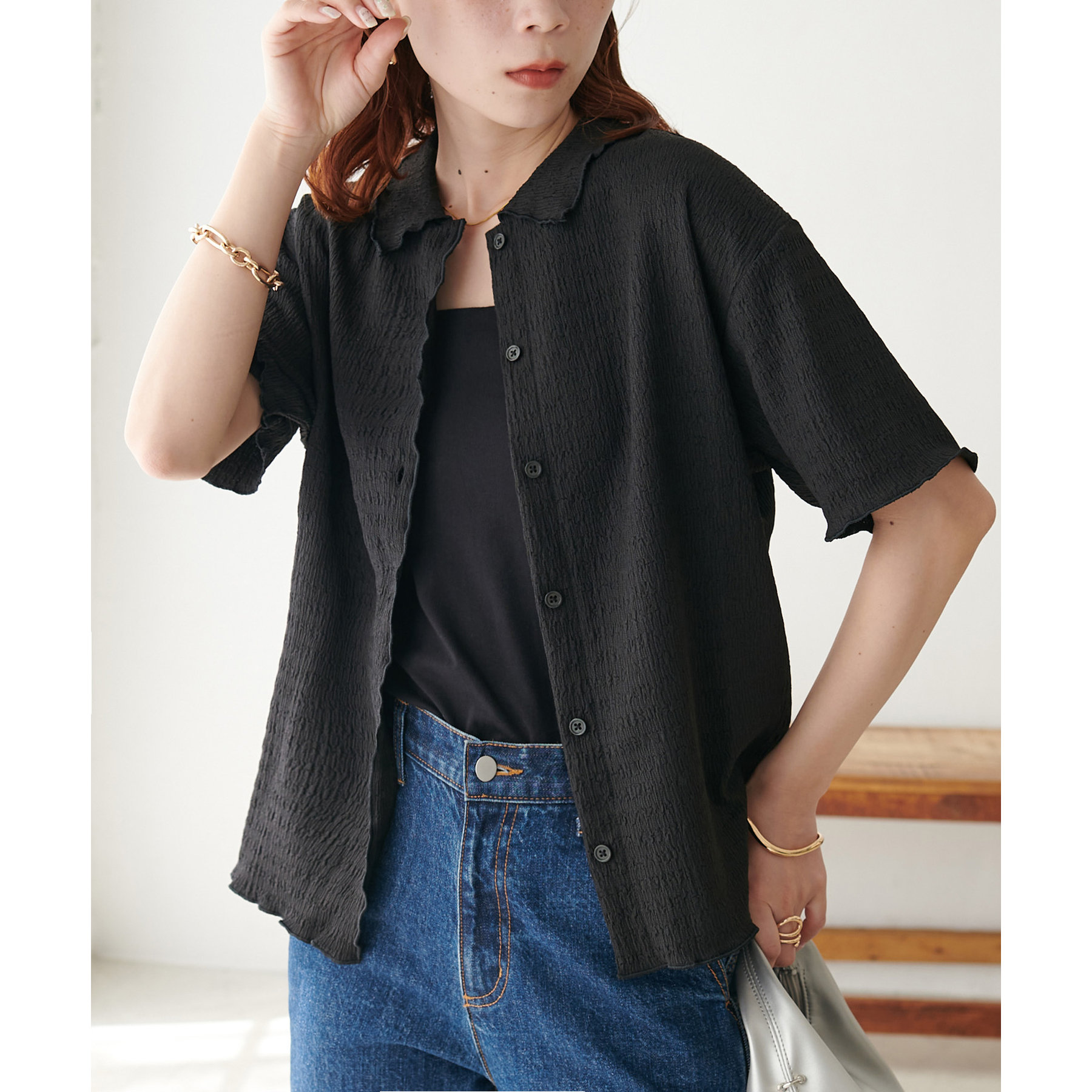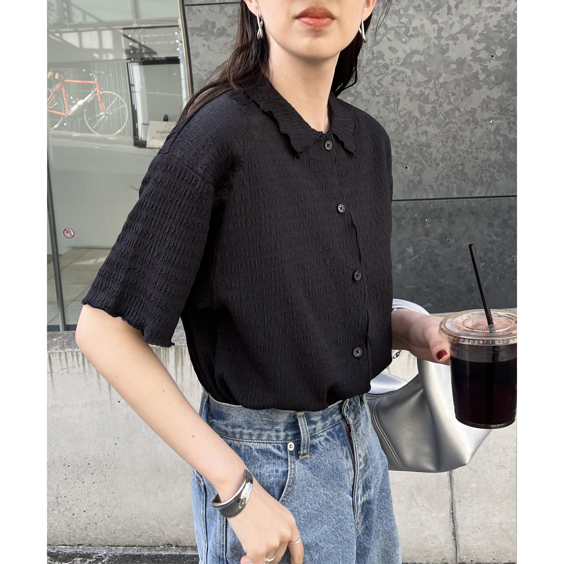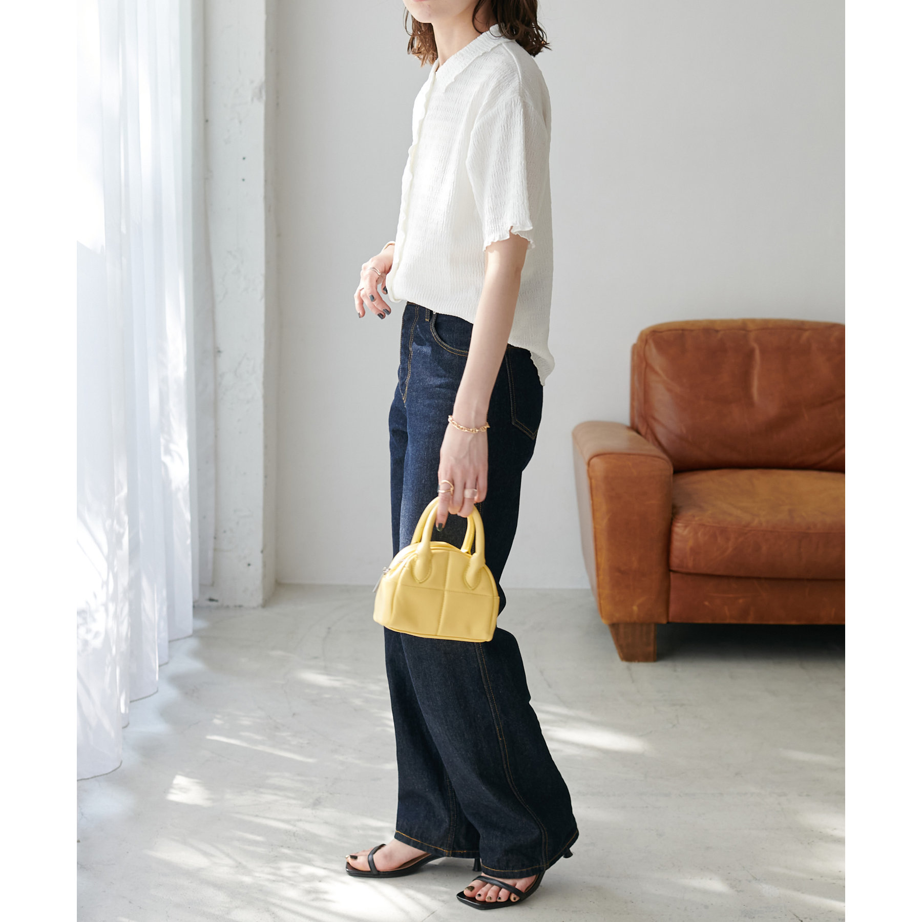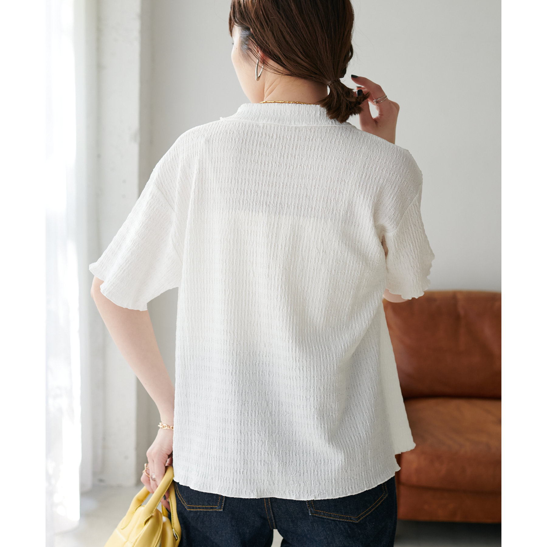 160cmスタッフ(Fサイズ着用):ジャーガード素材は見た目より軽く、真夏でもさらっと着られそうです♡コンパクトめの丈感なので、ハイウエストボトムとの相性も抜群でした♪