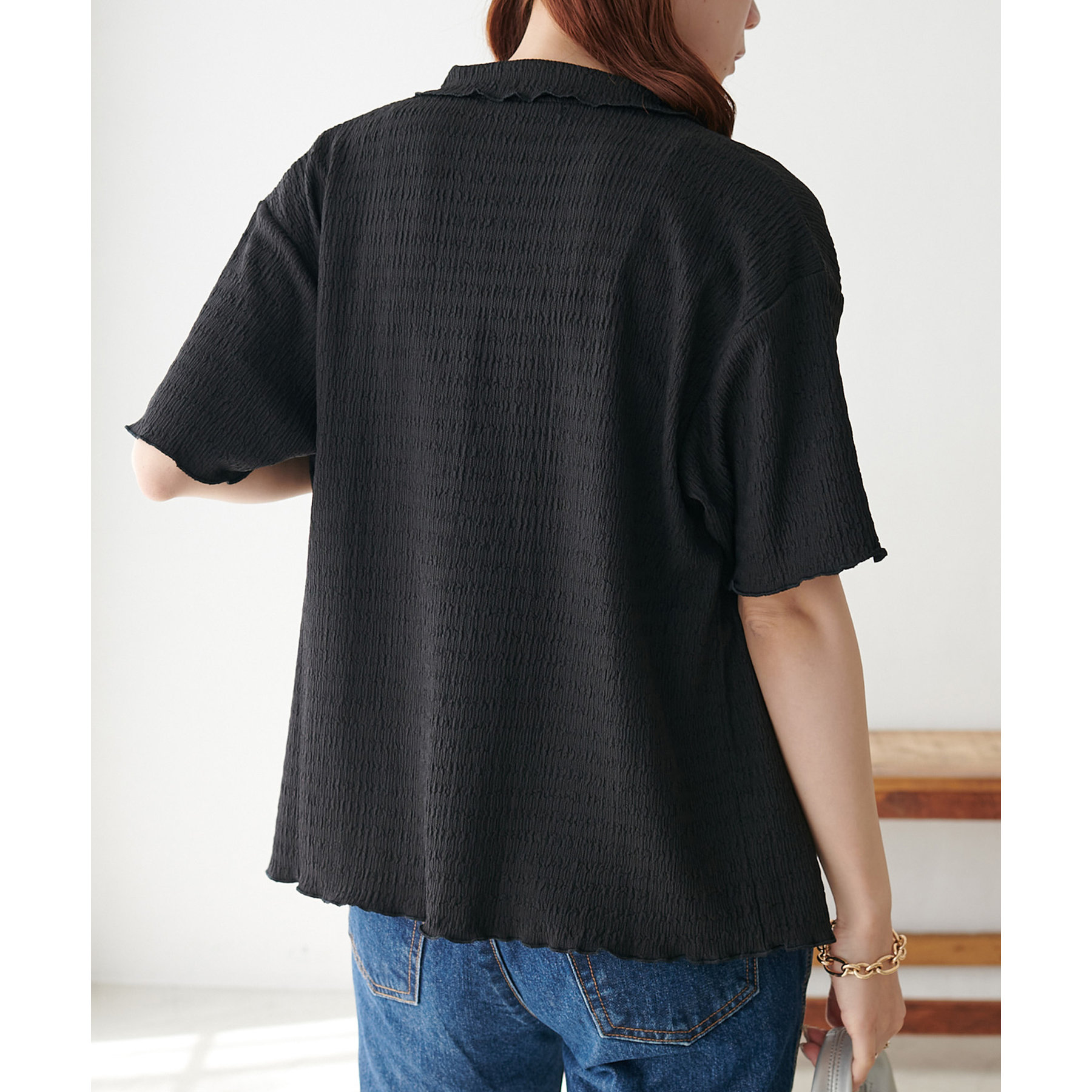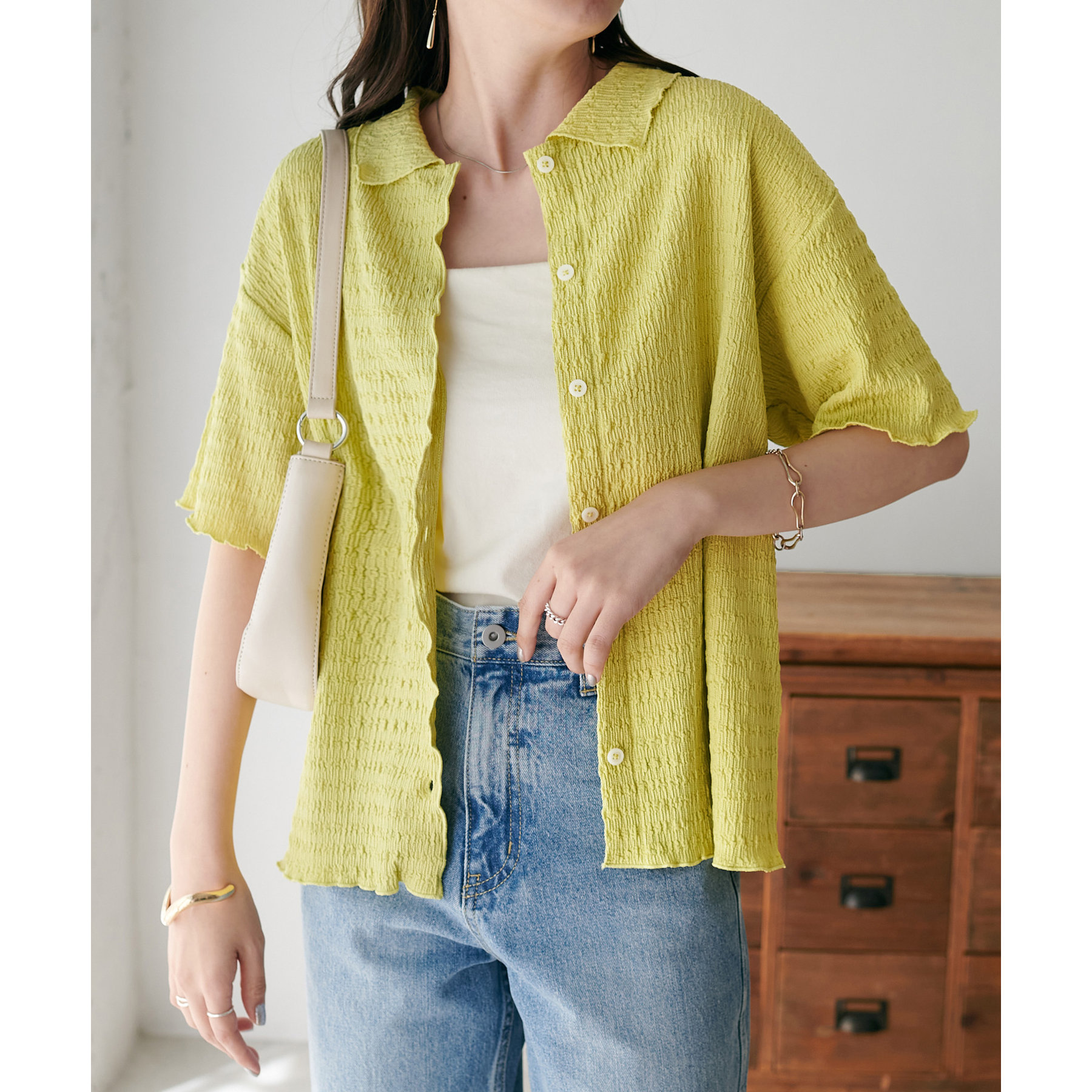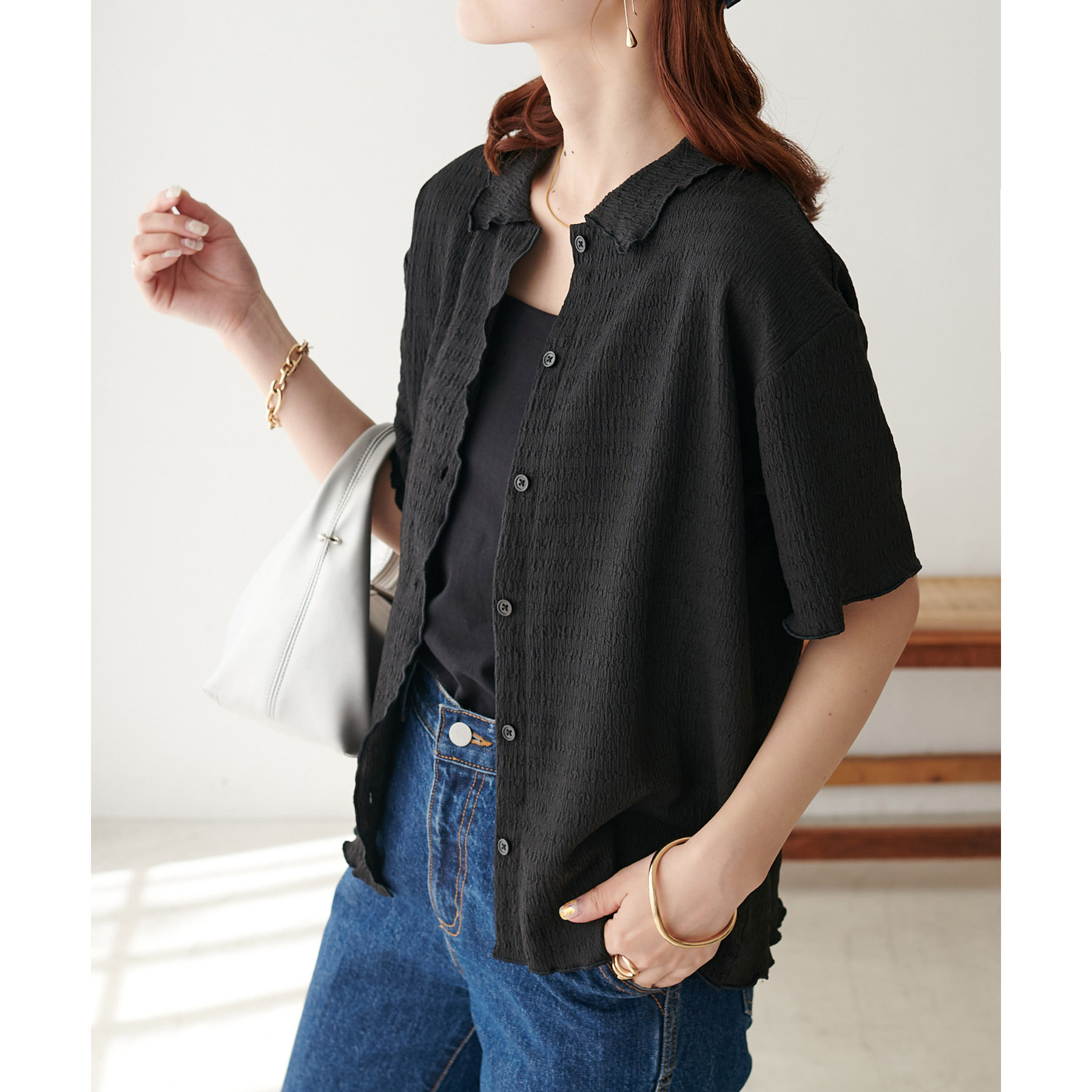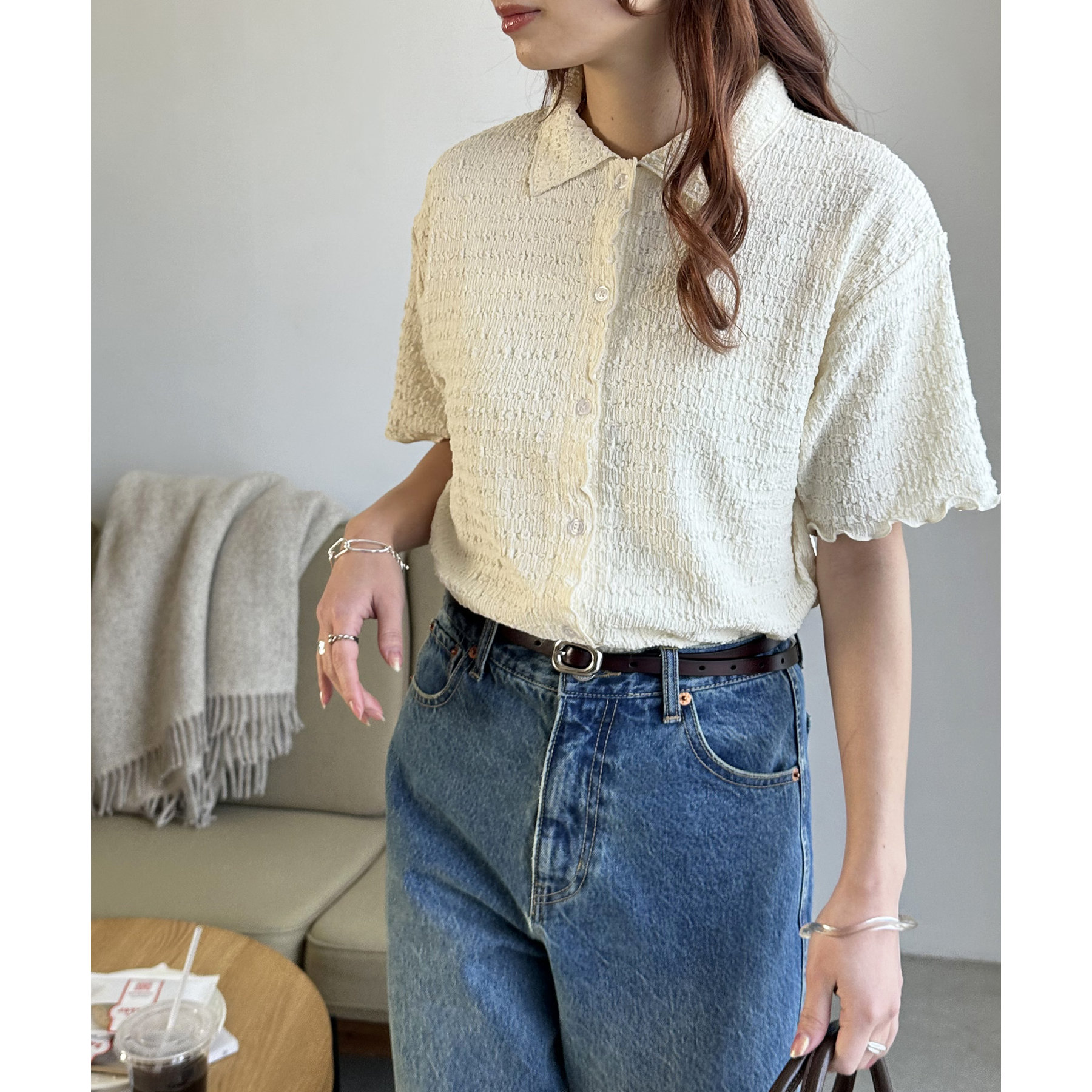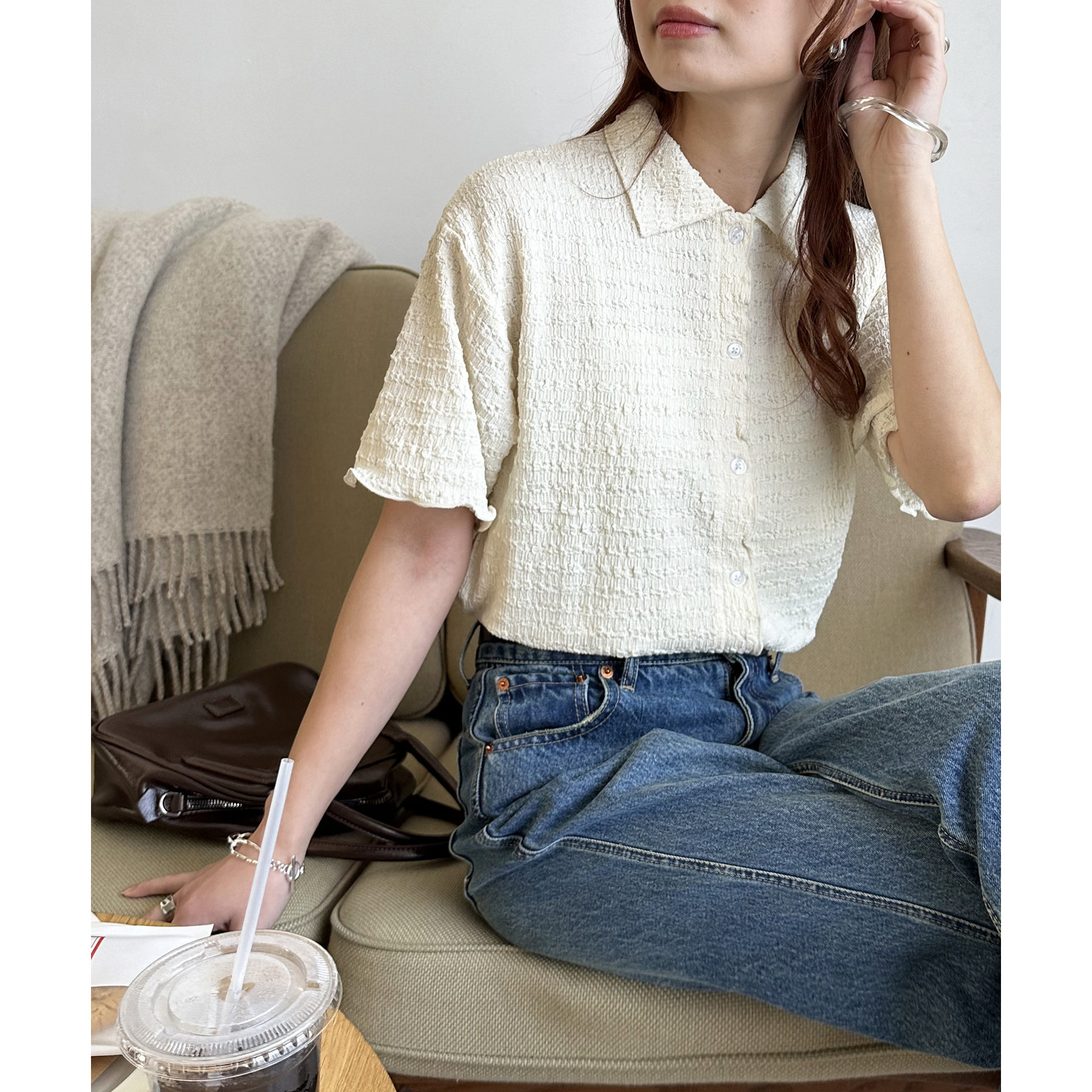 160cmスタッフ(Fサイズ着用):ジャーガード素材は見た目より軽く、真夏でもさらっと着られそうです♡コンパクトめの丈感なので、ハイウエストボトムとの相性も抜群でした♪