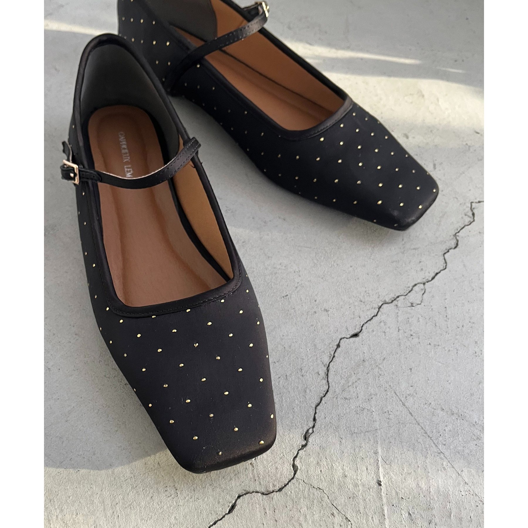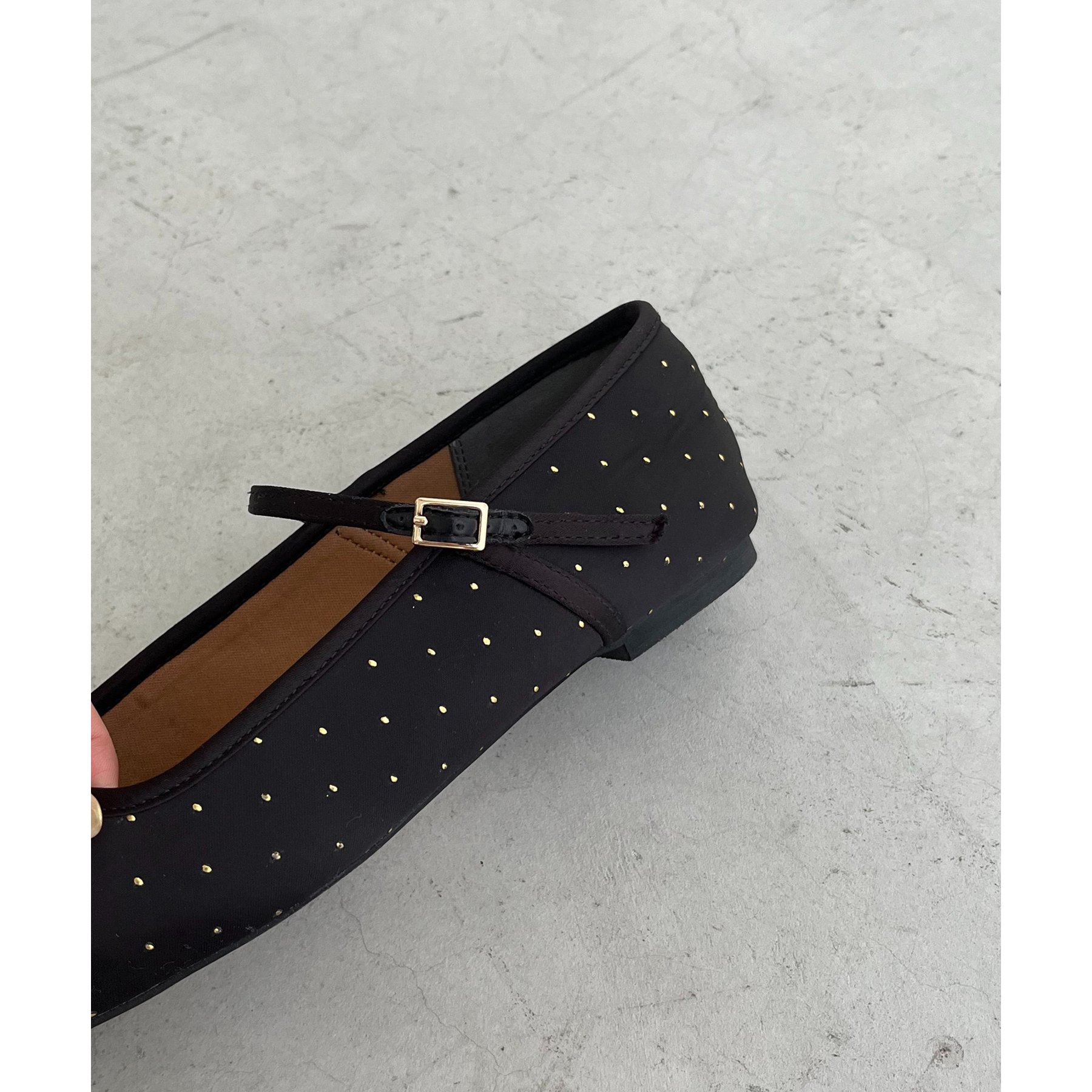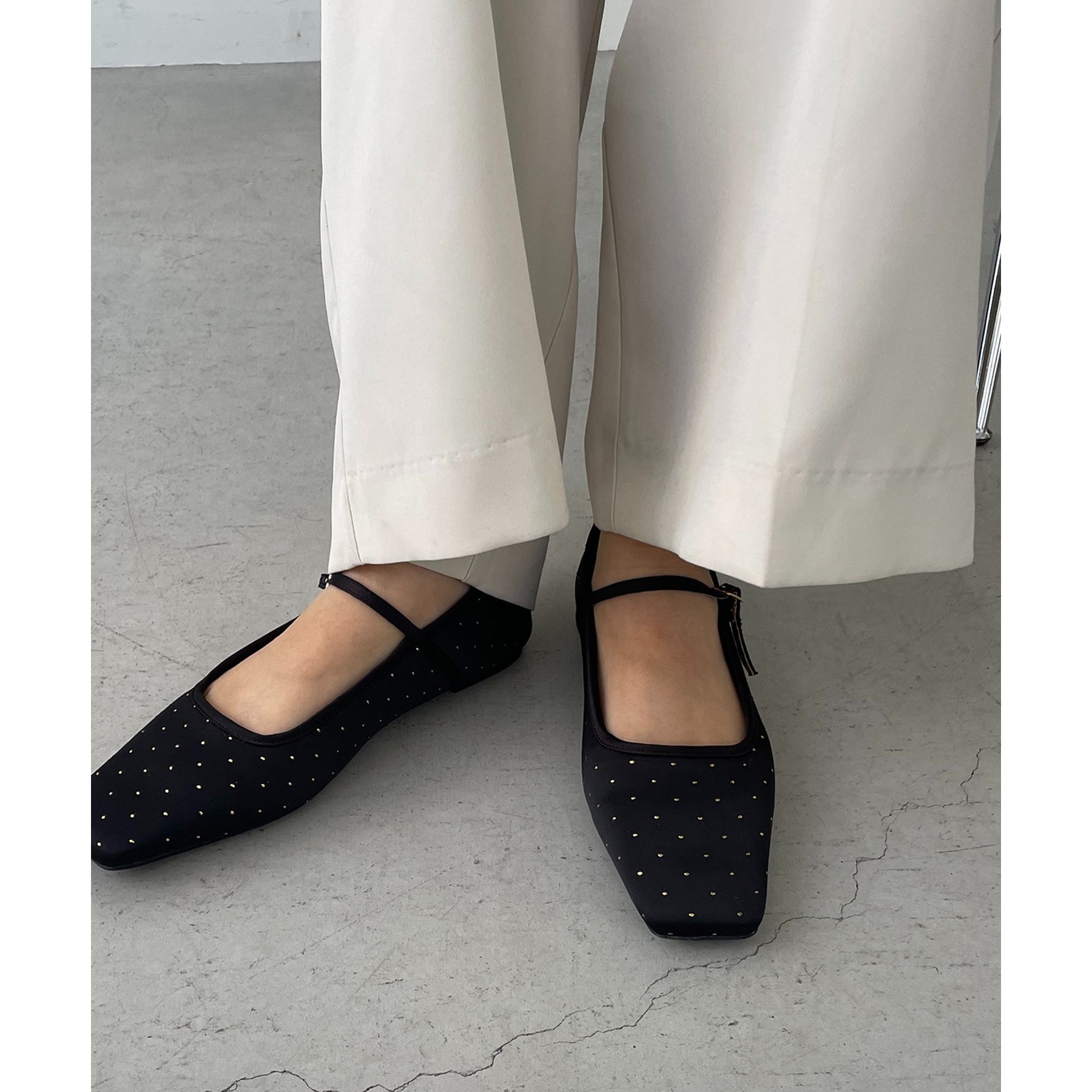 ・ゴールドのドット柄が上品さをプラスしてくれるフラットパンプス