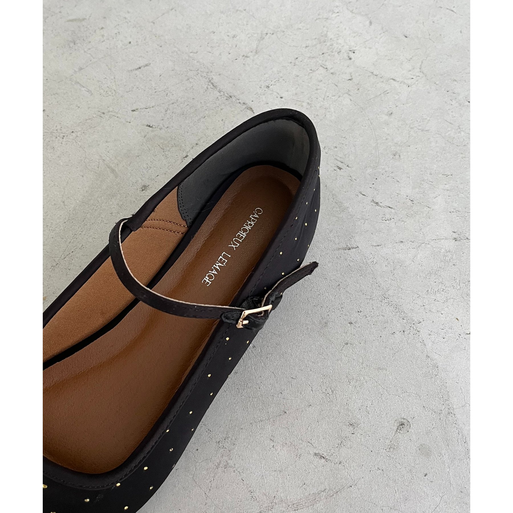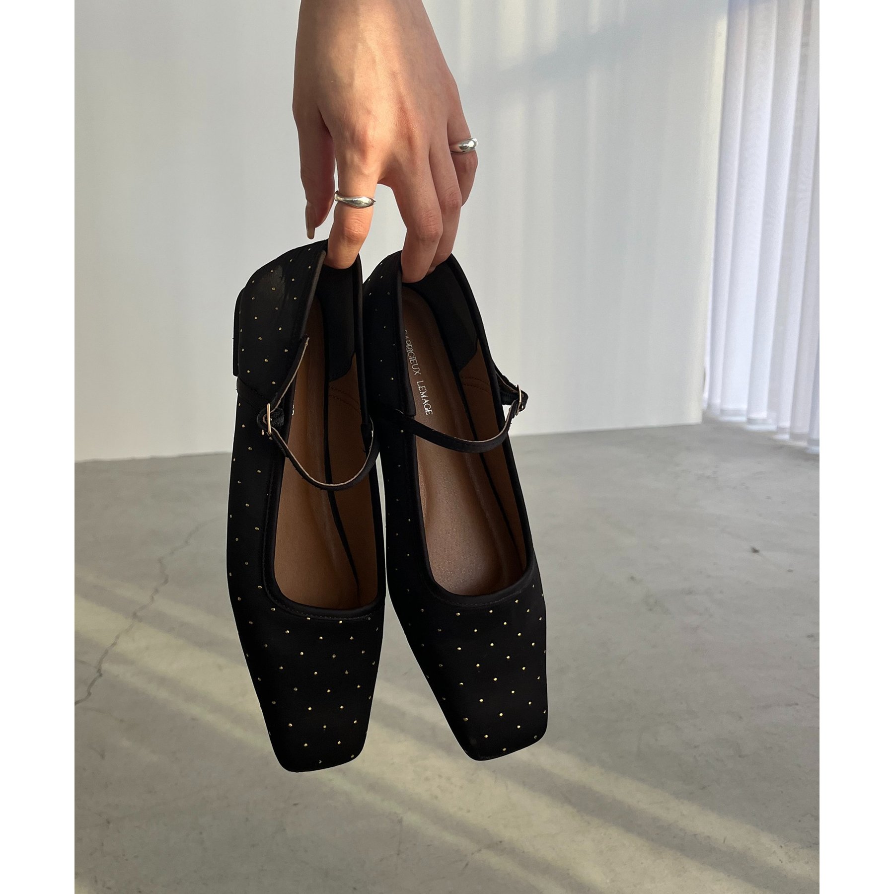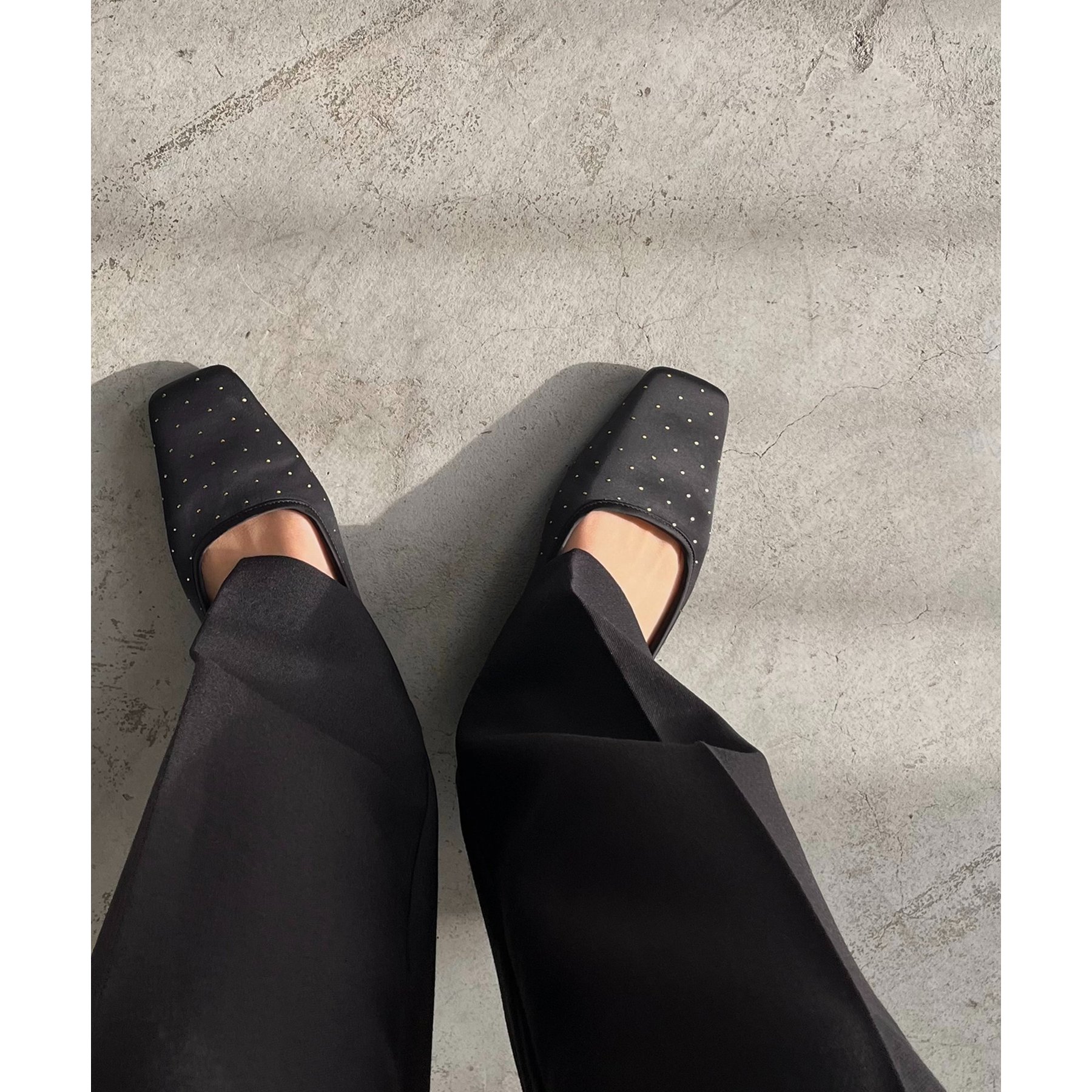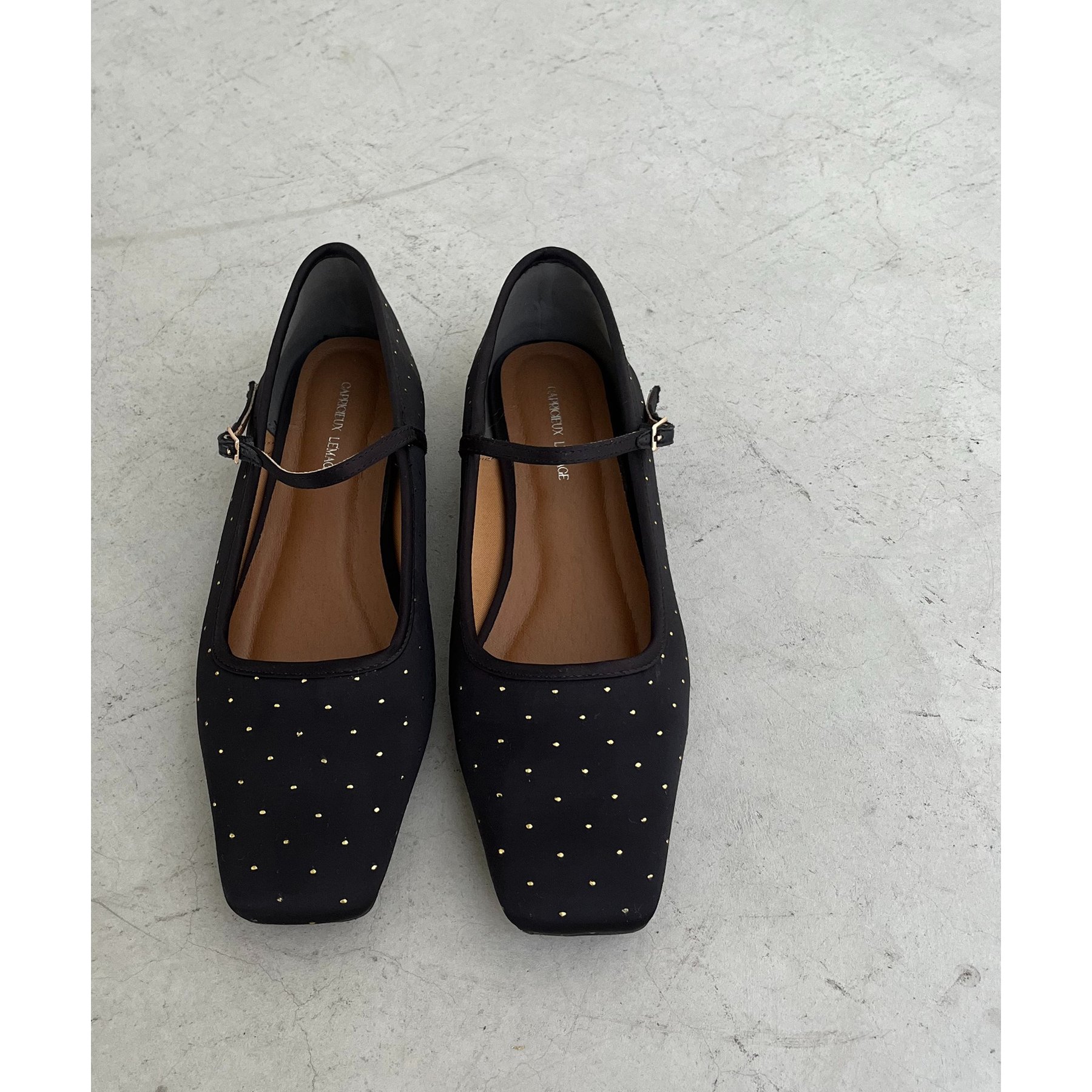 ・ゴールドのドット柄が上品さをプラスしてくれるフラットパンプス