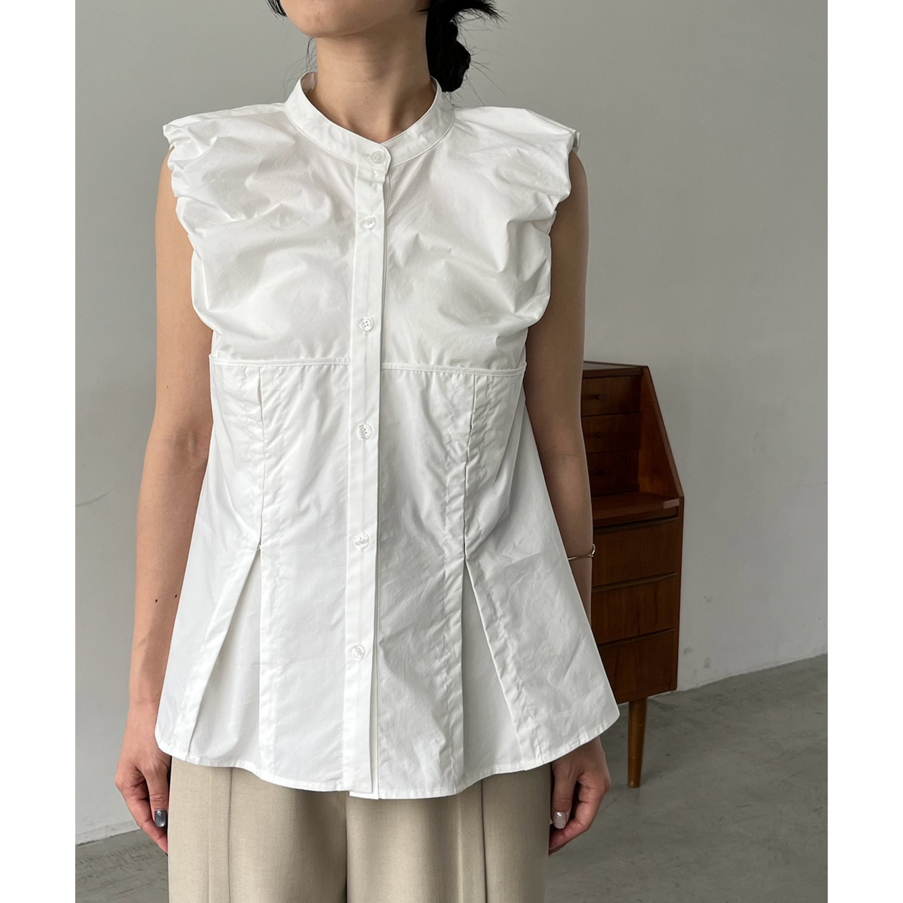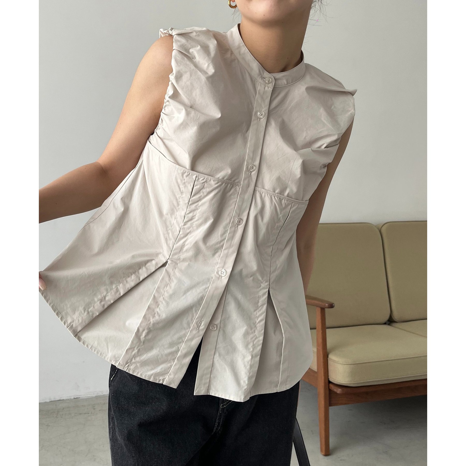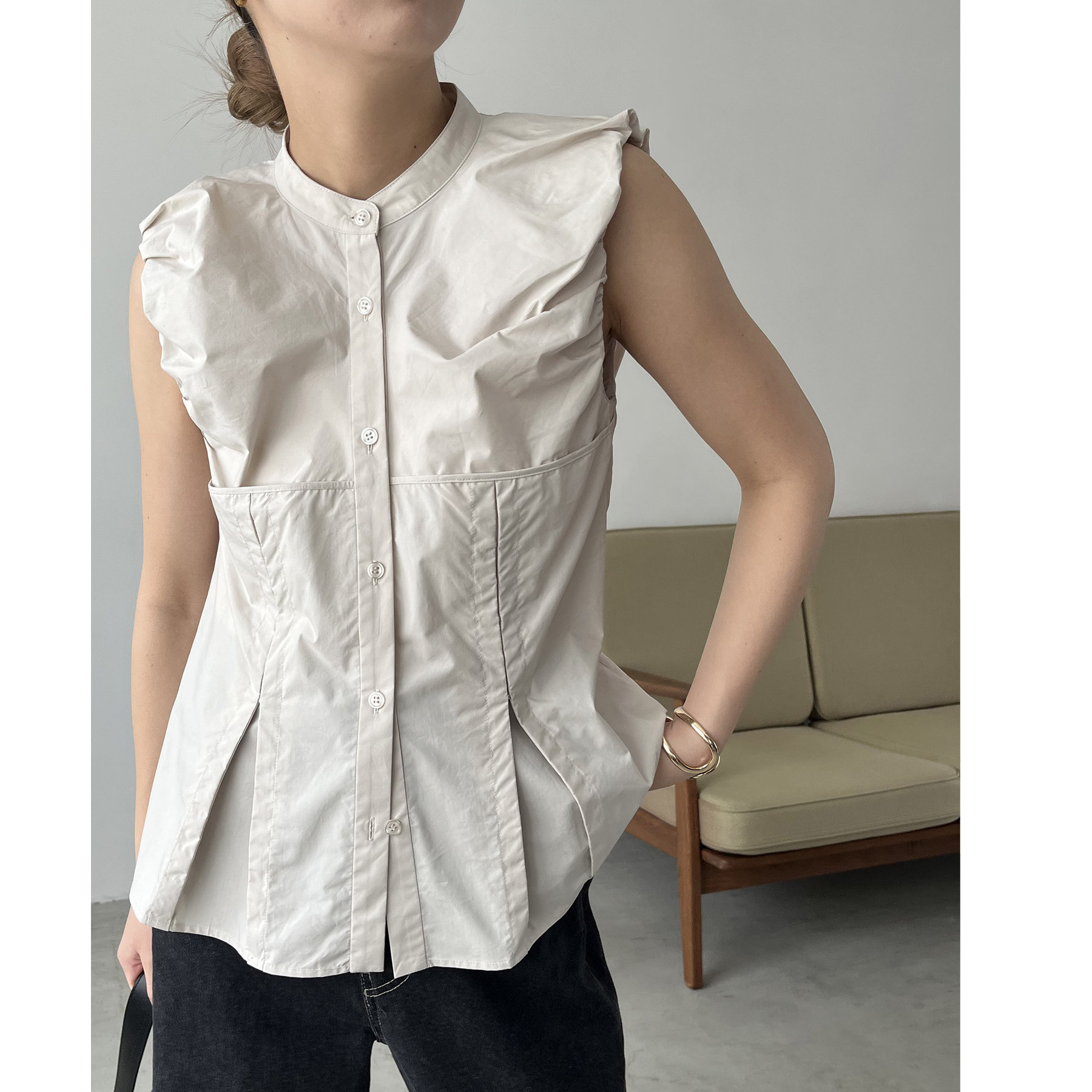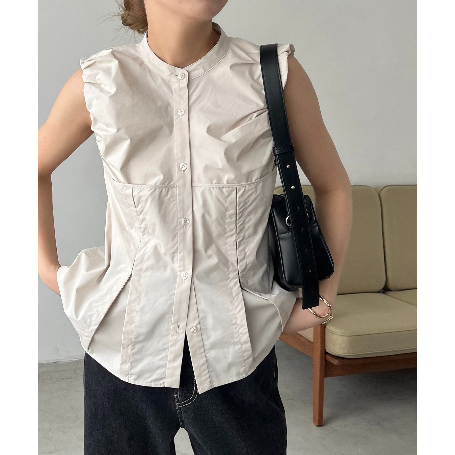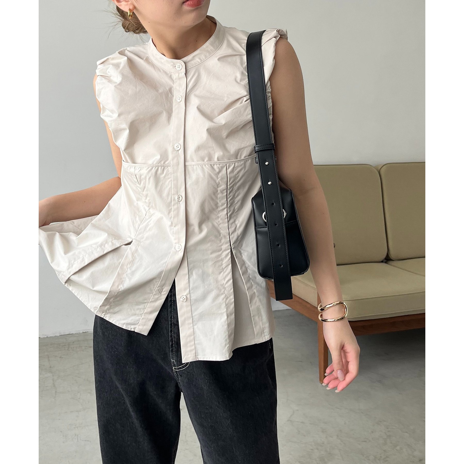 胸下のコルセットのような切替が女性らしいノースリシャツ