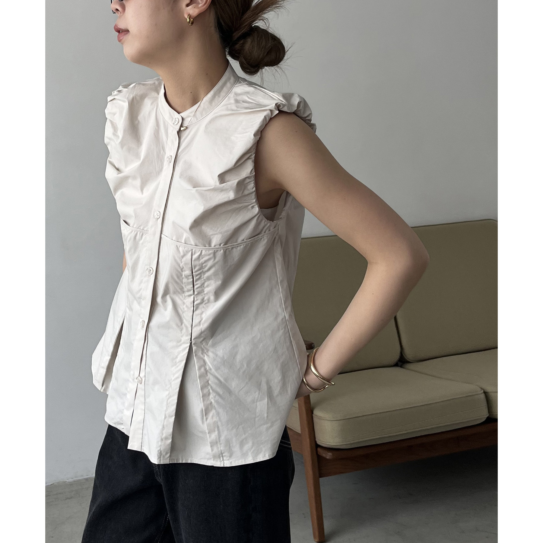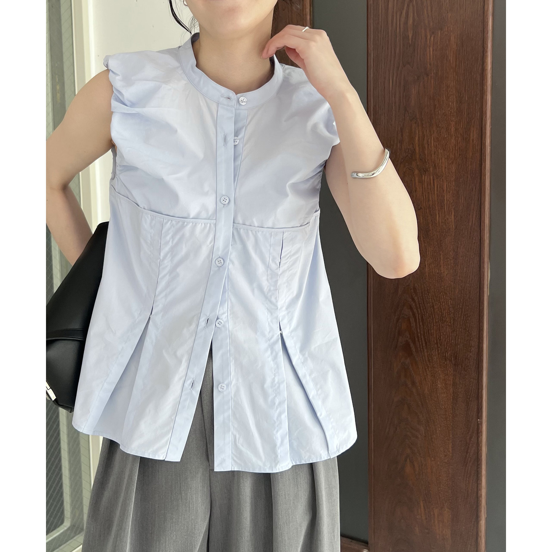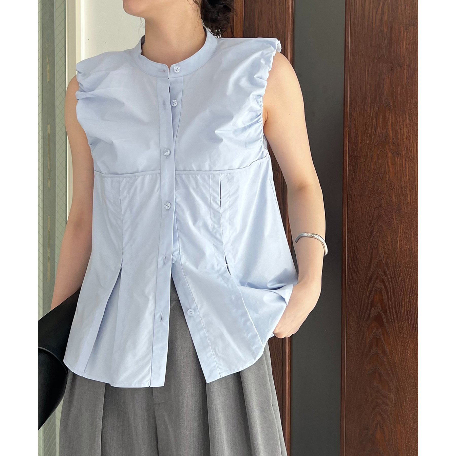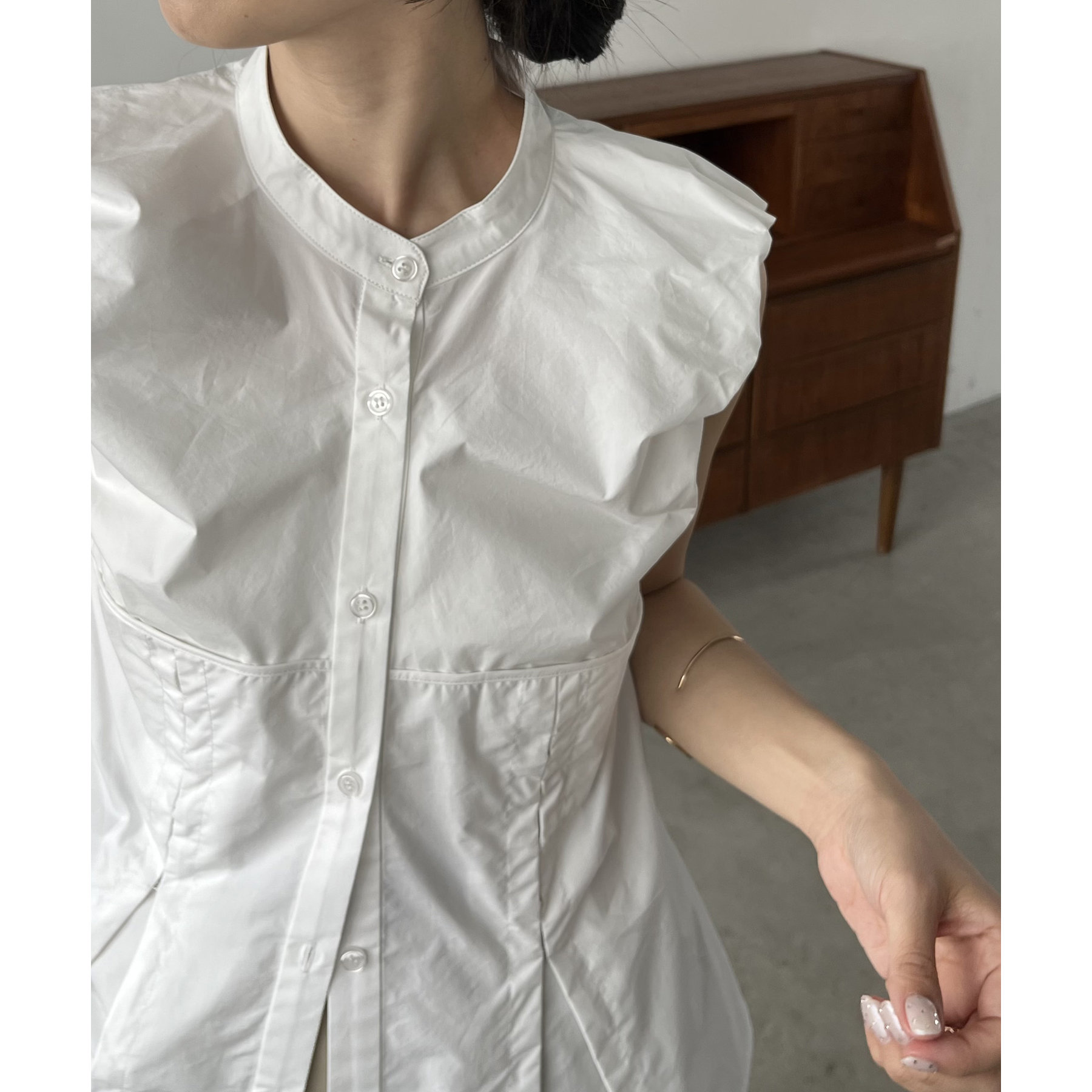 胸下のコルセットのような切替が女性らしいノースリシャツ