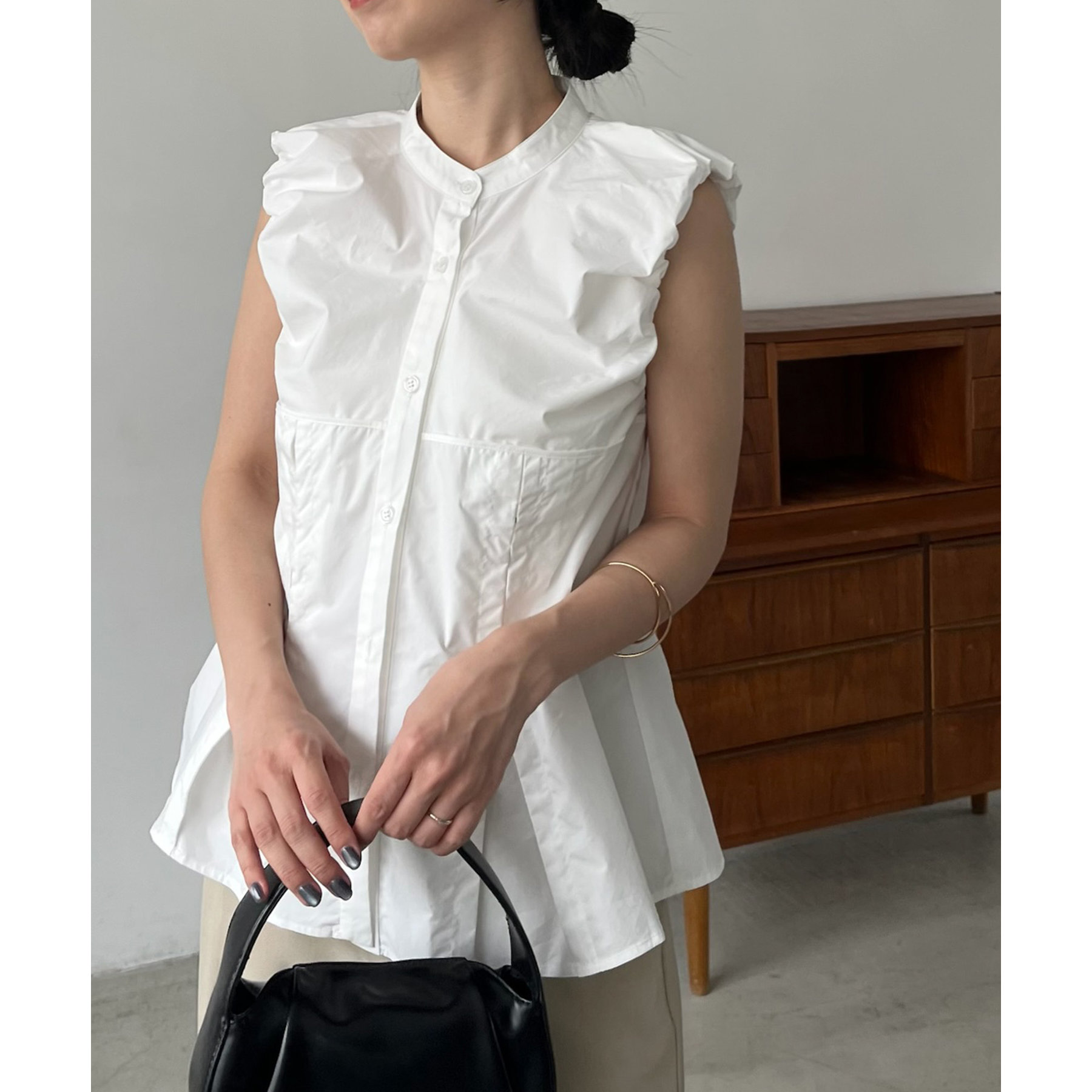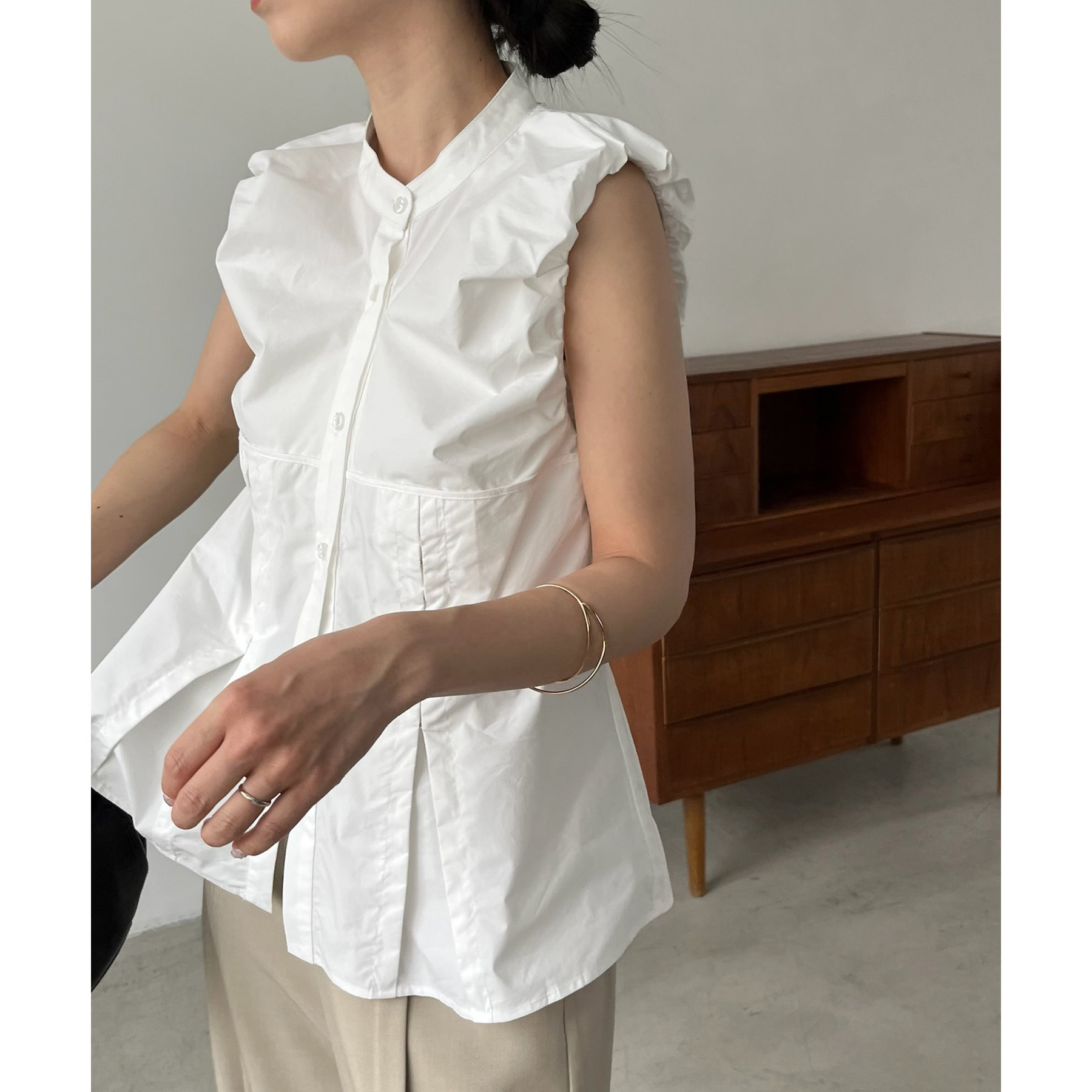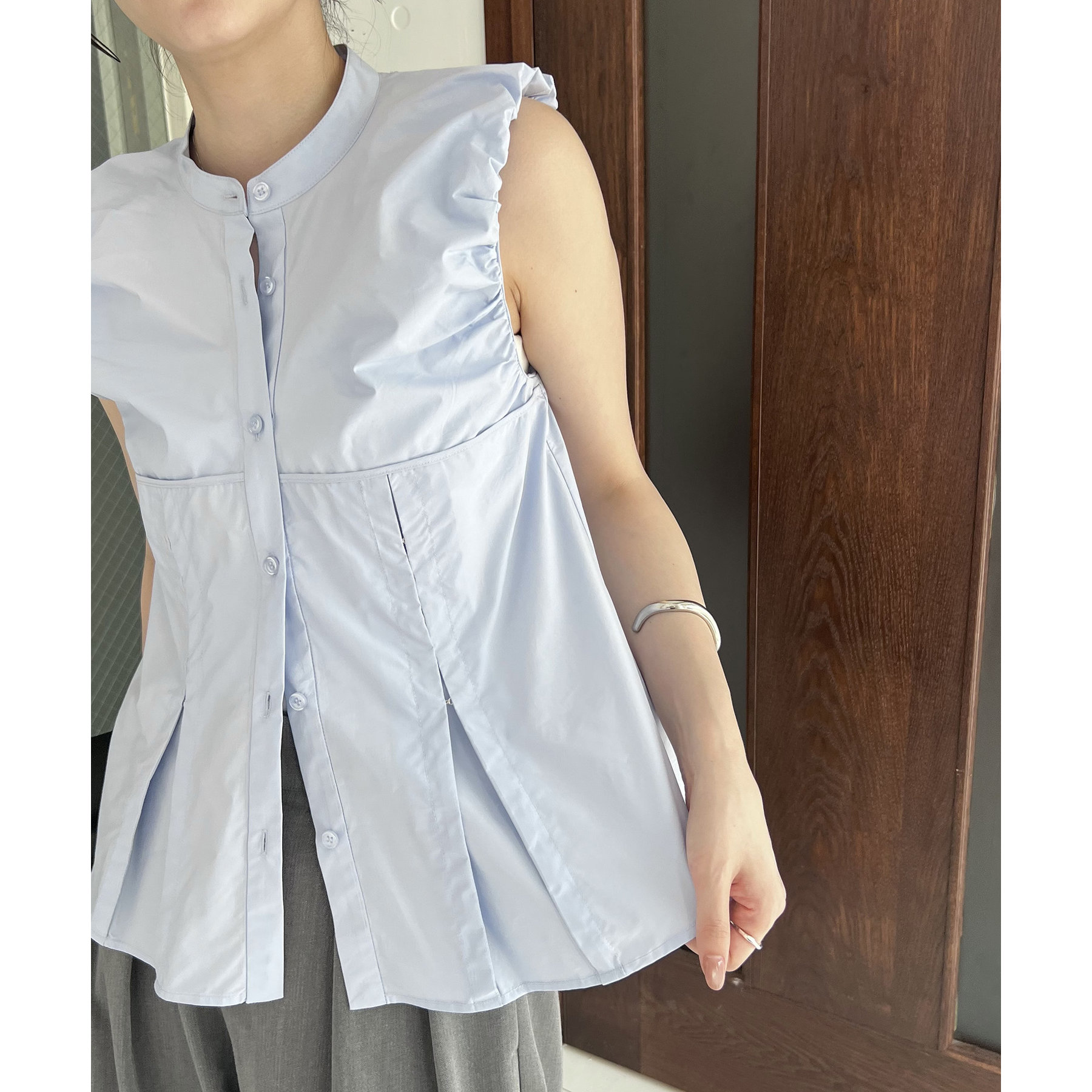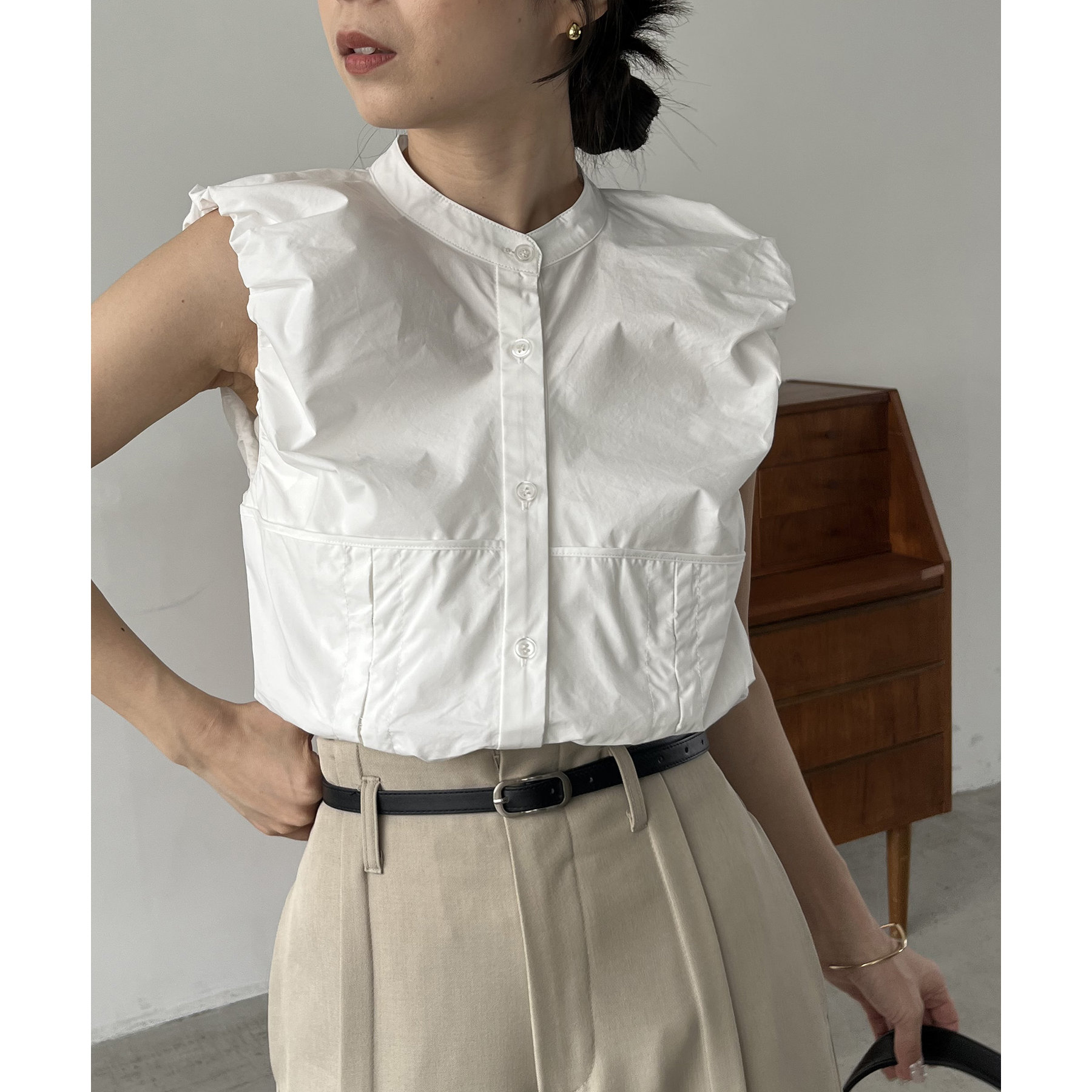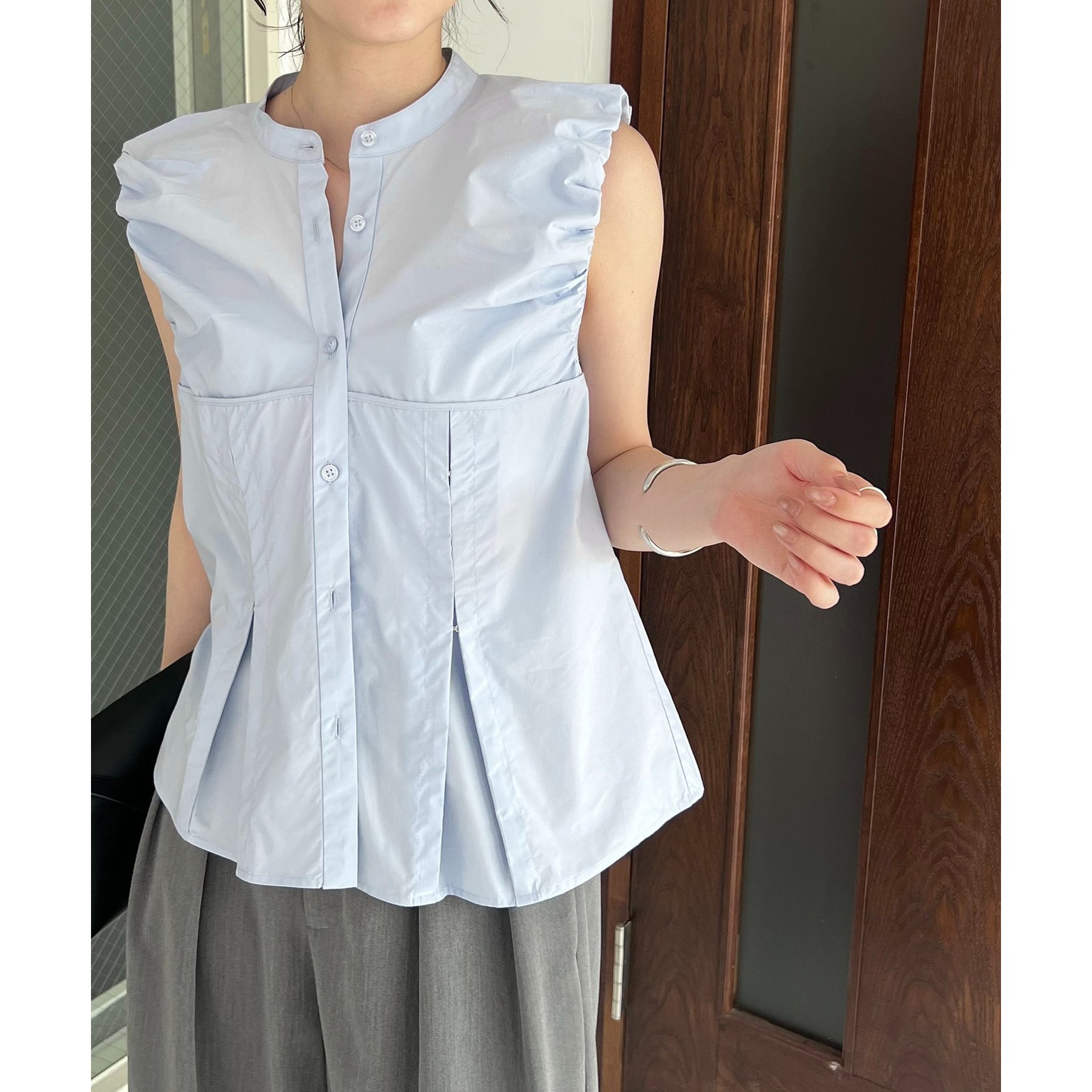 胸下のコルセットのような切替が女性らしいノースリシャツ