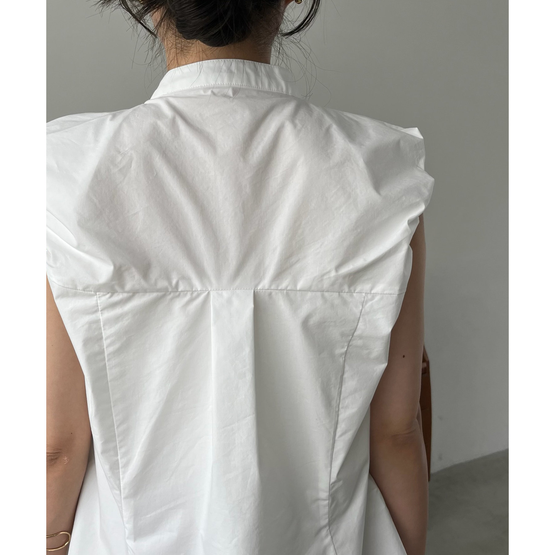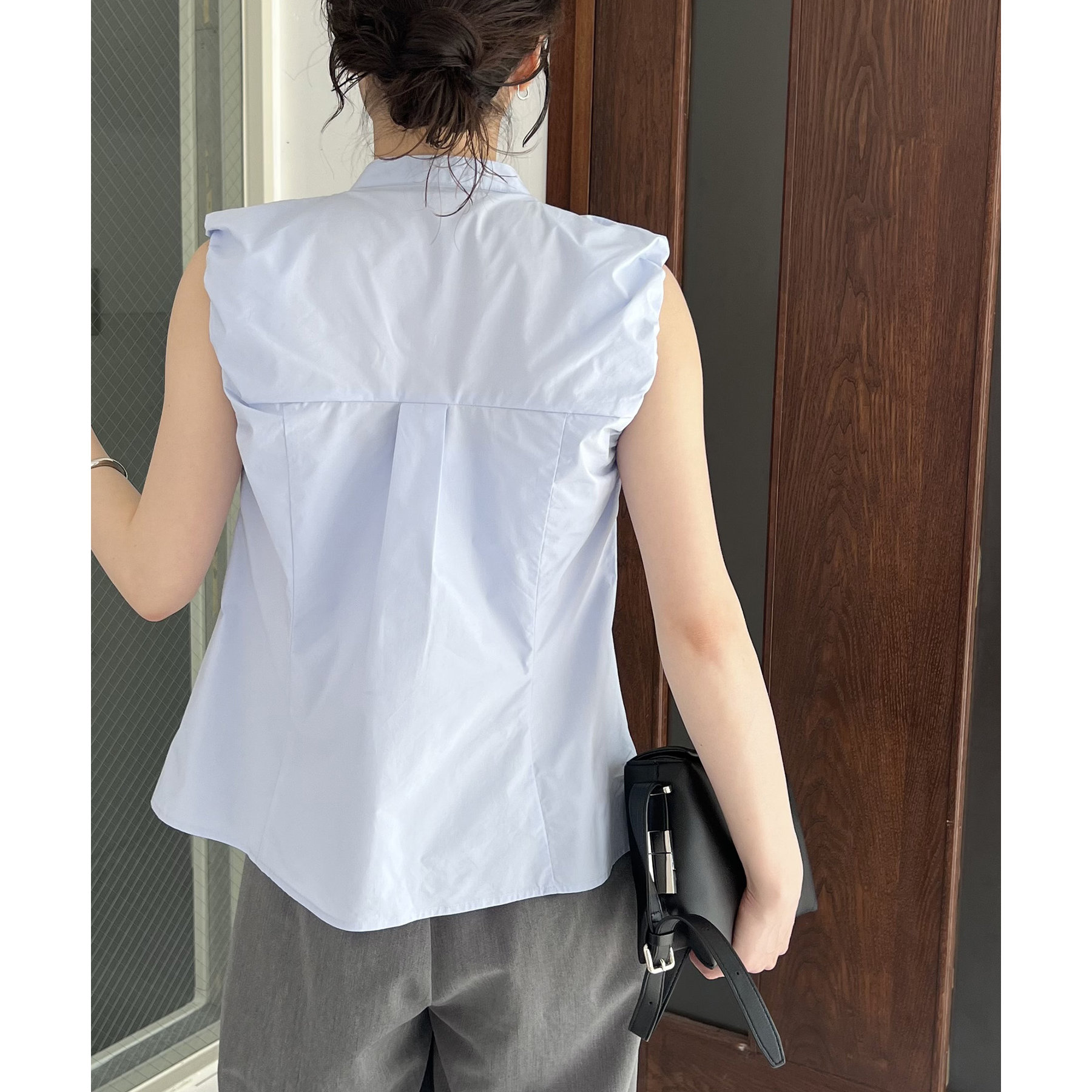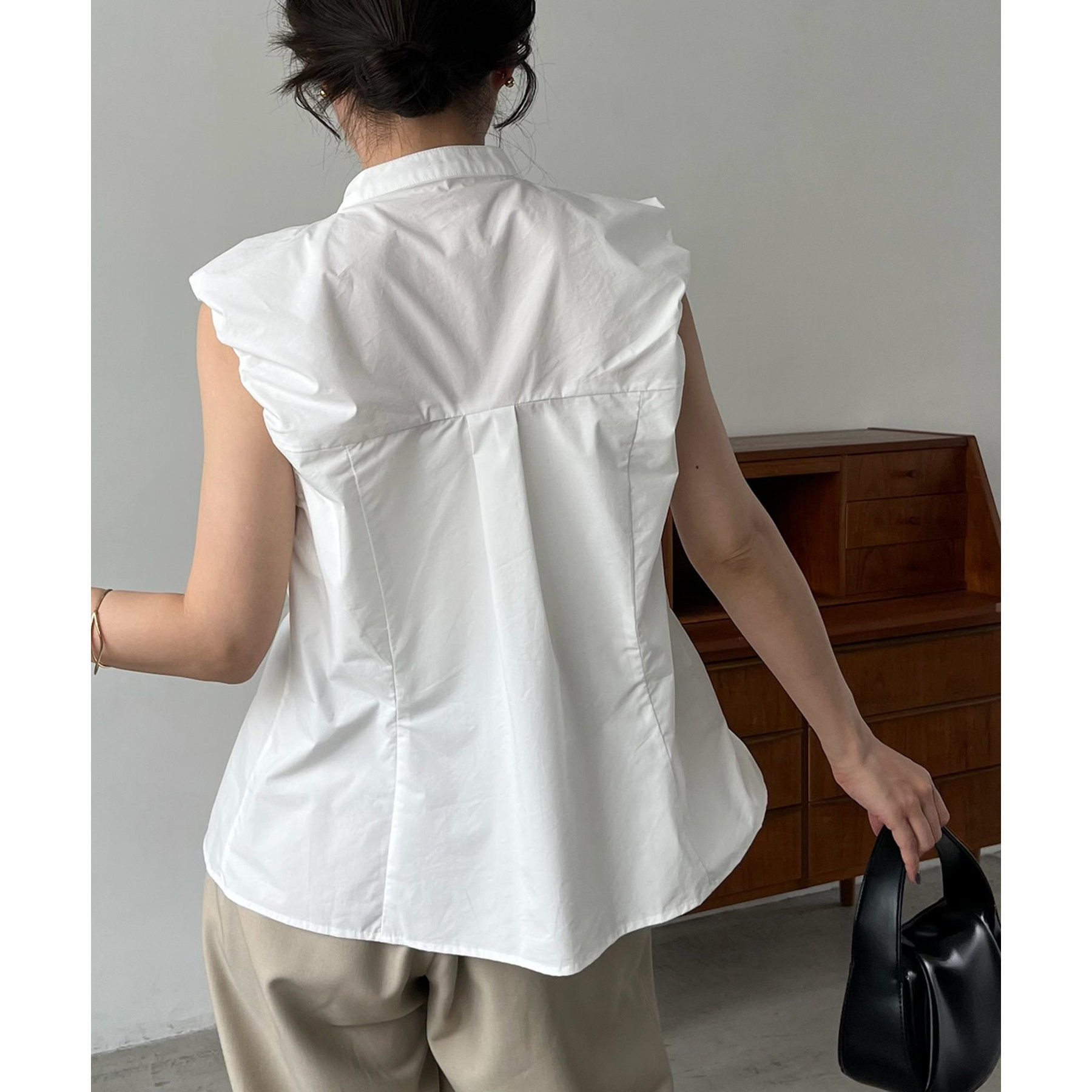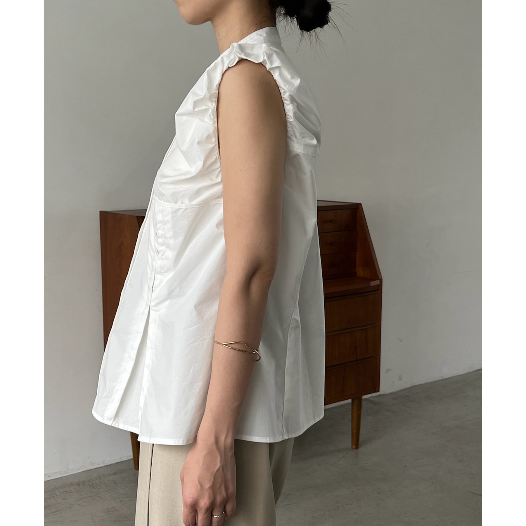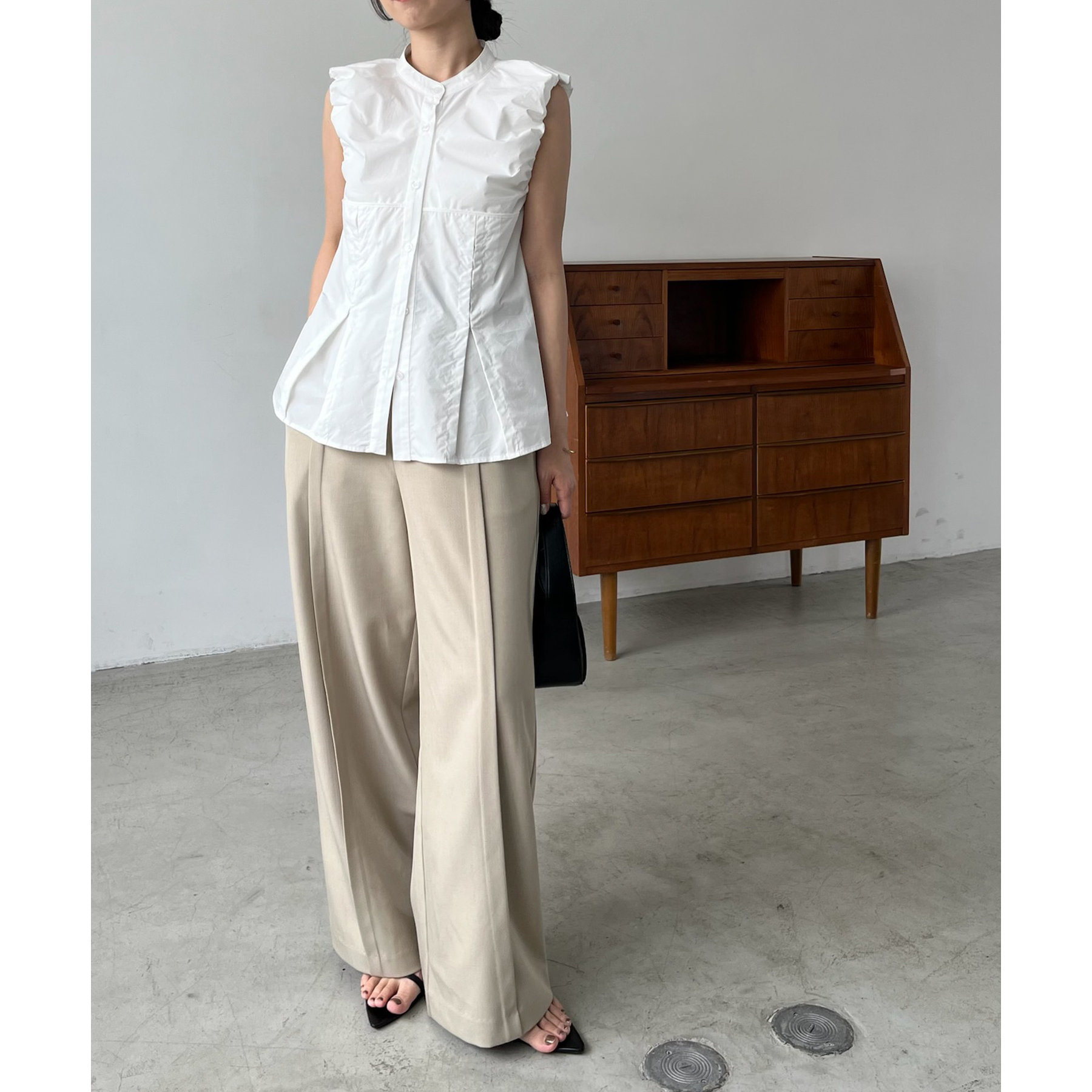 胸下のコルセットのような切替が女性らしいノースリシャツ