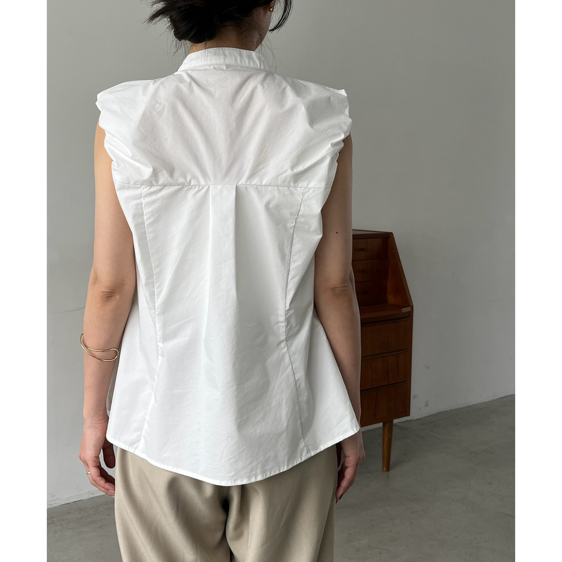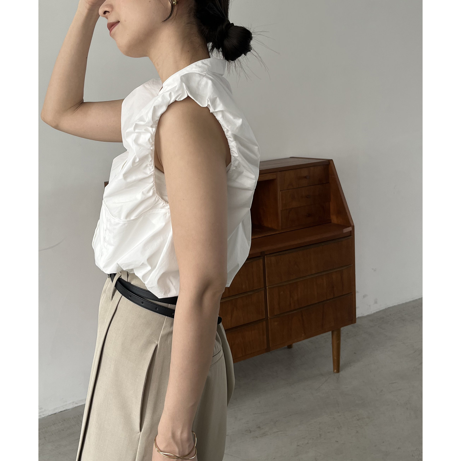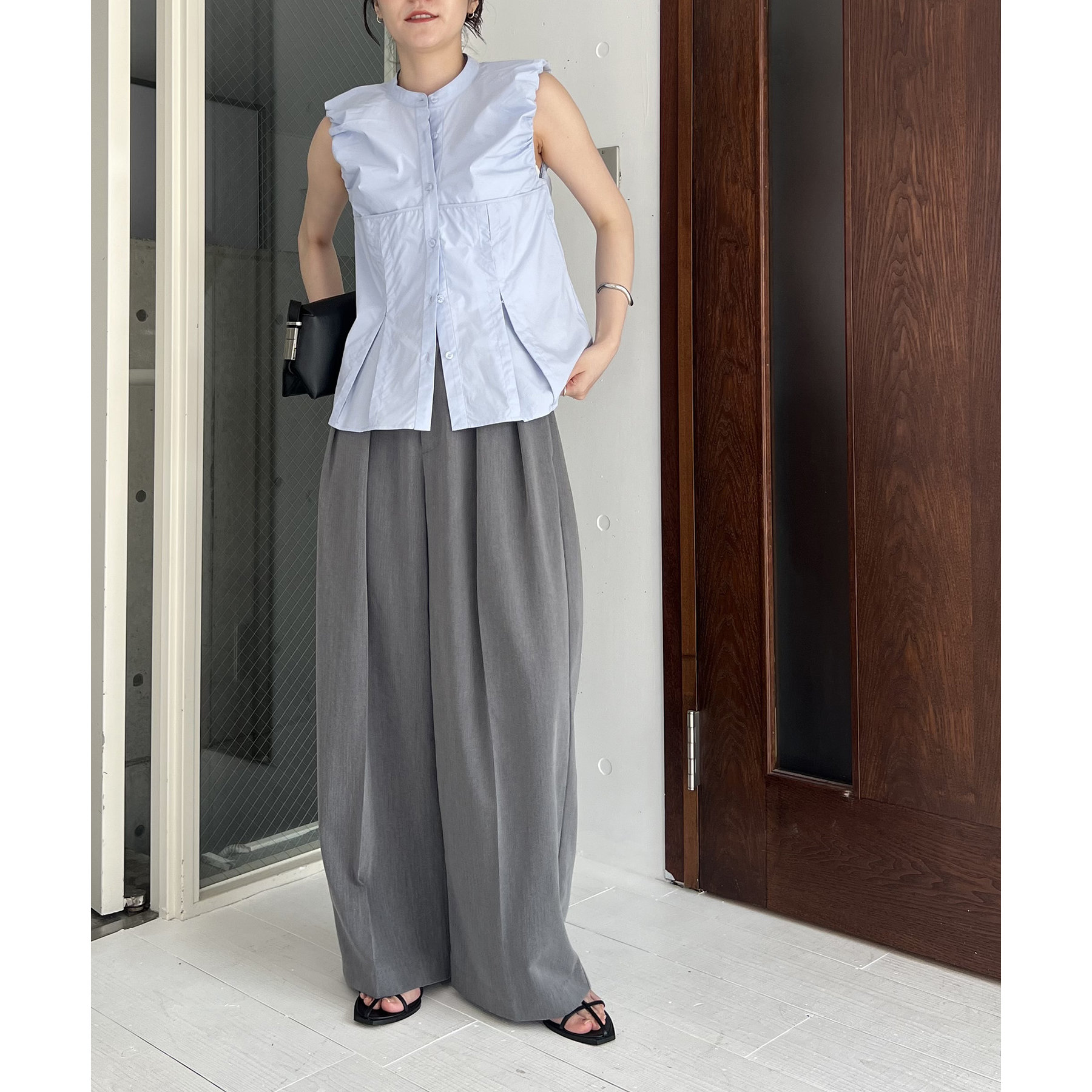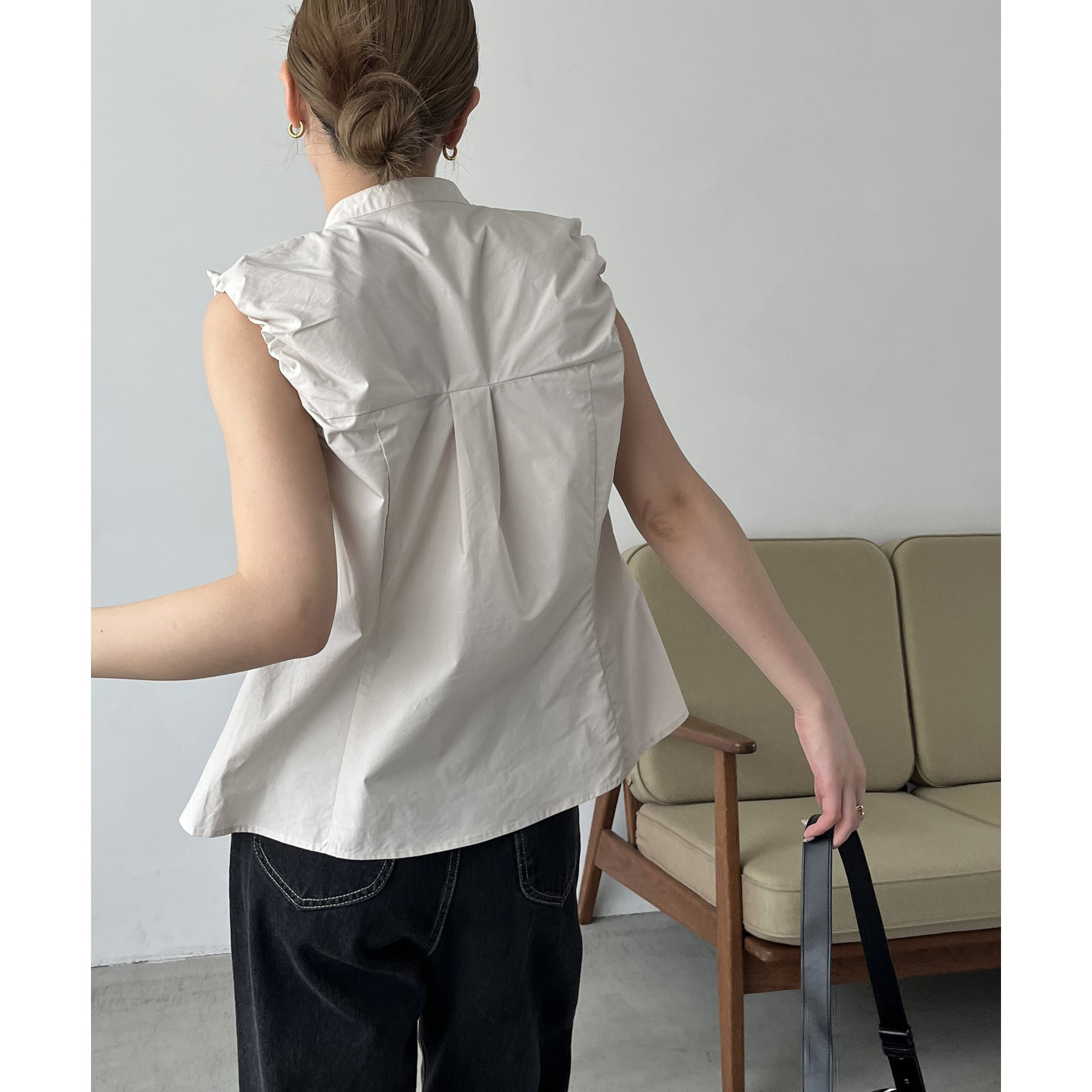 胸下のコルセットのような切替が女性らしいノースリシャツ