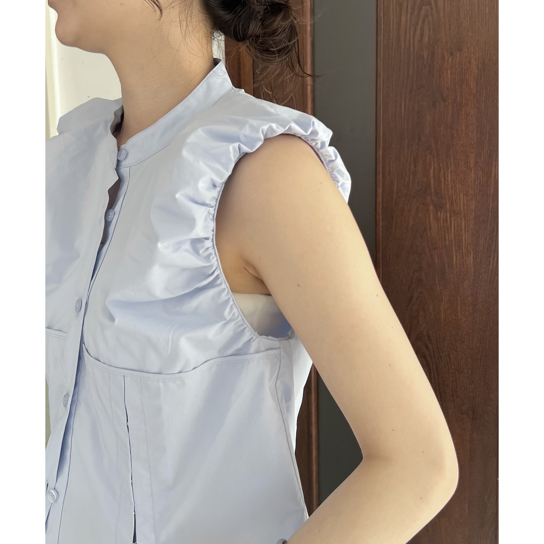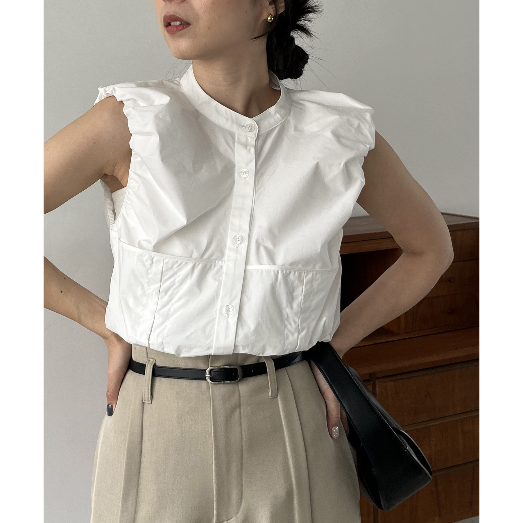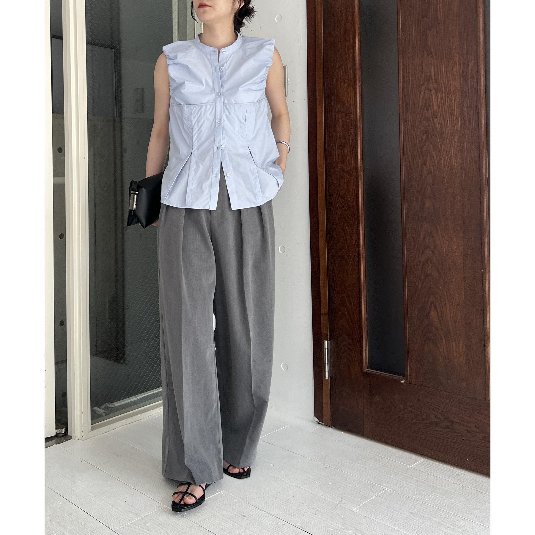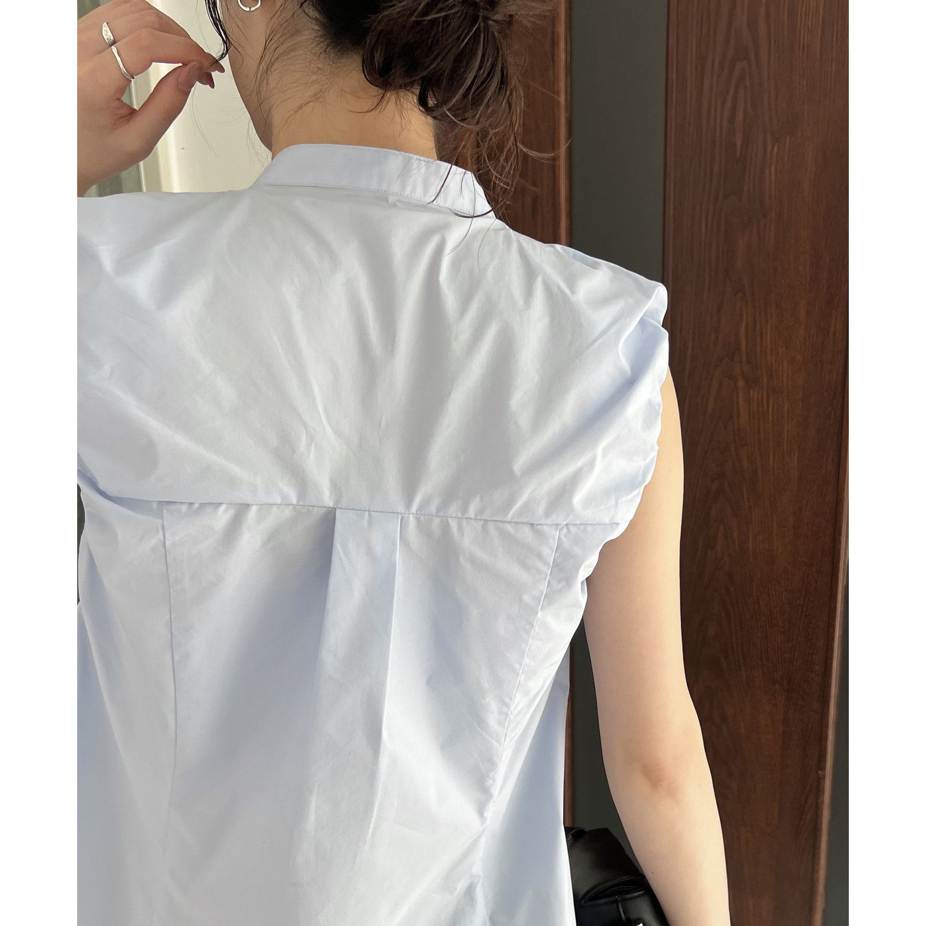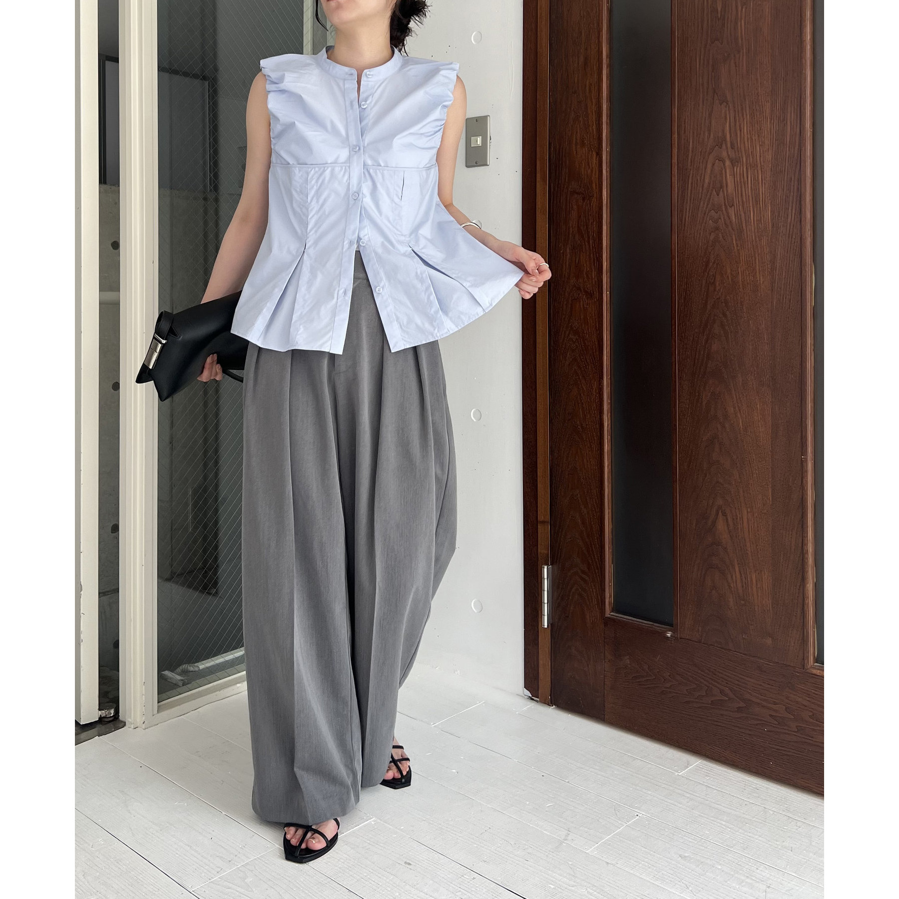 胸下のコルセットのような切替が女性らしいノースリシャツ
