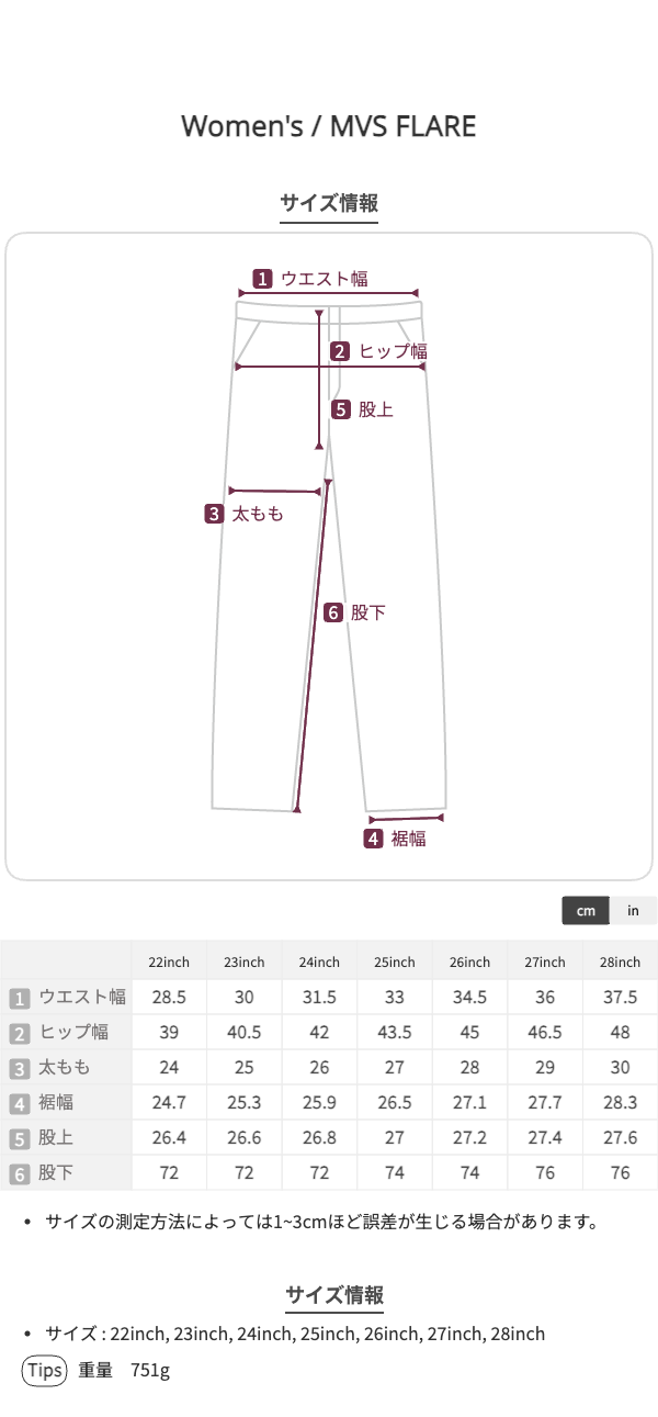 Silhouette 高めに設定したヒザ位置と裾に向けたフレアの分量で、脚を長く見せる効果を発揮します。
