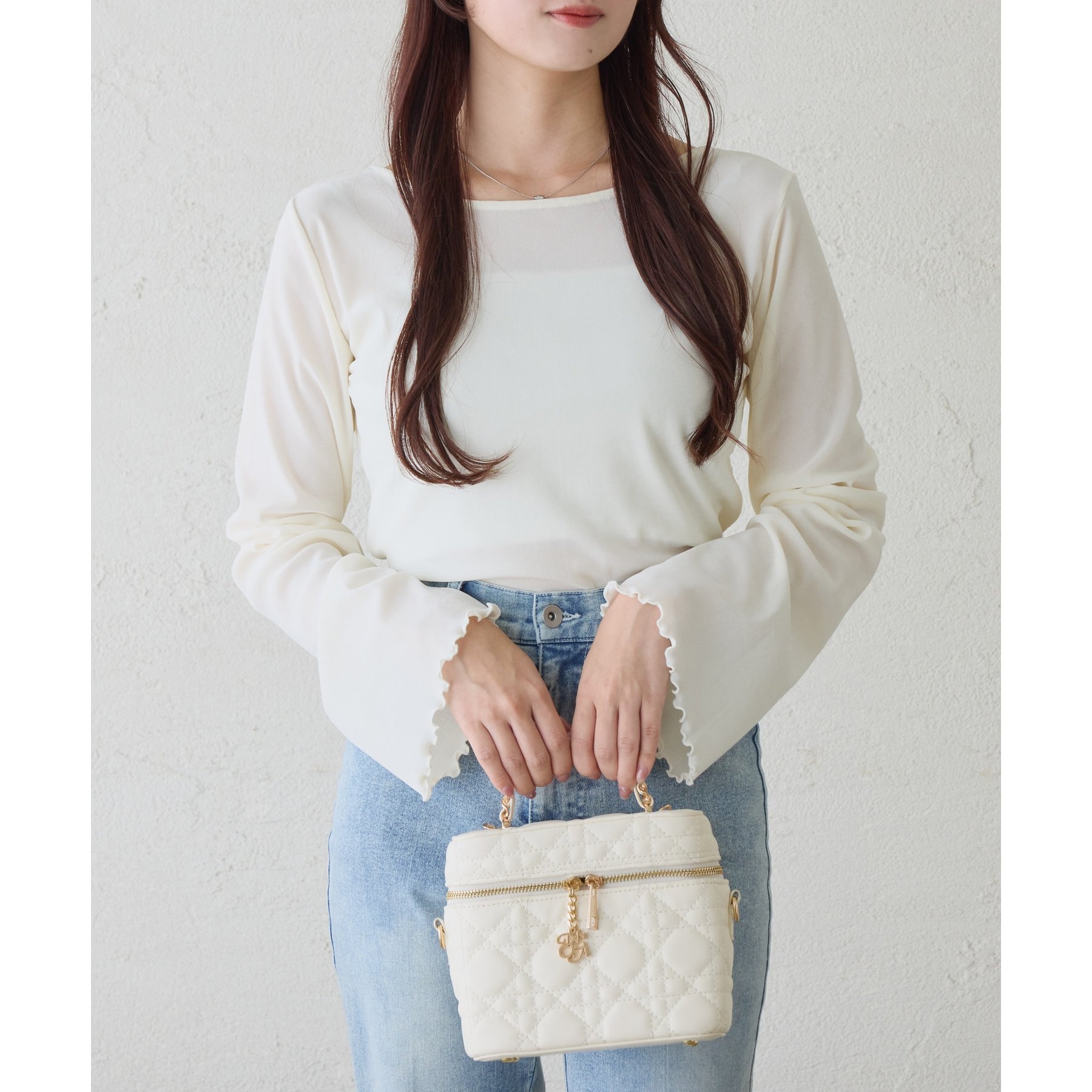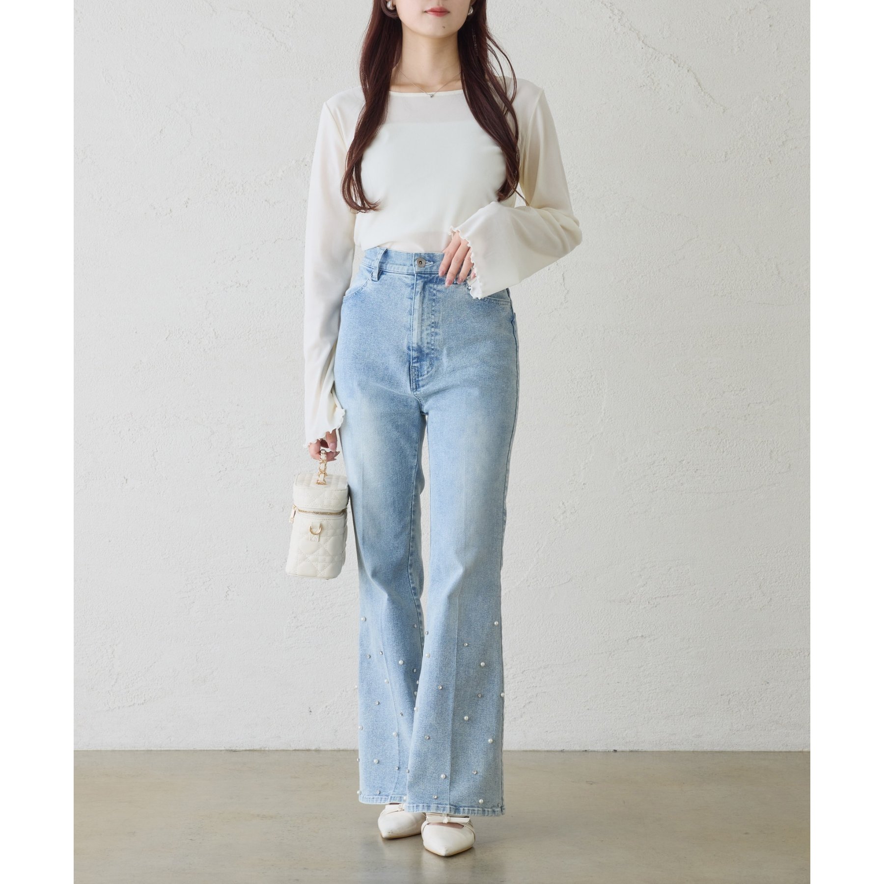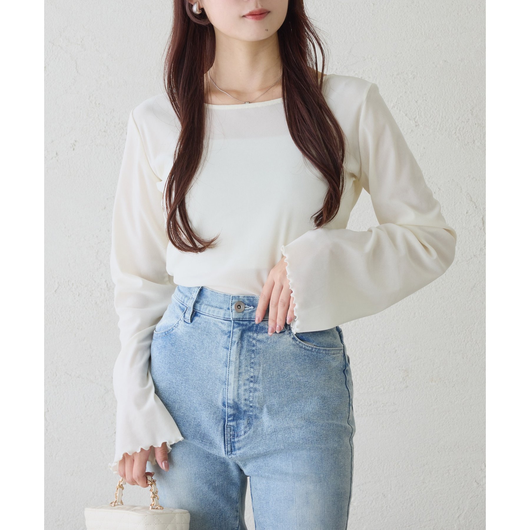 フレアスカートやティアードスカートと合わせて、フェミニンな着こなしに。