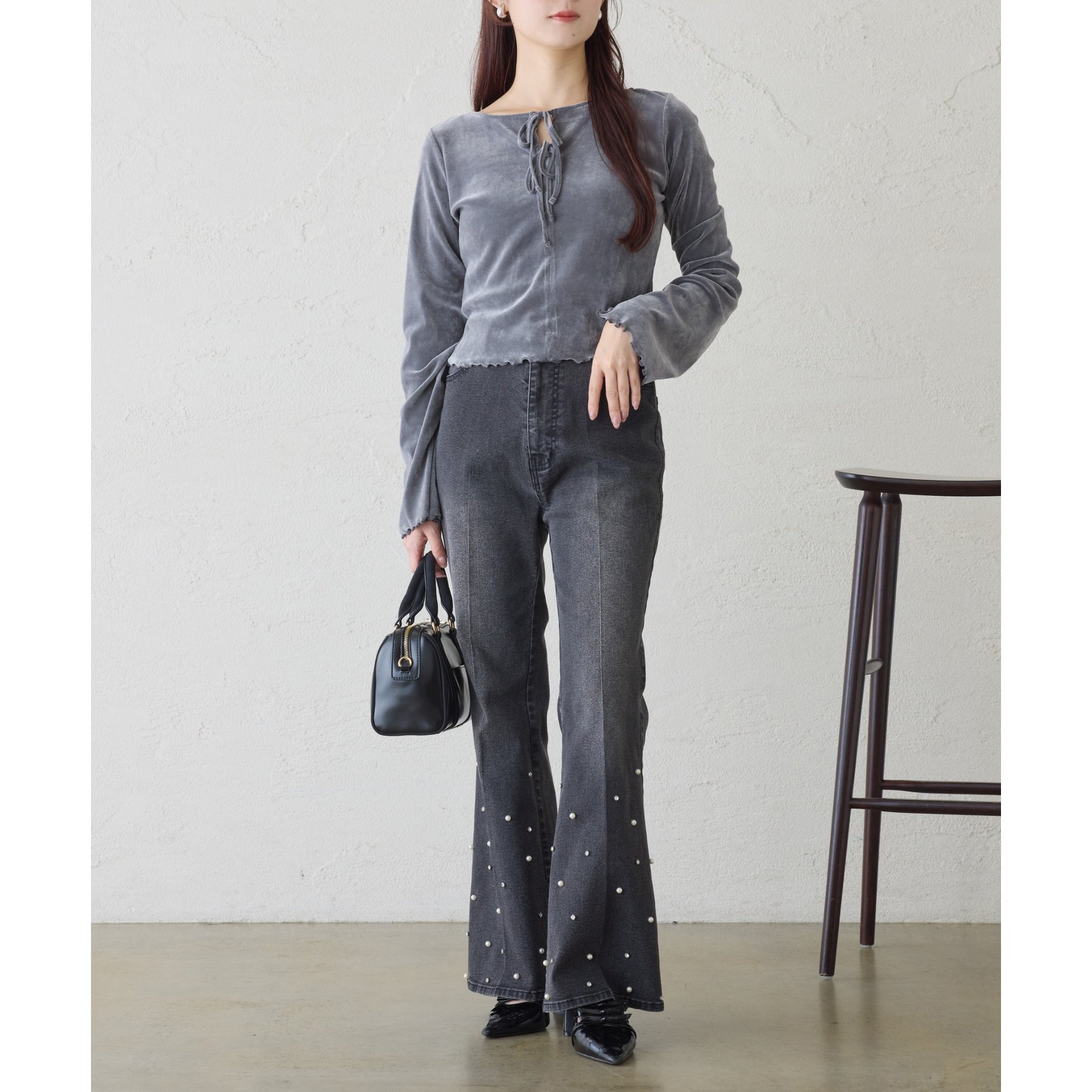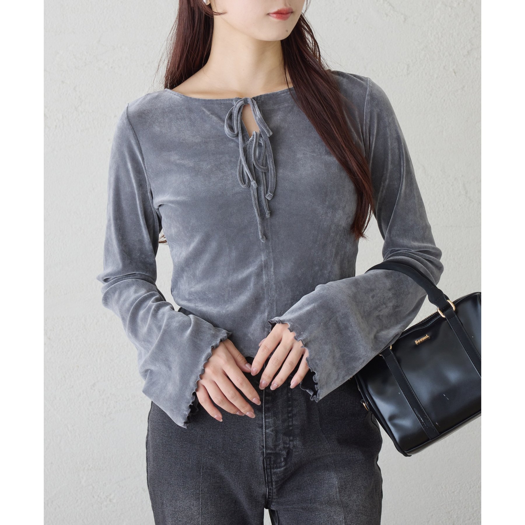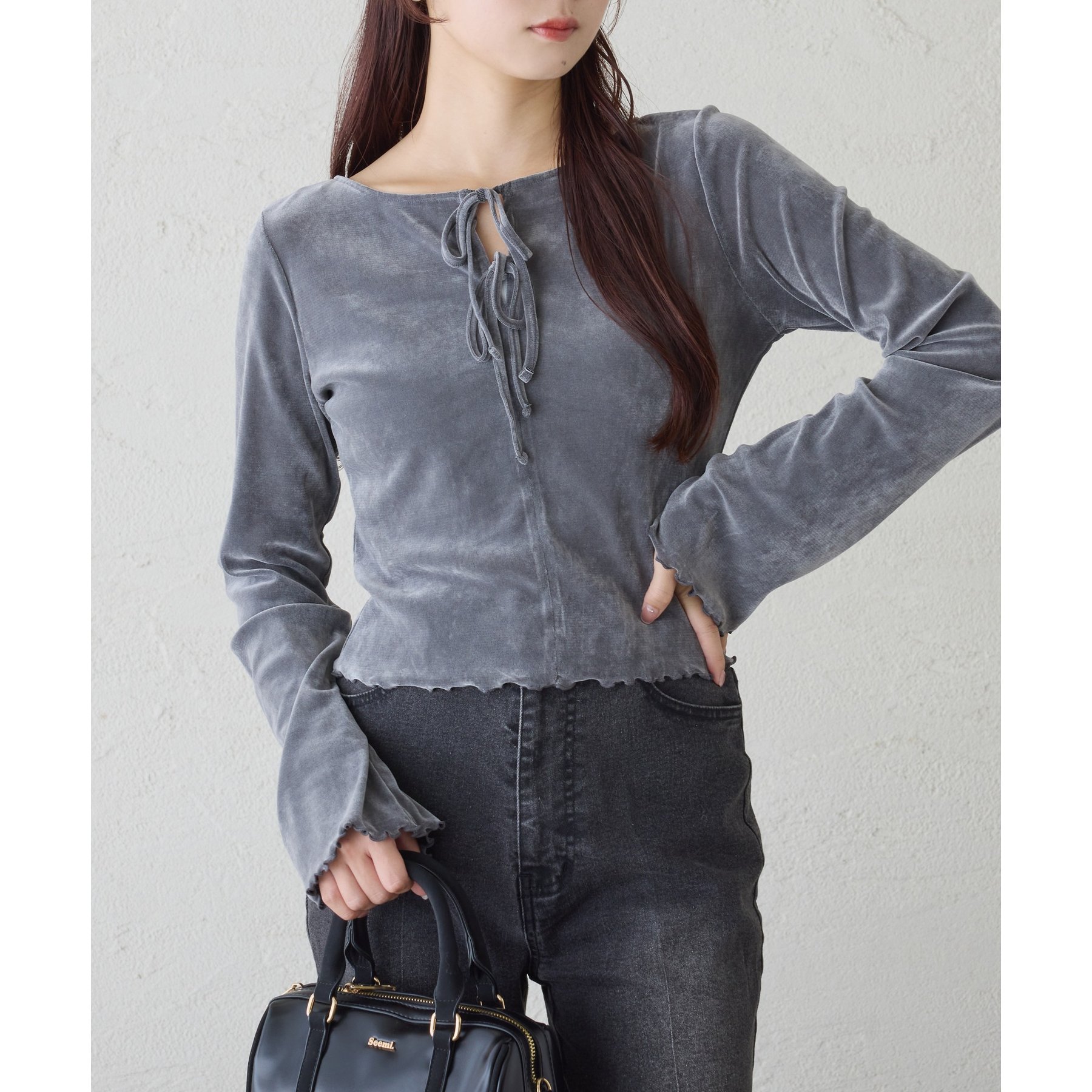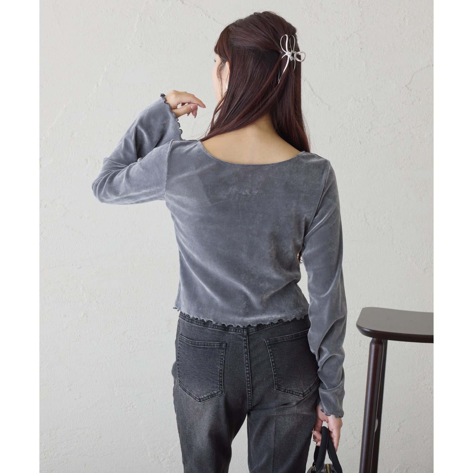 ベロア素材を使用したトップス。