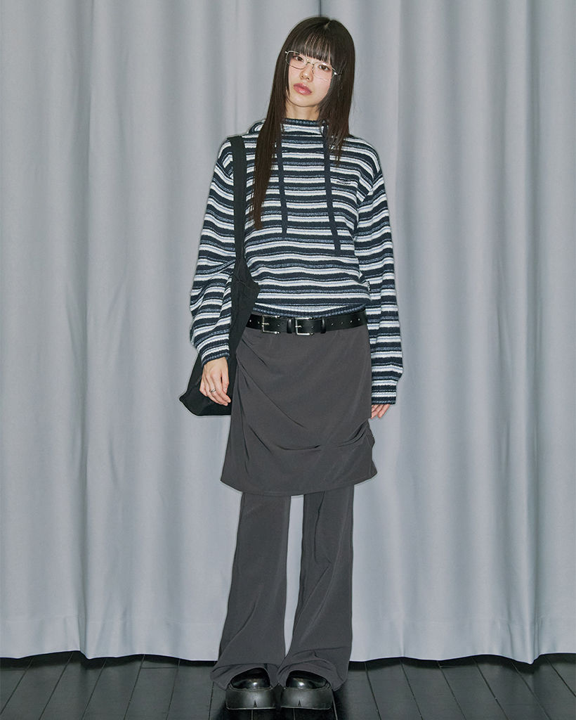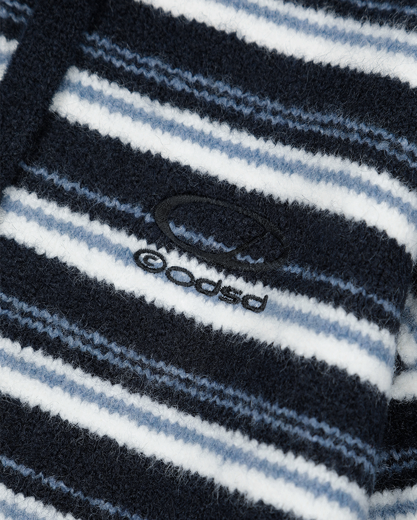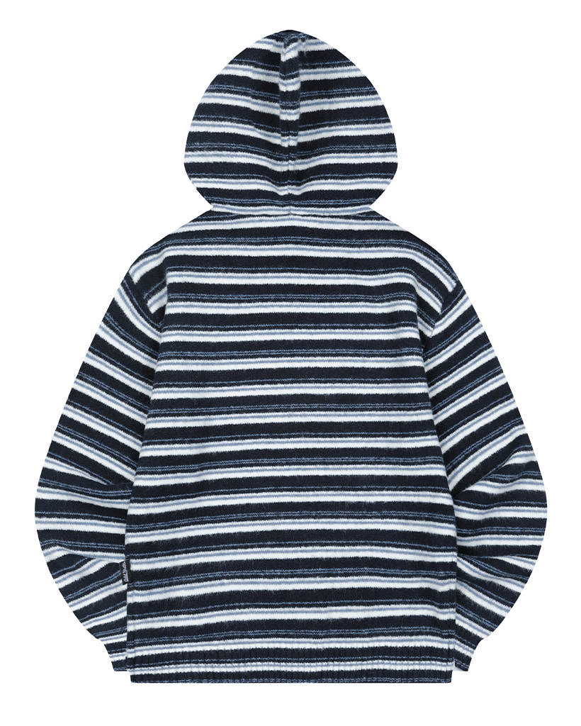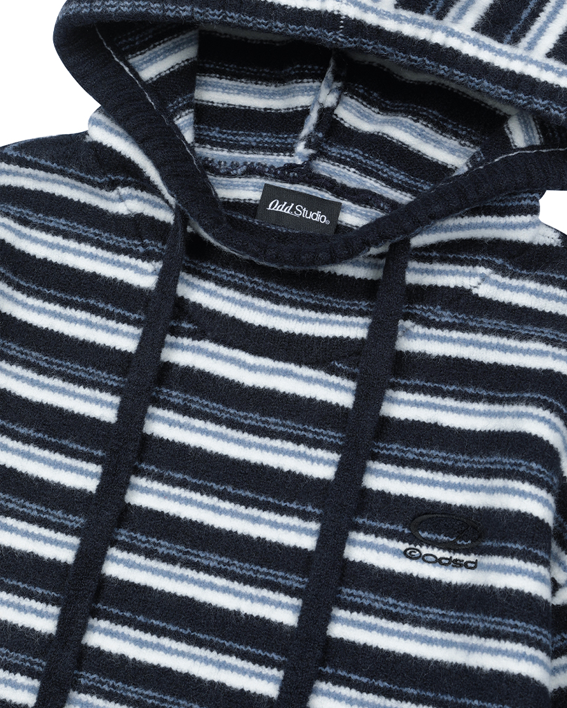Stripe Turtleneck Balloonfit Hood Knit - NAVY