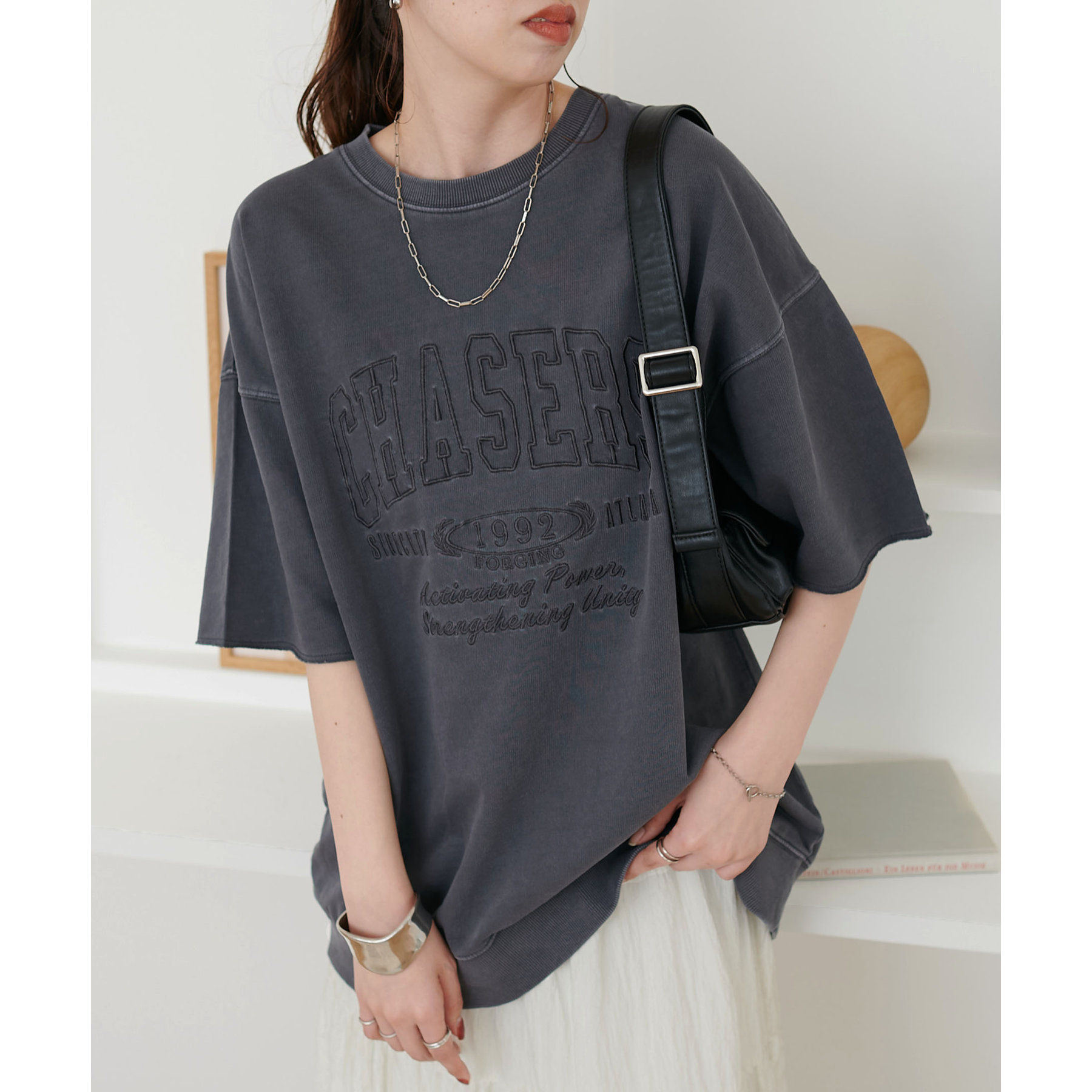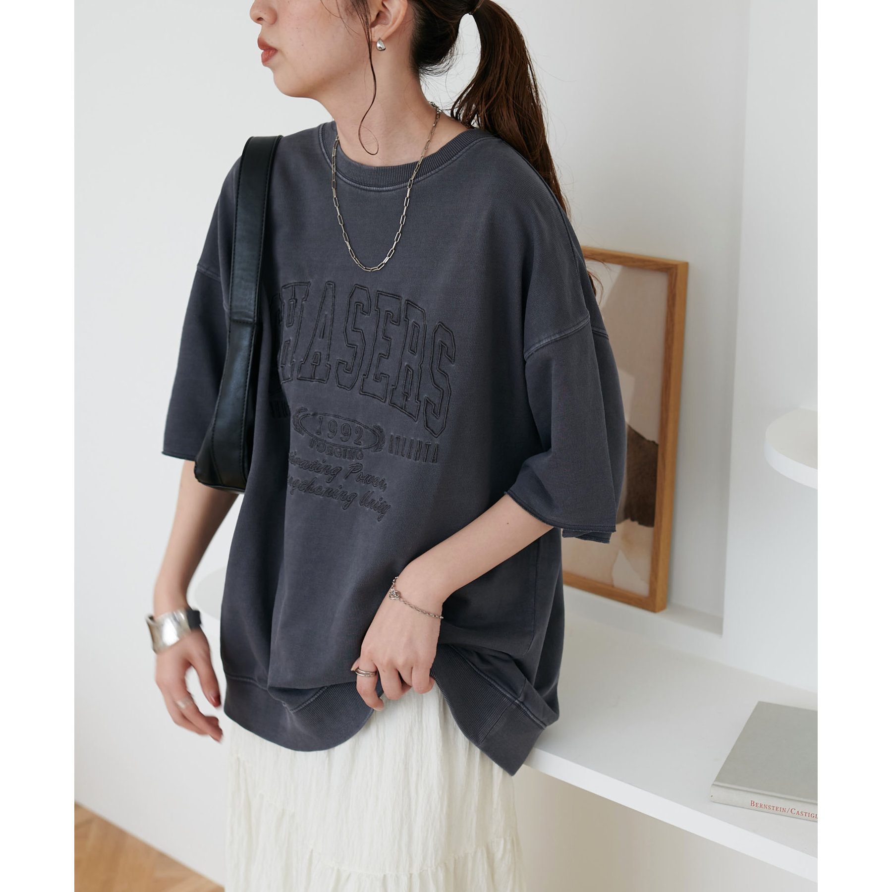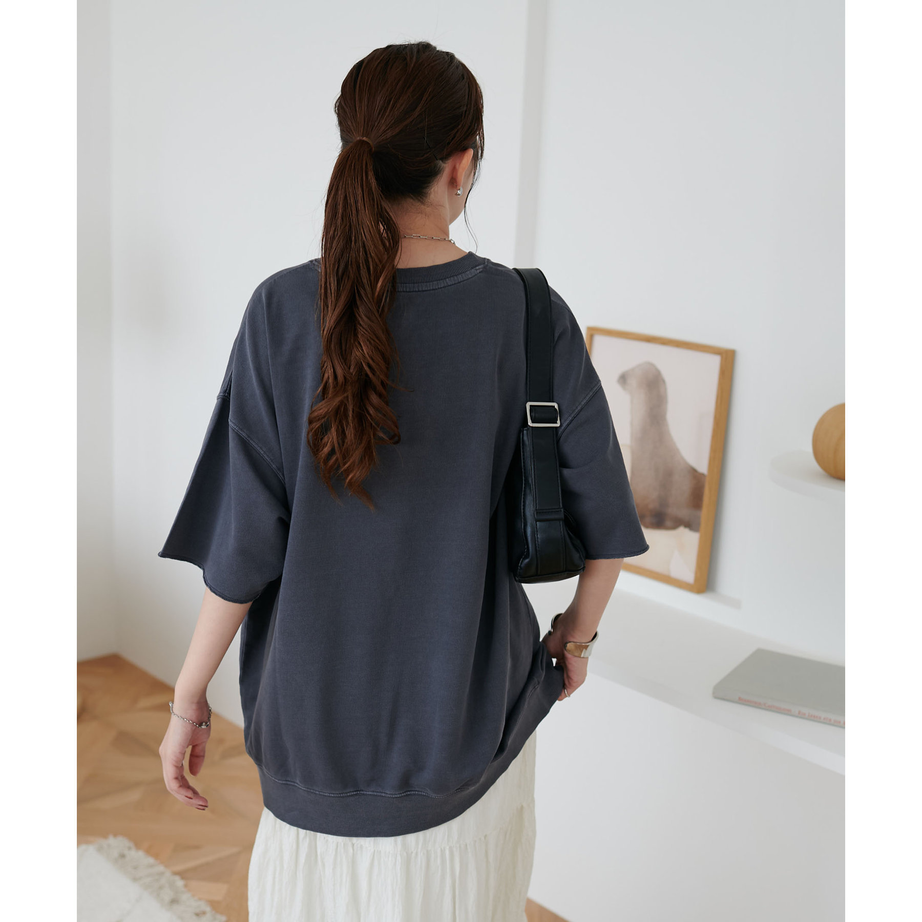 ピグメント加工に加え袖口をカットオフデザインにすることでさらにヴィンテージ感溢れる一枚に仕上がりました。ゆったりとしたオーバーサイズシルエットでトレンド感ある着こなしを叶えます。パンツスタイルはもちろん、スカートを合わせて甘さをプラスしたスタイリングもおすすめです♪