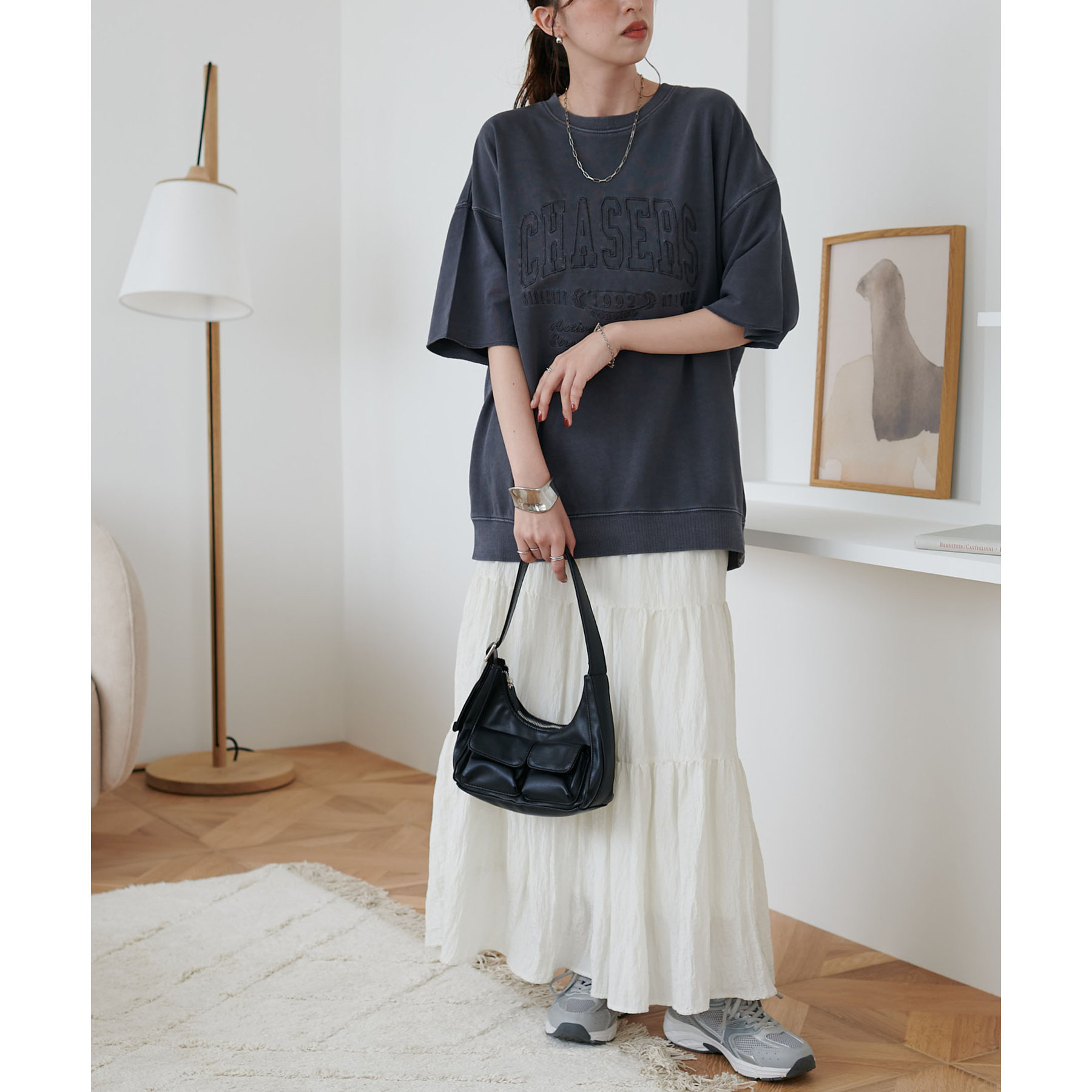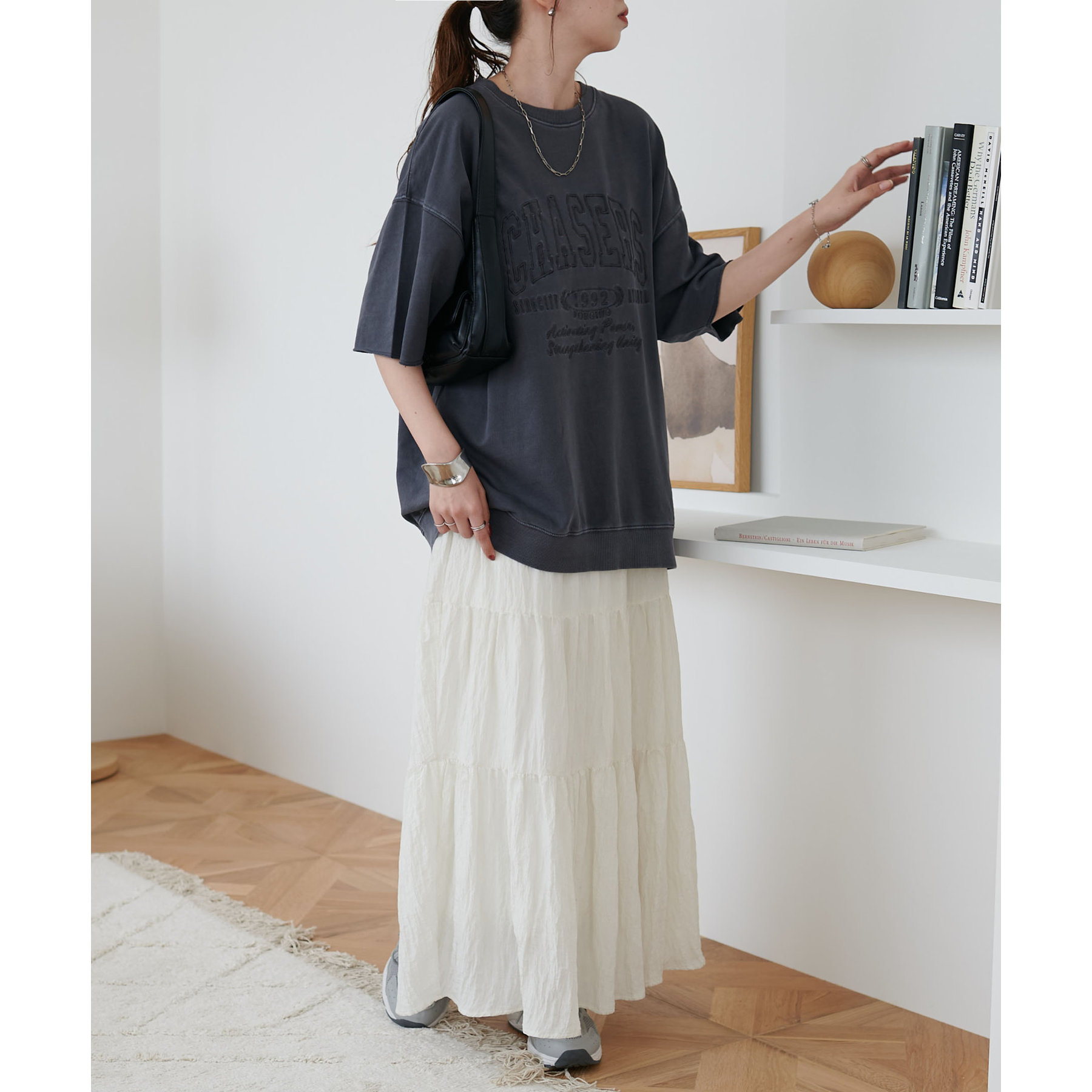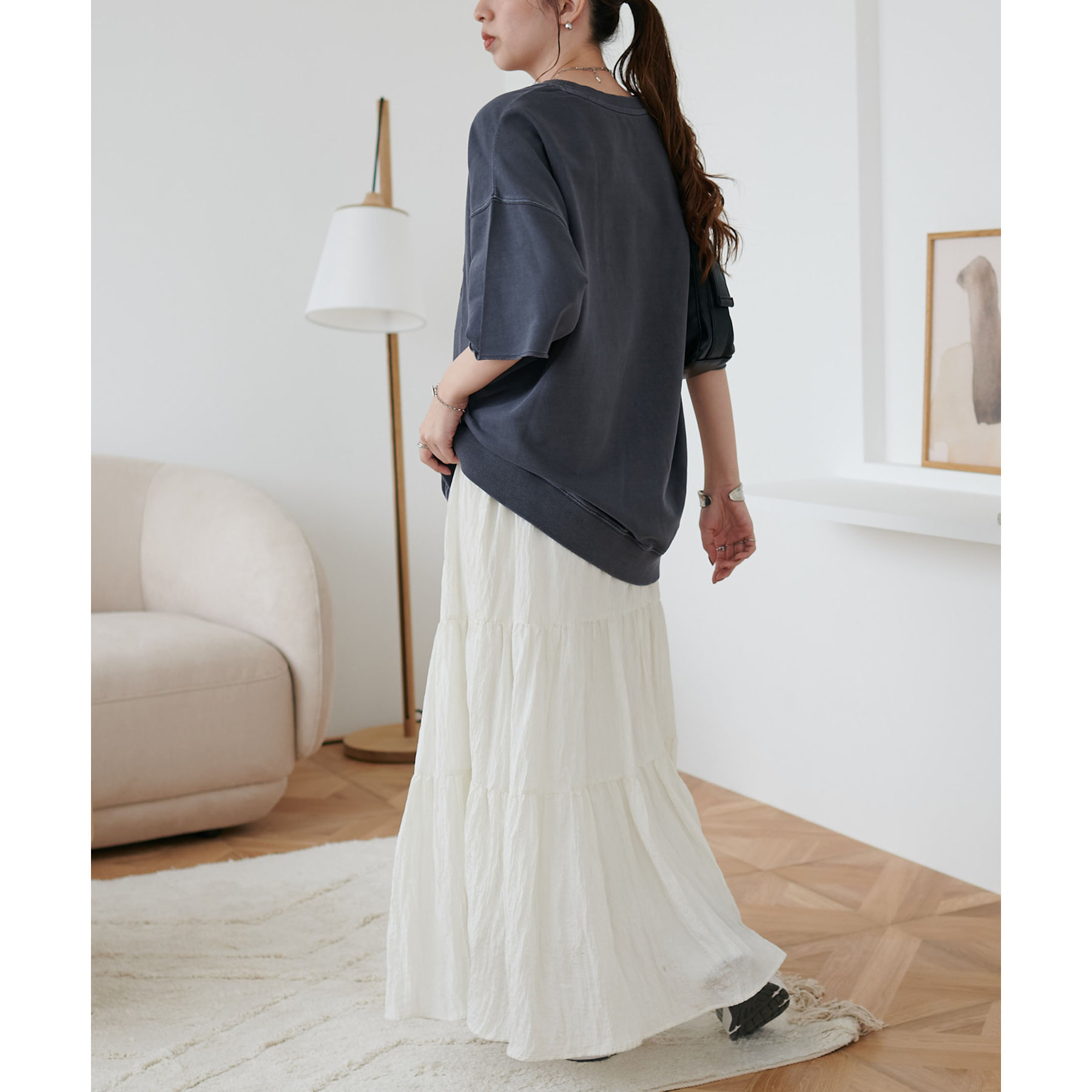 ピグメント加工に加え袖口をカットオフデザインにすることでさらにヴィンテージ感溢れる一枚に仕上がりました。ゆったりとしたオーバーサイズシルエットでトレンド感ある着こなしを叶えます。パンツスタイルはもちろん、スカートを合わせて甘さをプラスしたスタイリングもおすすめです♪