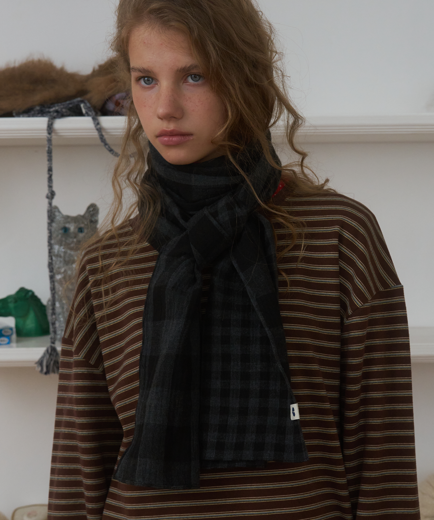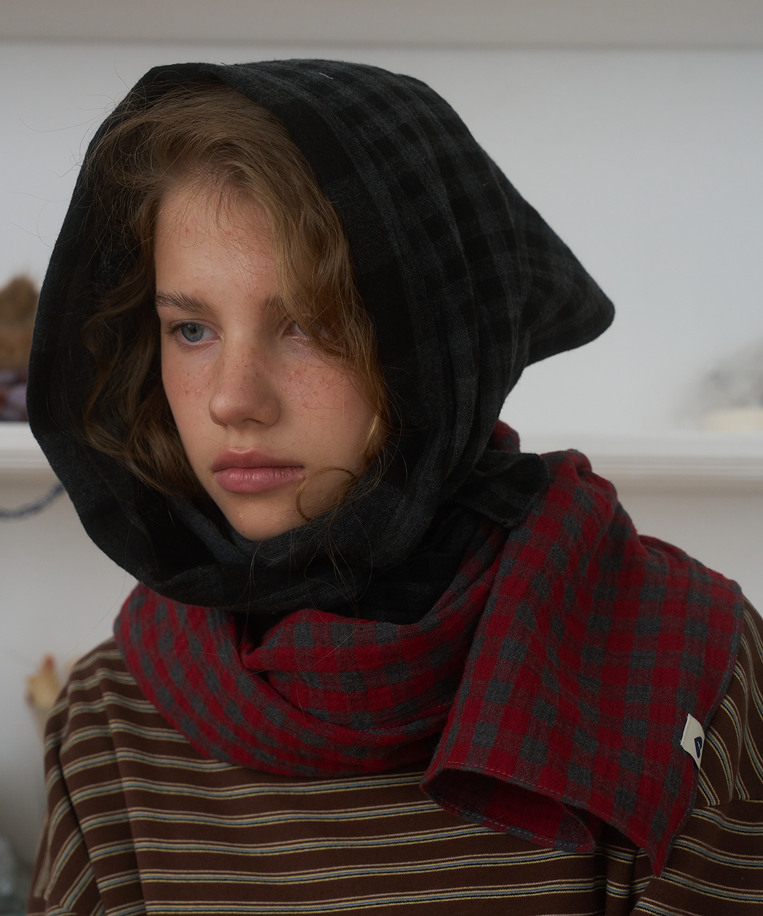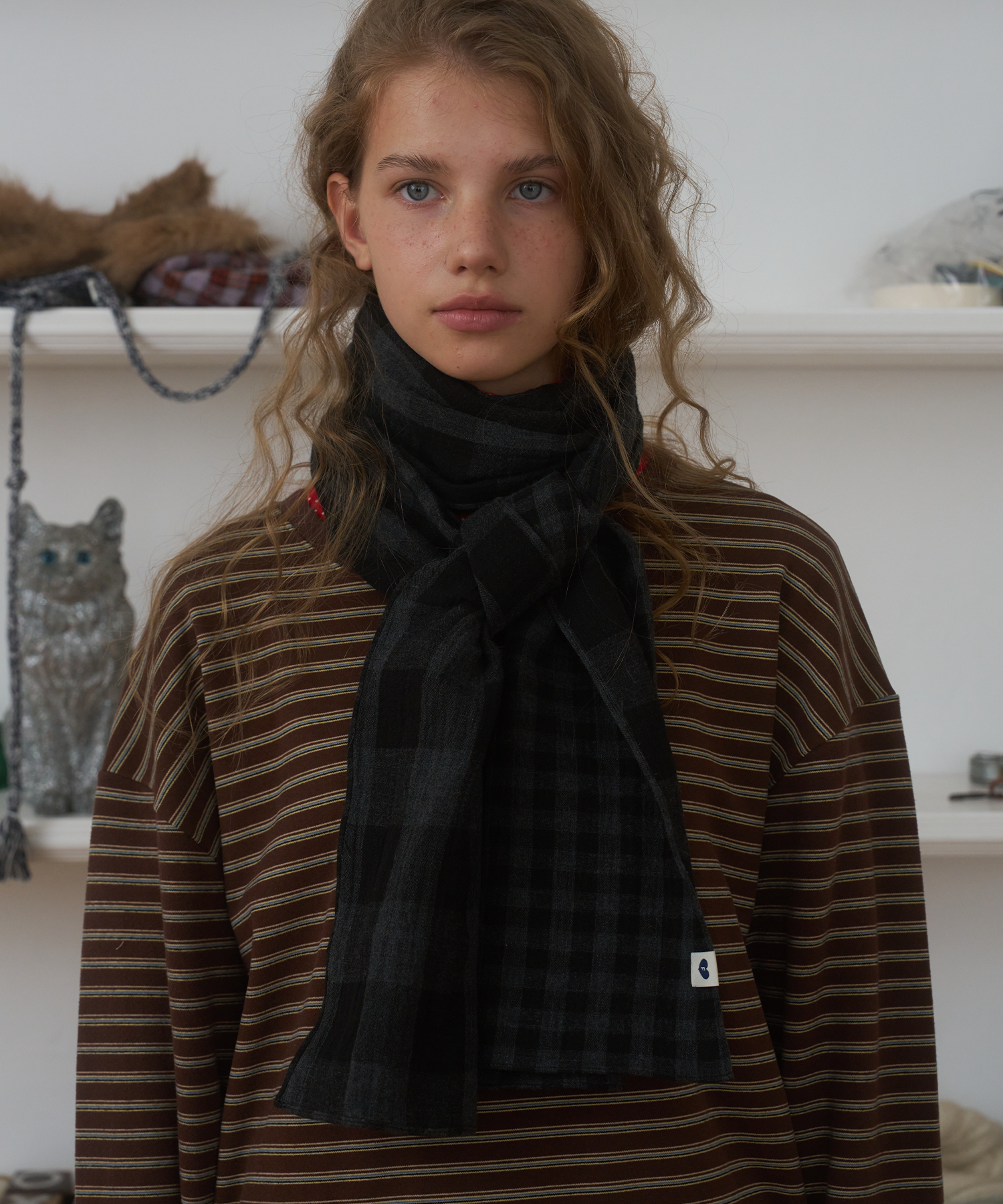 Twin-Check Scarf, Black