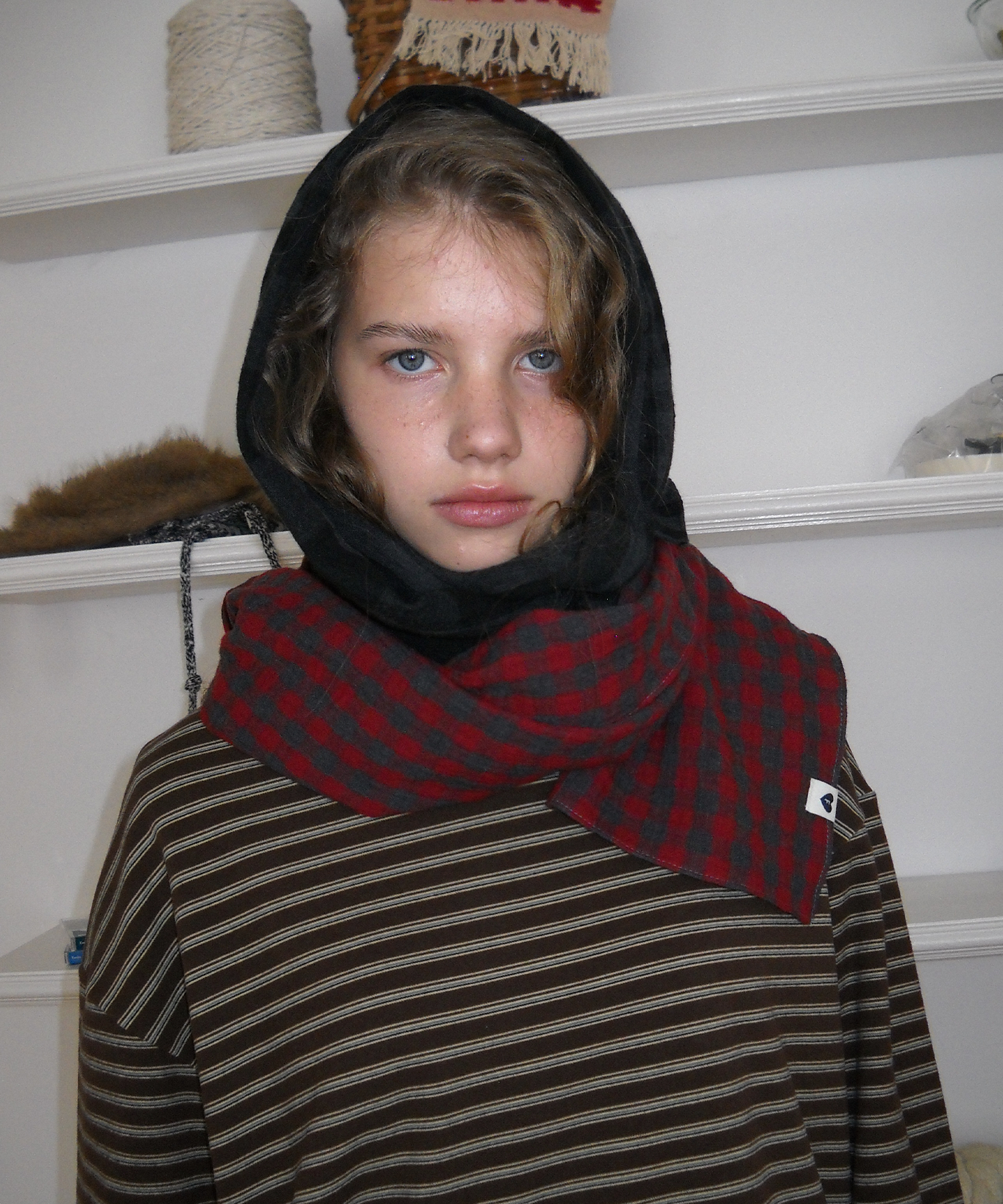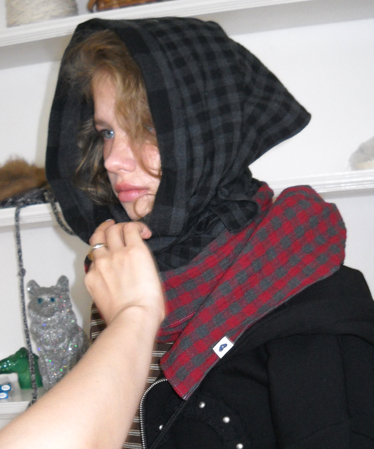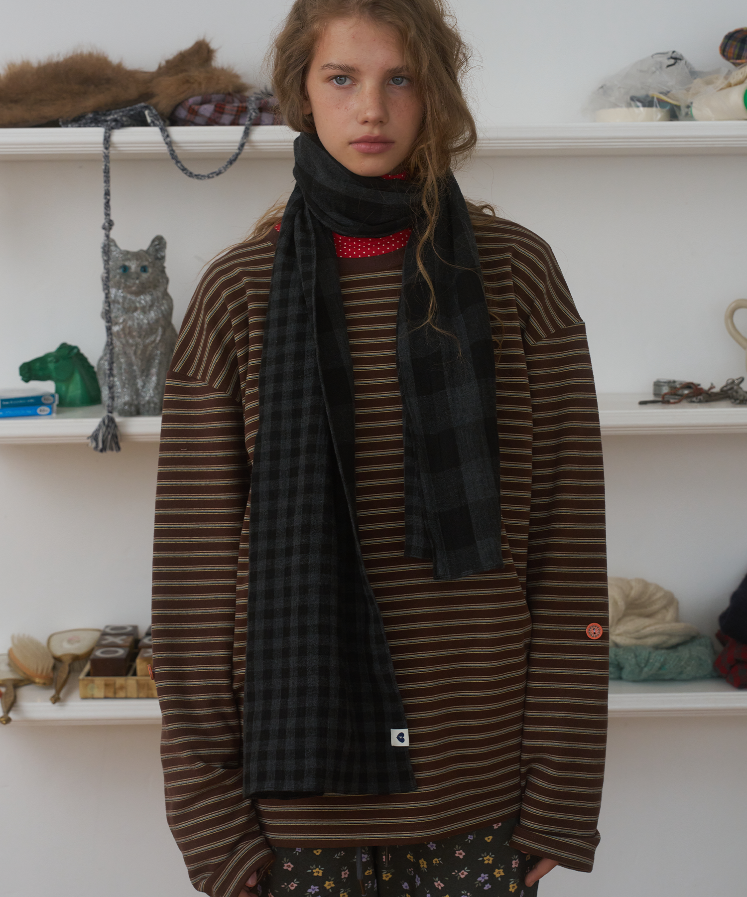 Twin-Check Scarf, Black