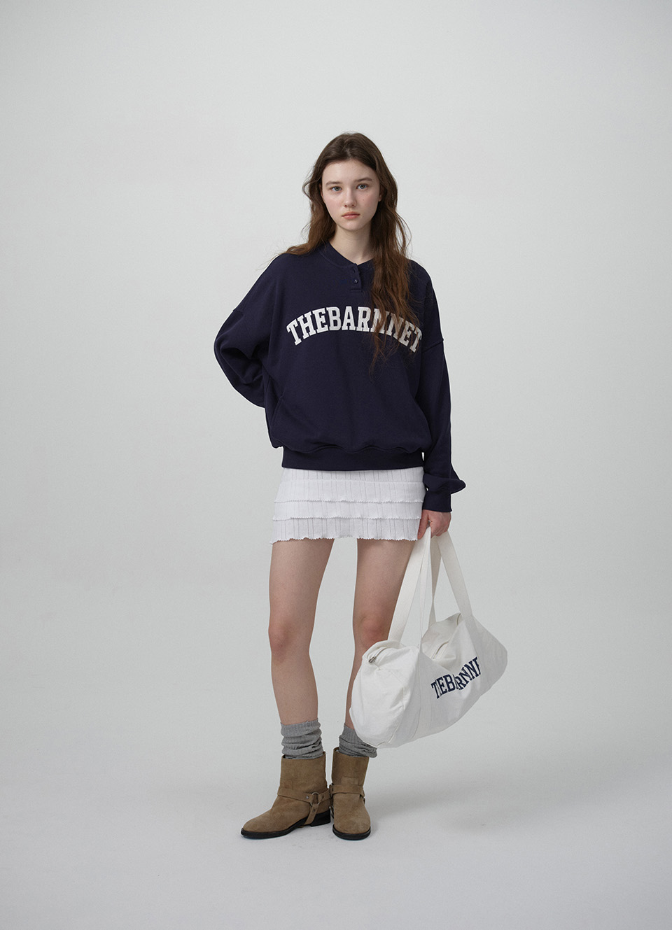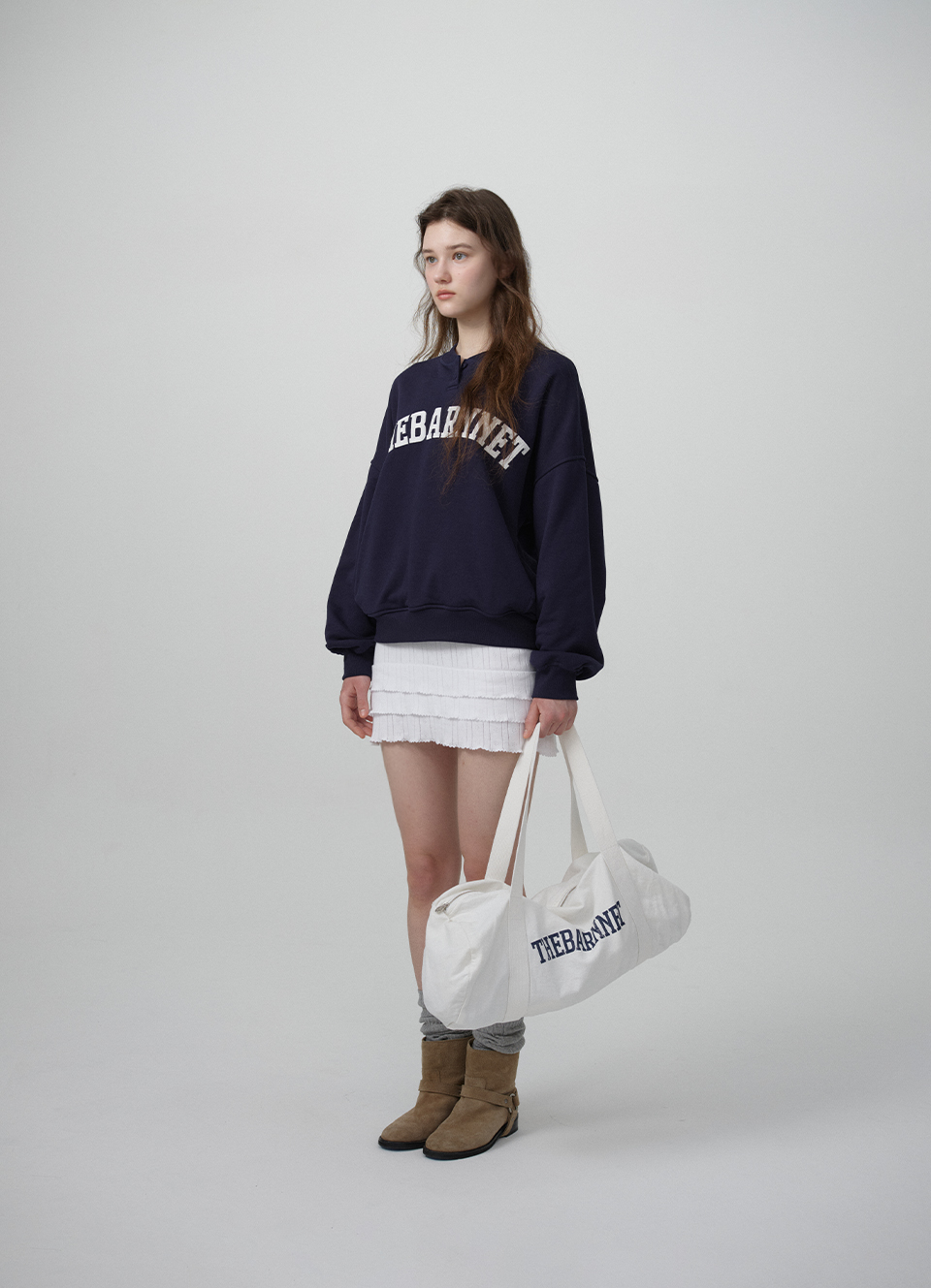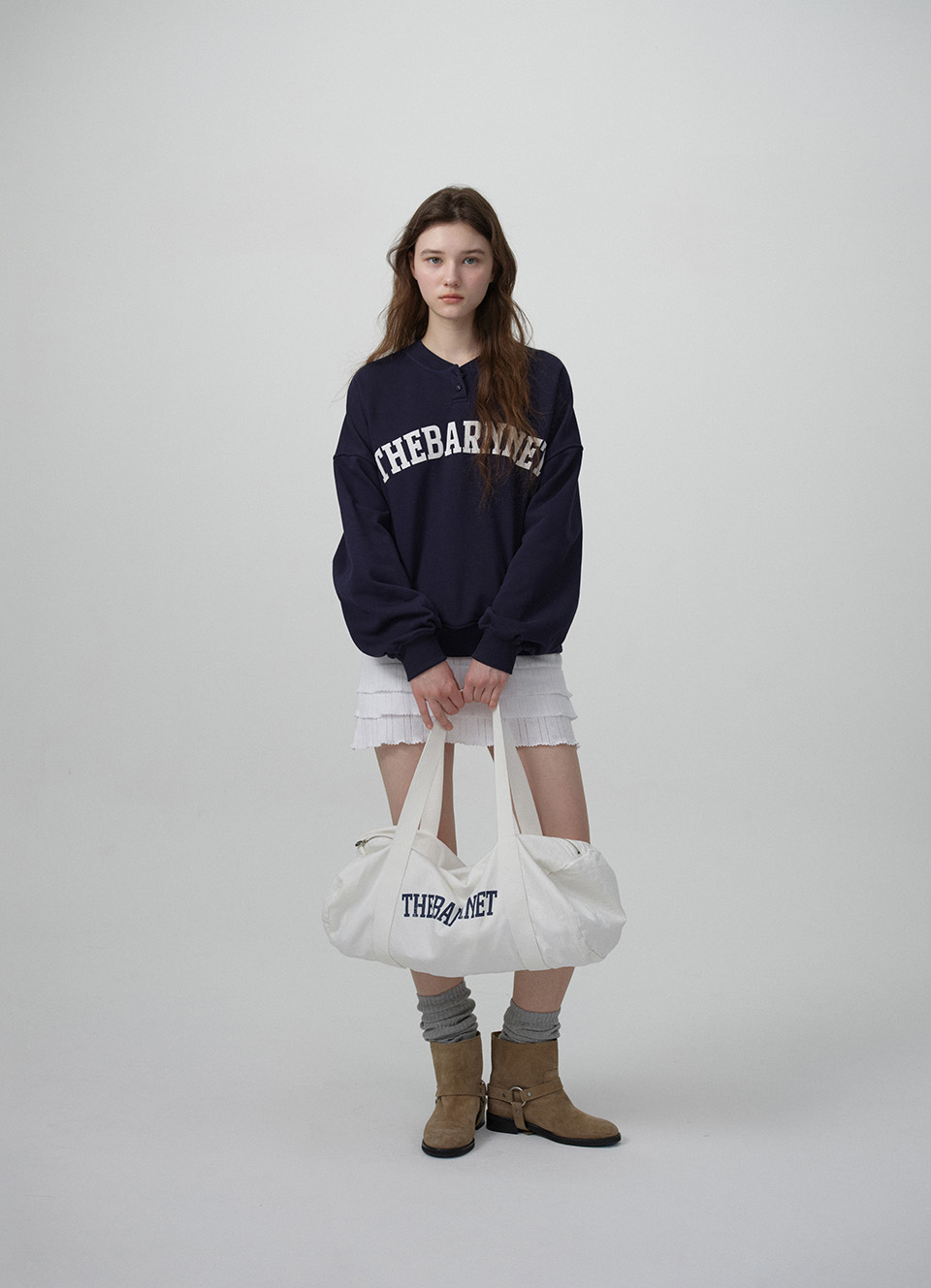 フロントにTHE BARNNETロゴプリントとウェビングストラップディテール