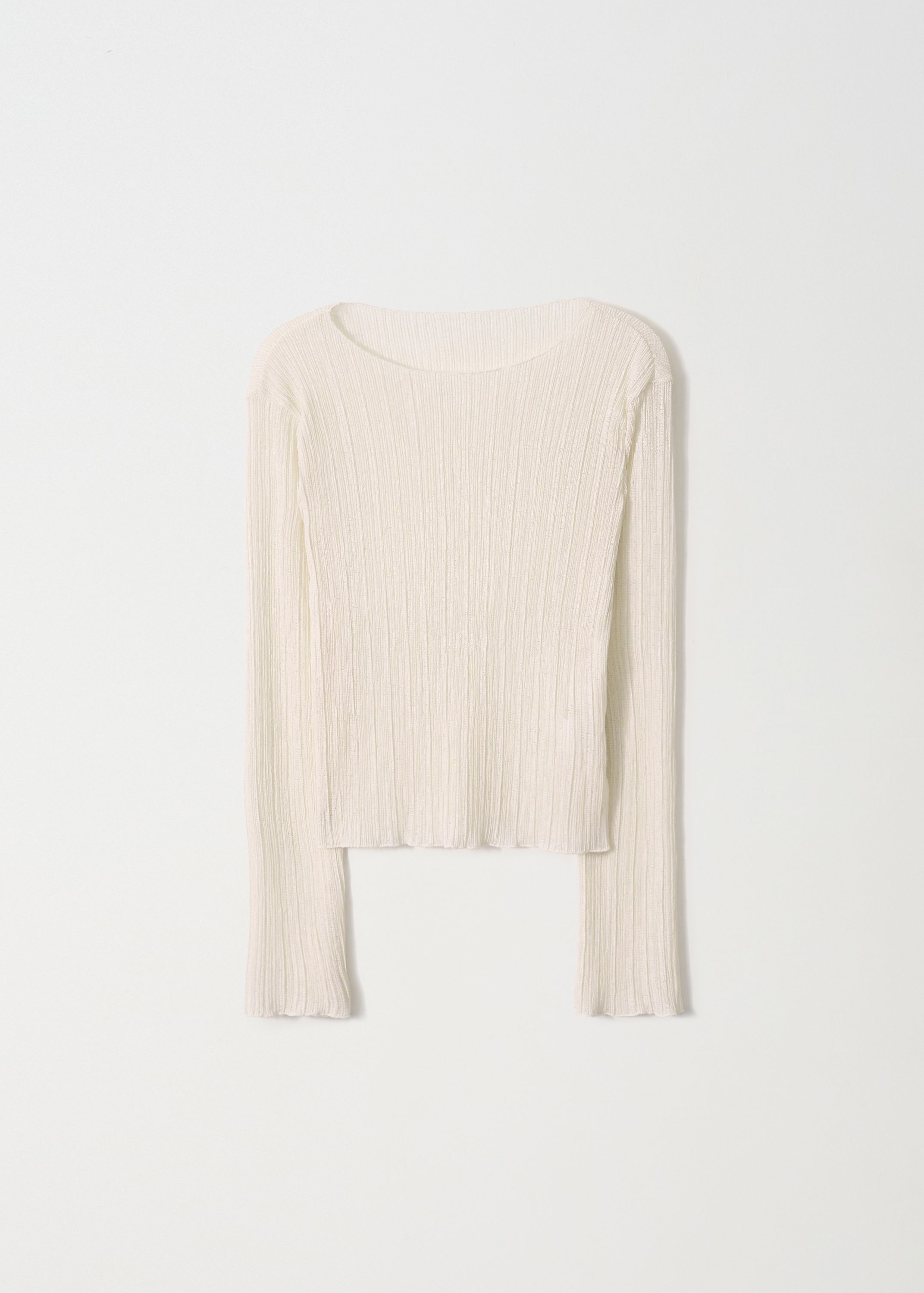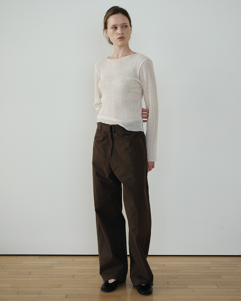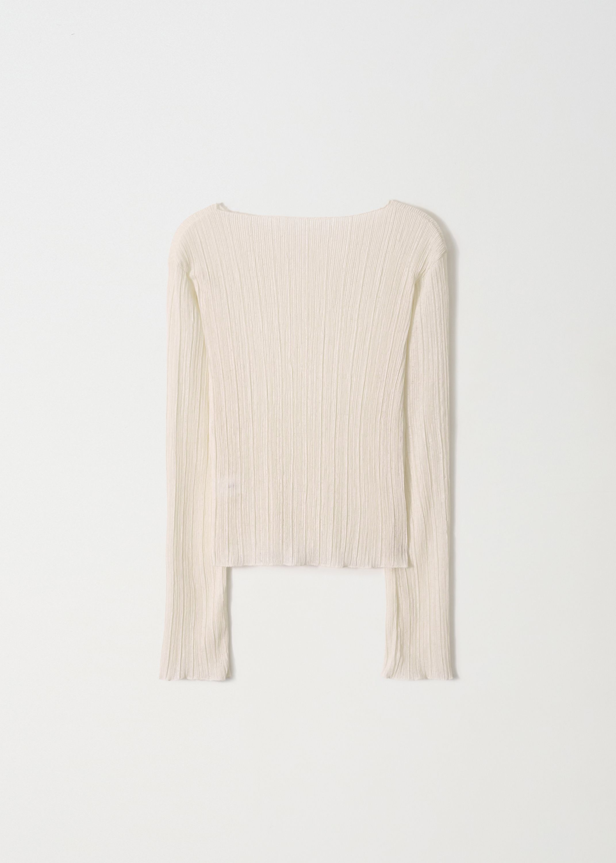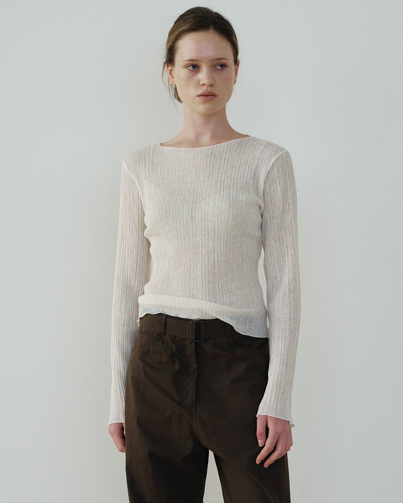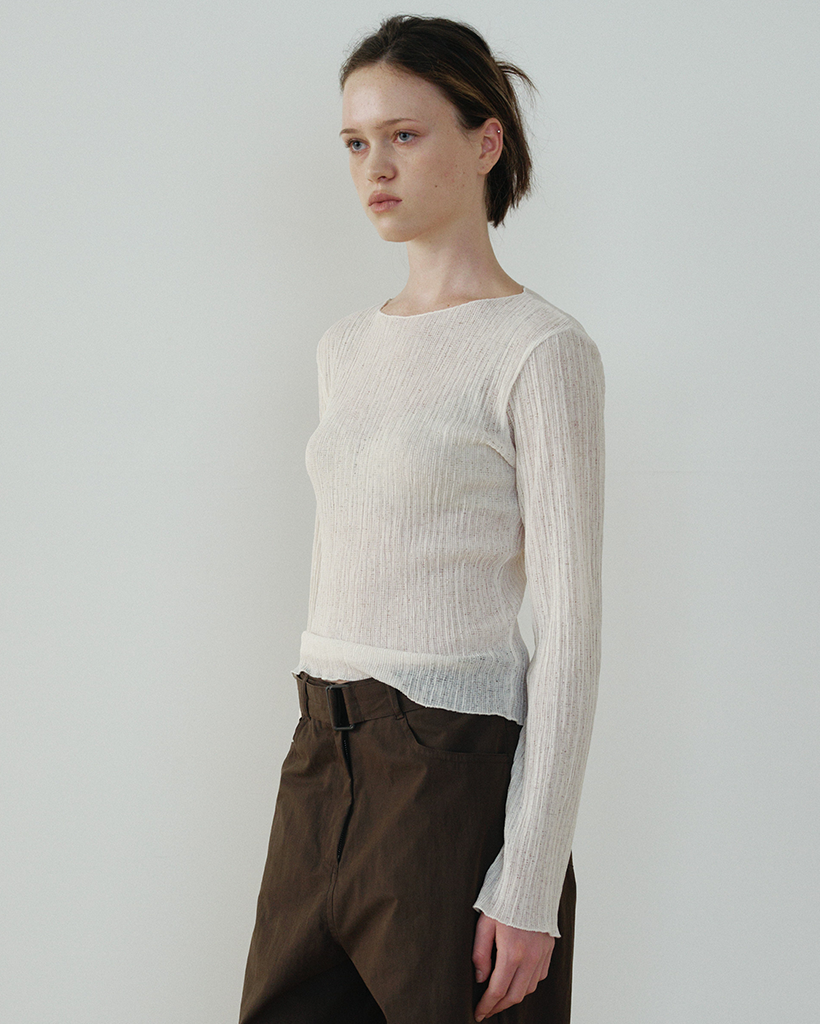 繊細なウェーブプリーツの組織を全体に施したスリムフィットのロングスリーブトップです。軽やかに流れるドレープと表情がさりげないポイントになり、単体はもちろん、さまざまなアウターのインナーとしてもすっきり馴染みます。