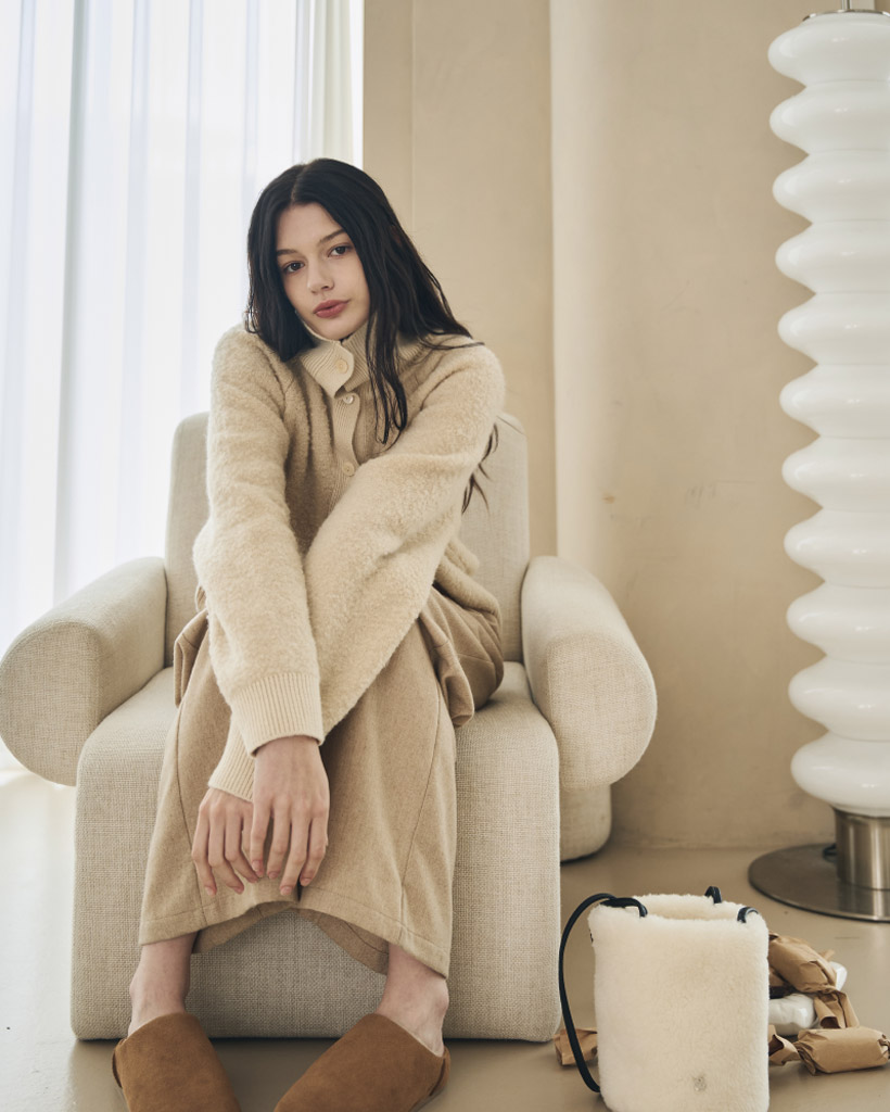 密度感のあるウール混素材にツートーン糸をミックスし、