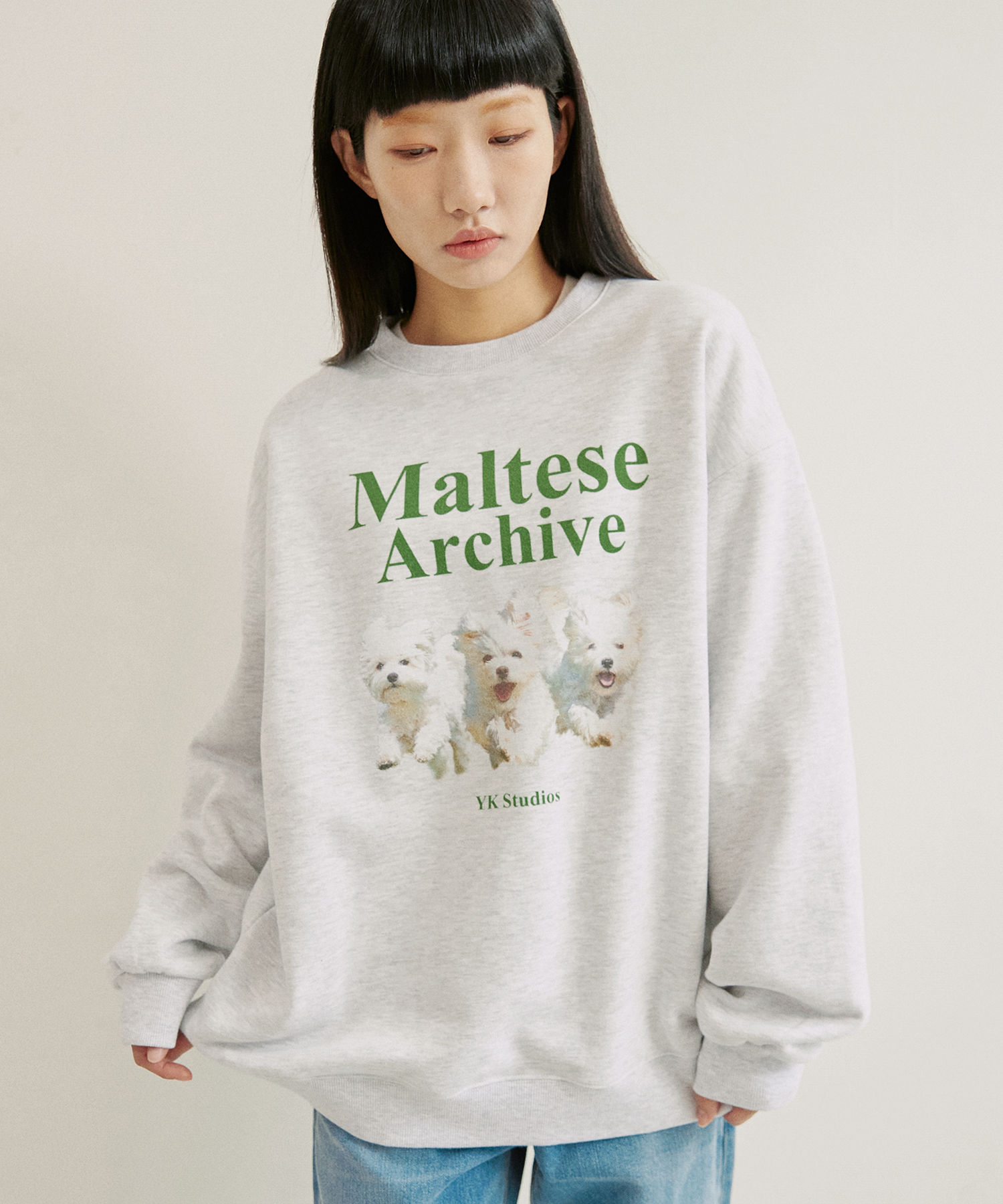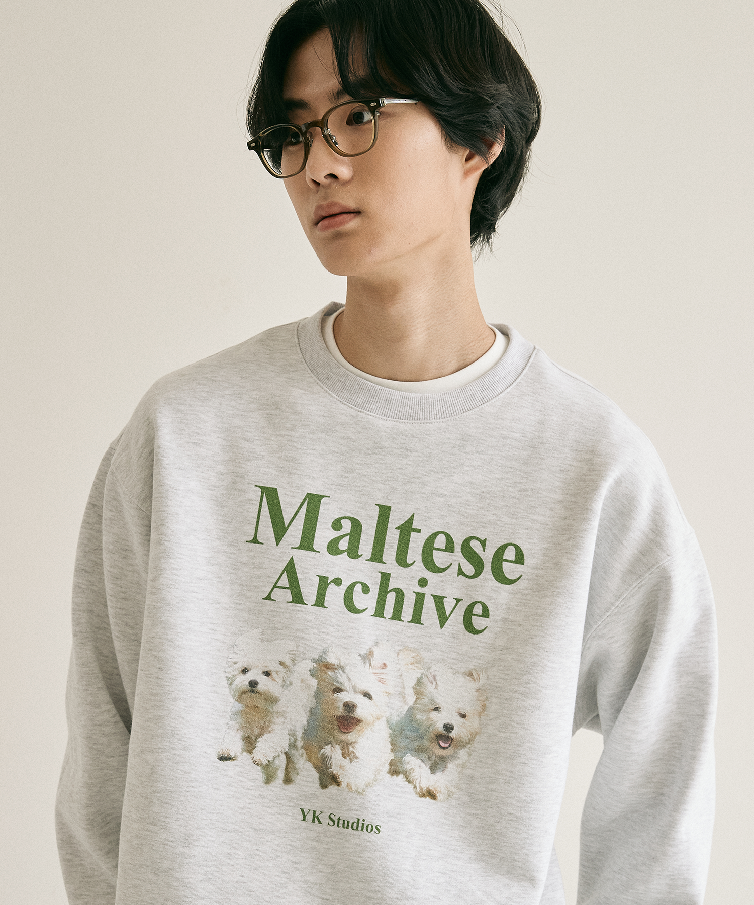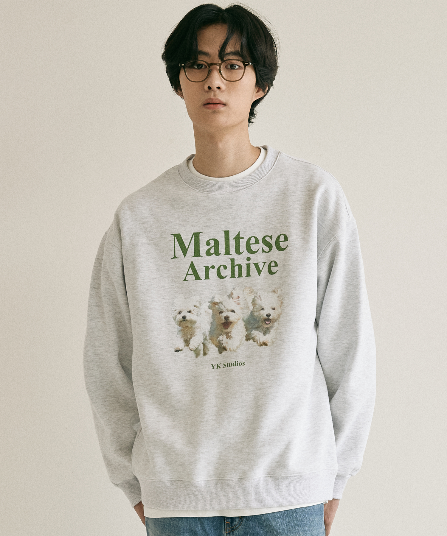 [K-POPアイドル着用] Maltese archive sweatshirts MELANGE WHITE