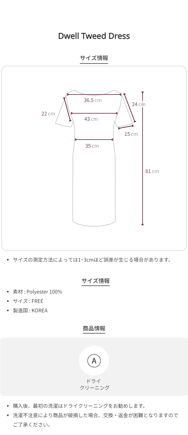 어깨(Shoulder) 36.5 / 가슴(Bust) 43 / 암홀(Armhole) 22 / 소매기장(Sleeve Length) 24 / 소매단면(Sleeve Section) 15 / 허리(Waist) 35 / 총길이(Total Length) 81