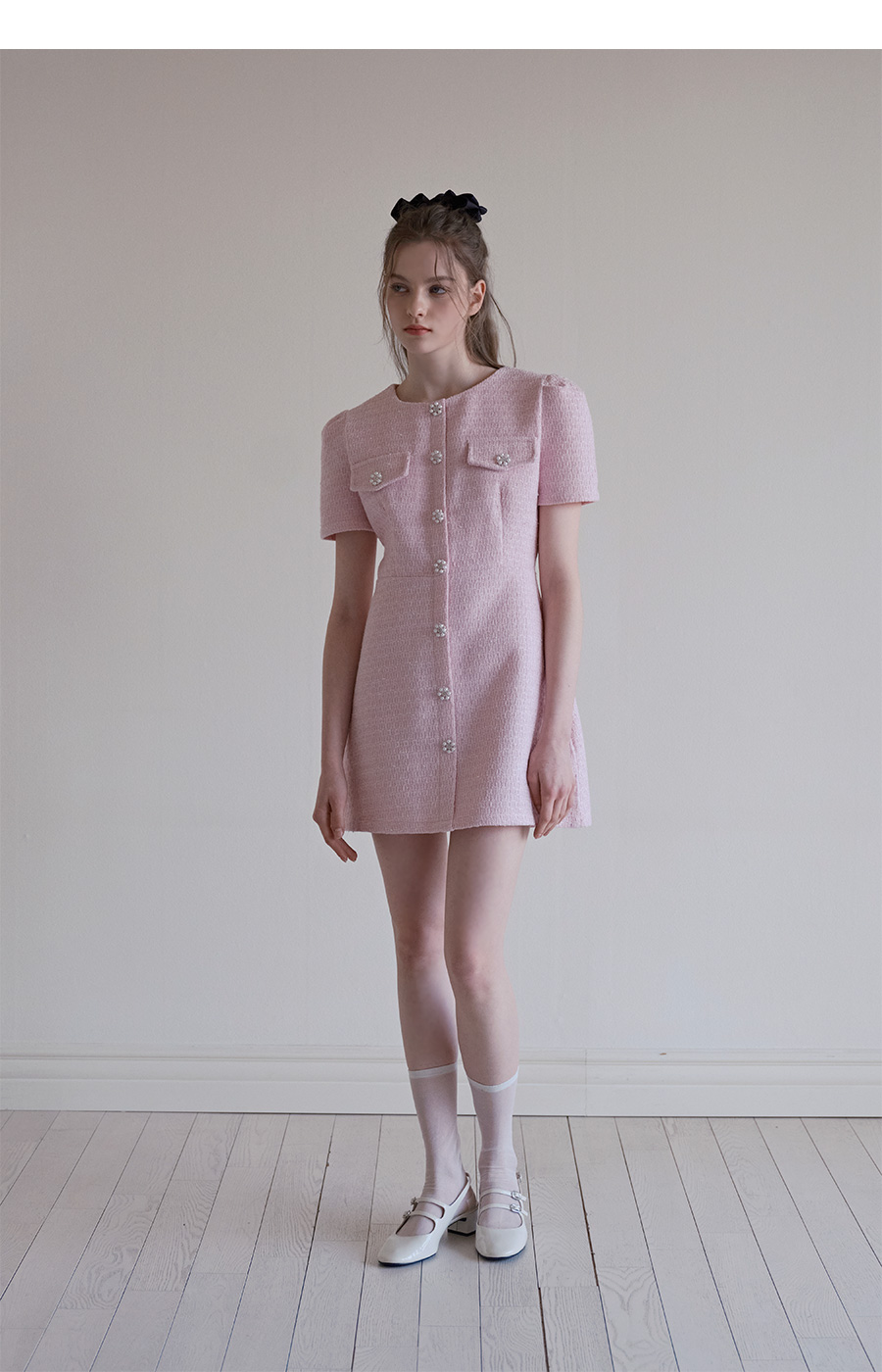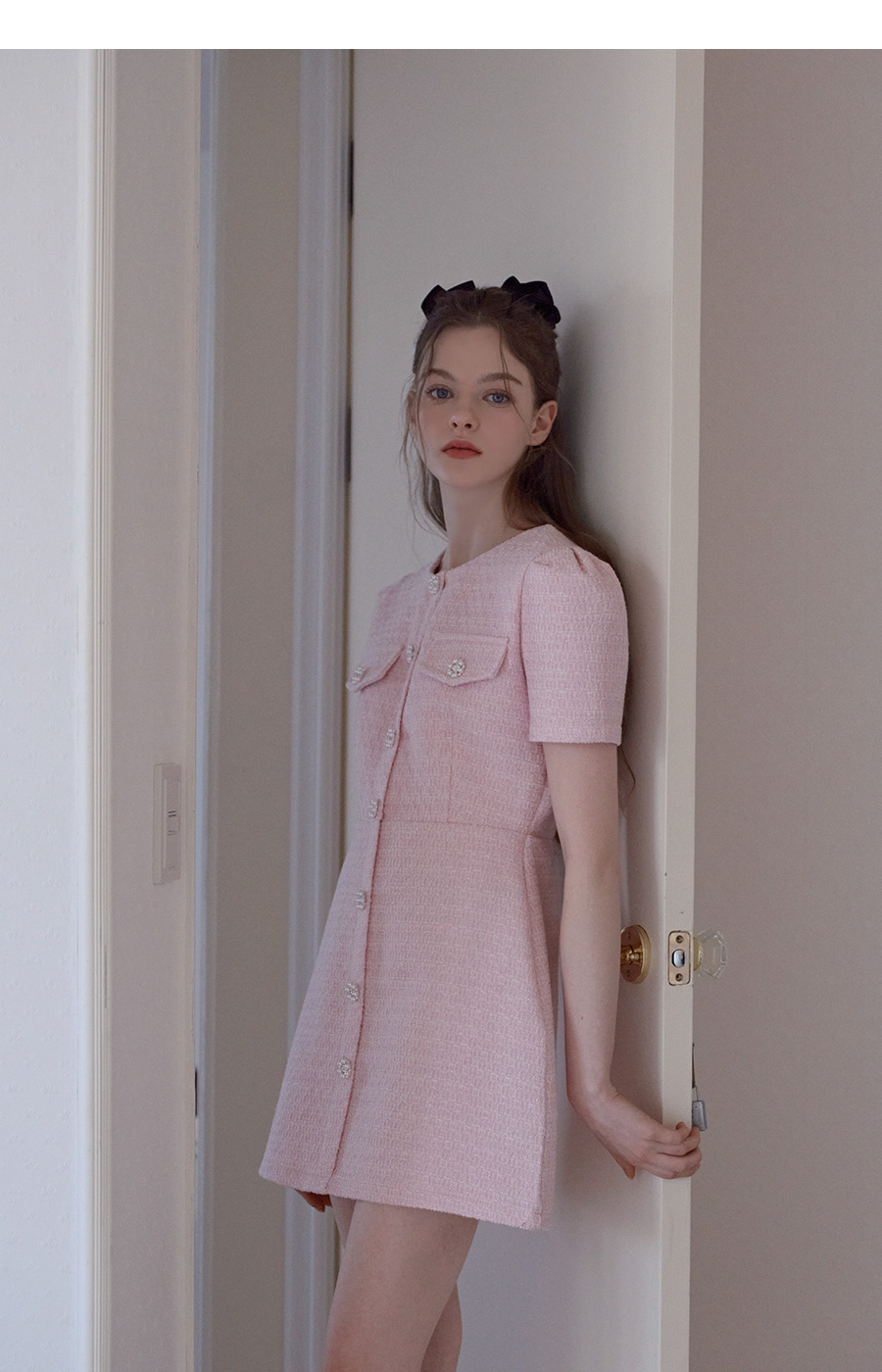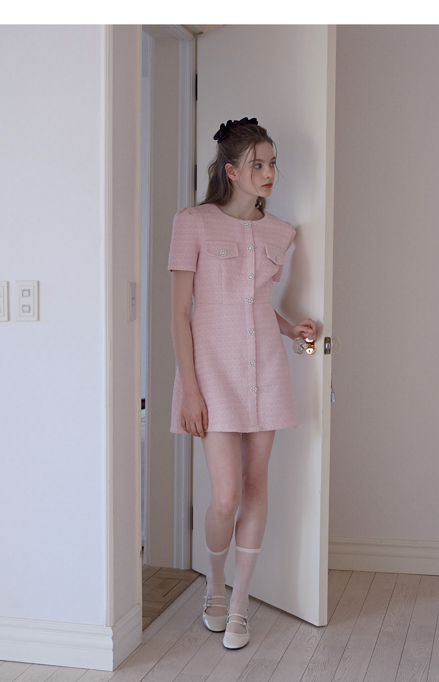 격식있는 자리 등 다양한 모임자리에 연출하기 좋은 반팔 트위드 원피스입니다