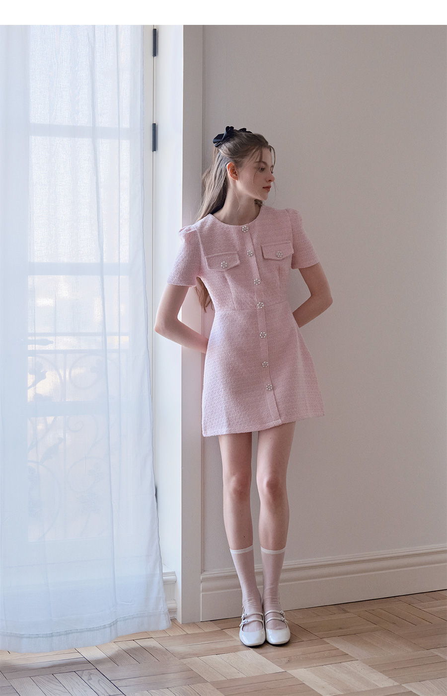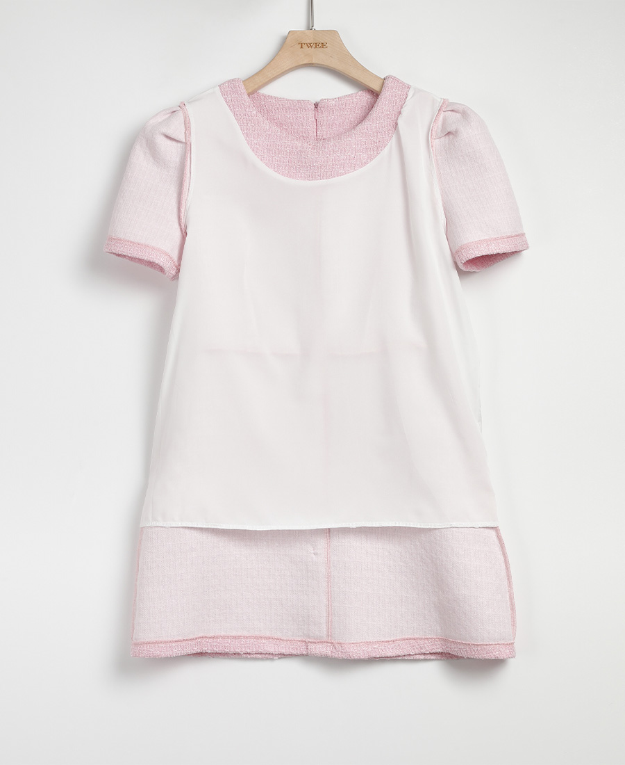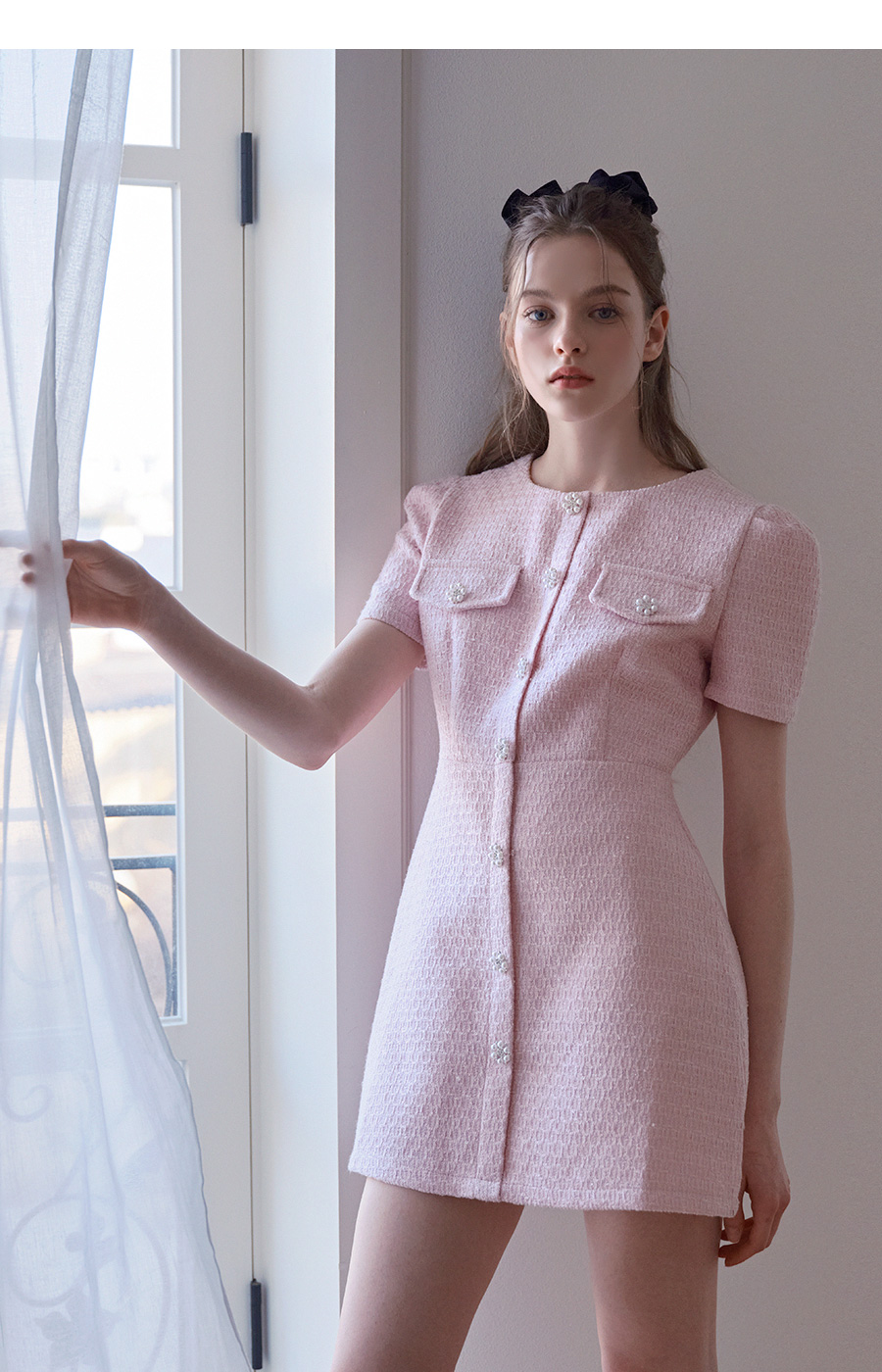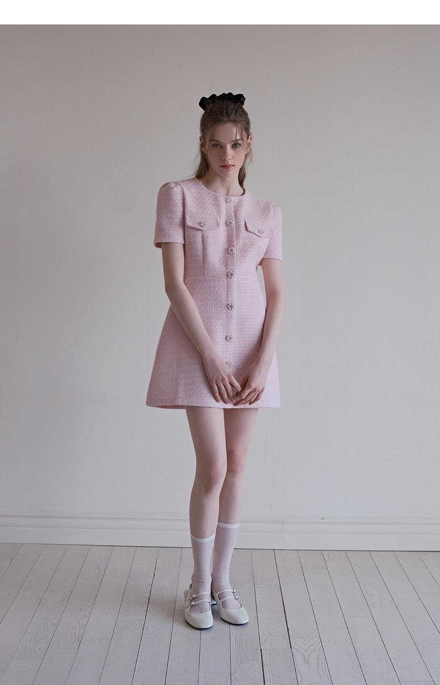 격식있는 자리 등 다양한 모임자리에 연출하기 좋은 반팔 트위드 원피스입니다