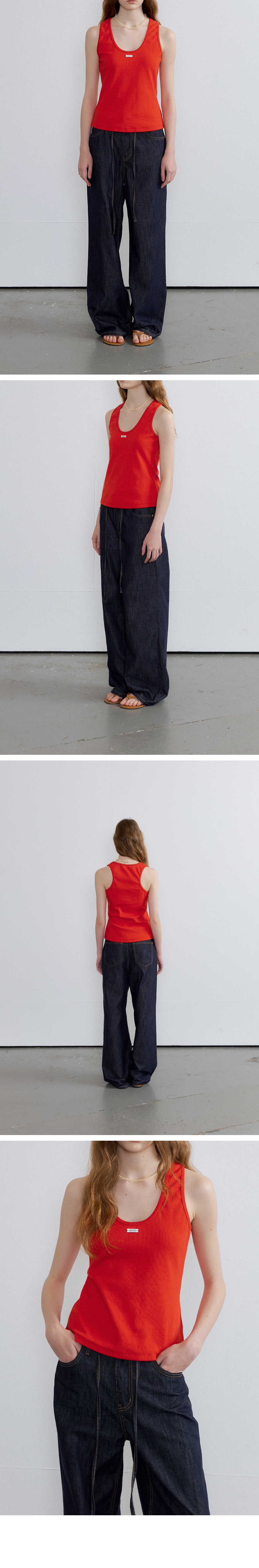 U-neck label point sleeveless top [FRSP07SL03]_Red