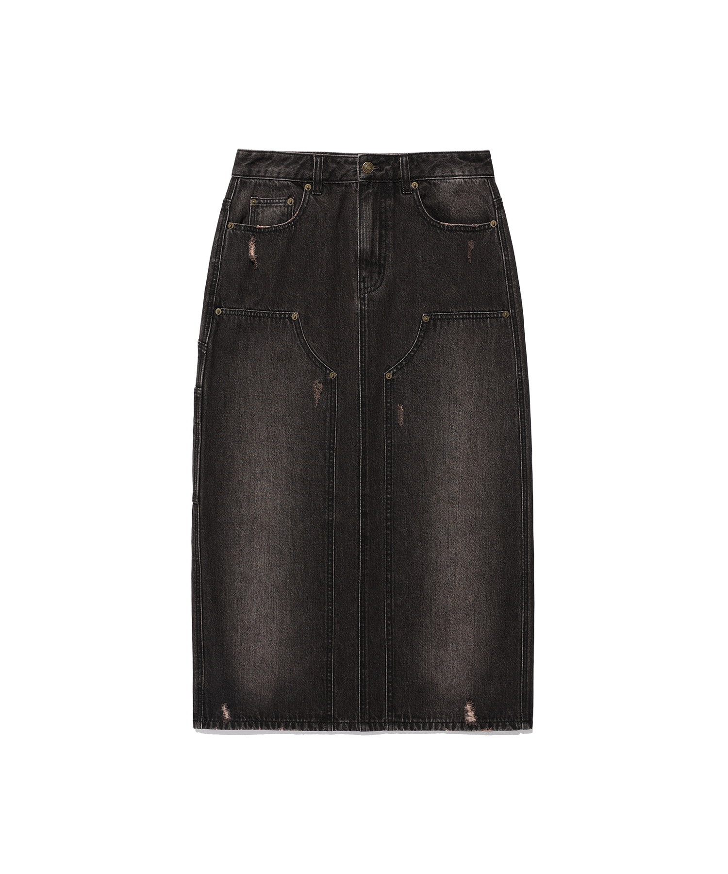 DAMAGED DOUBLE KNEE MAXI SKIRT_BLACK(IK2EFFD115A)