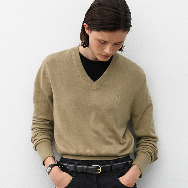 ウール混素材を使用した、上品でクラシックなムードのVネックニットです。
