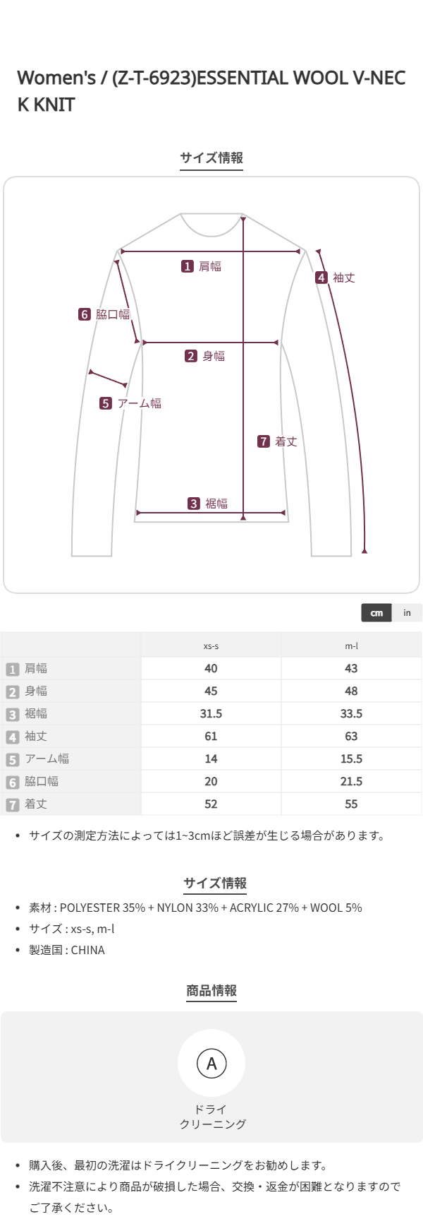 (Z-T-6923)ESSENTIAL WOOL V-NECK KNIT