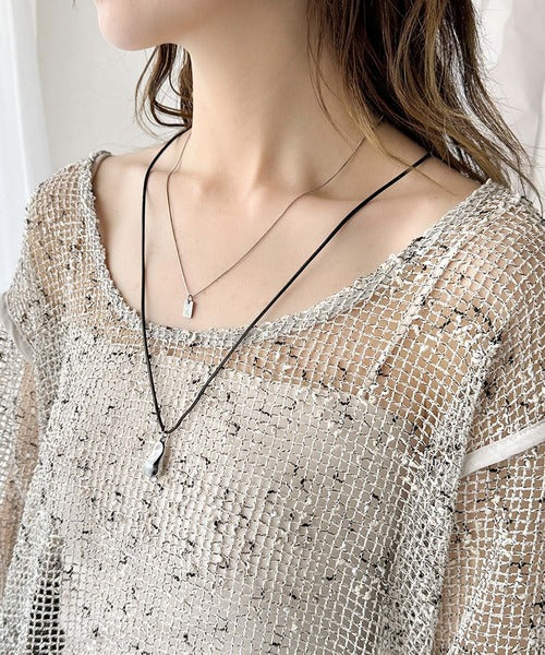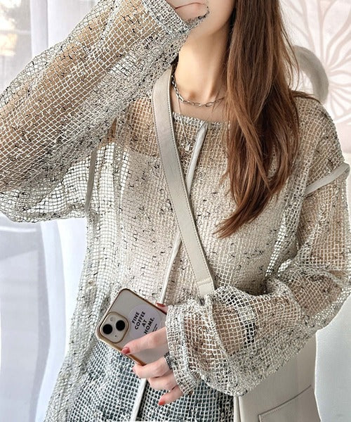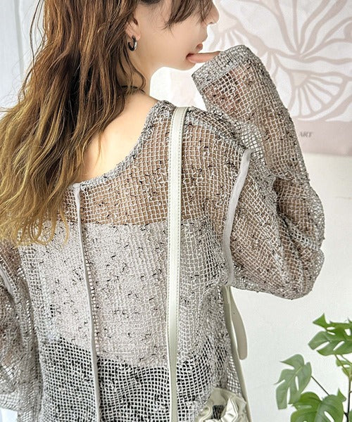 独特の透け感とミックス調のニュアンスが上品さを引き立てるメッシュニット。
