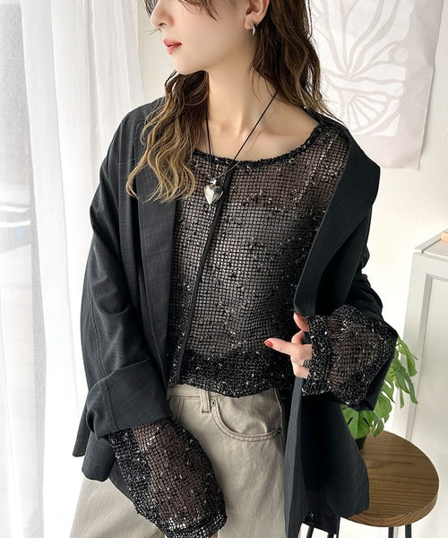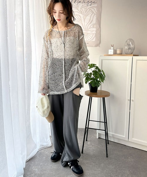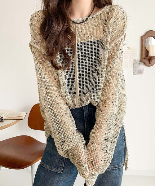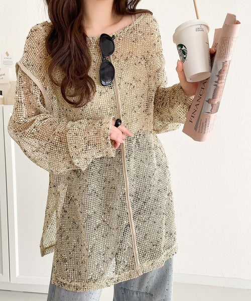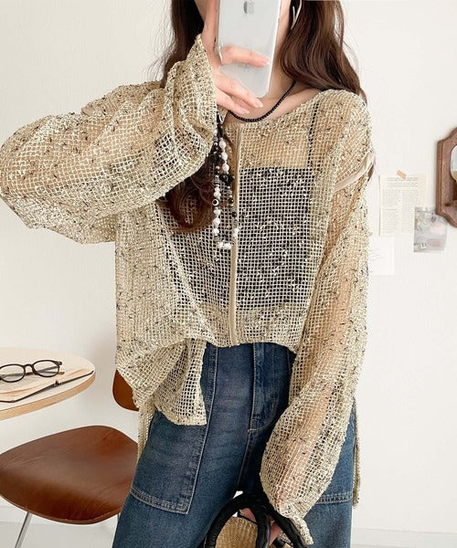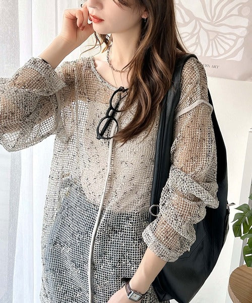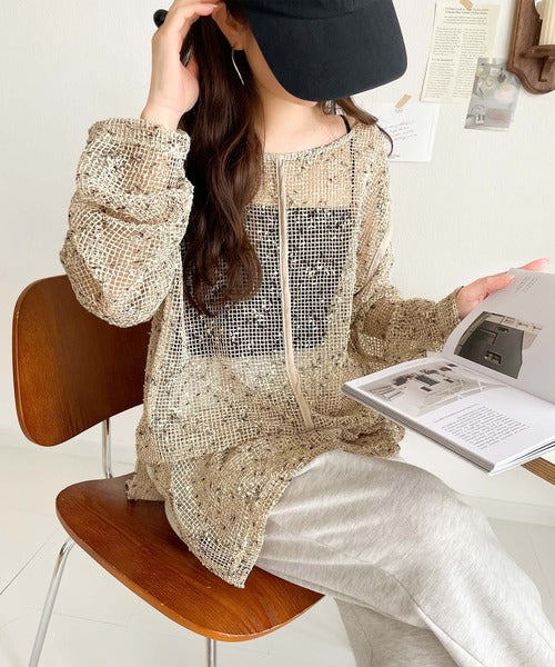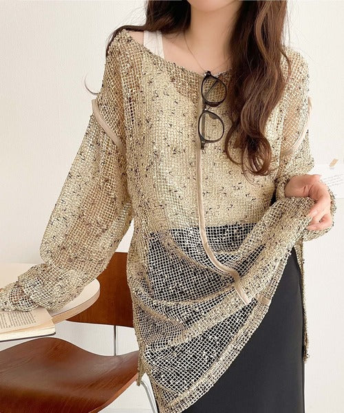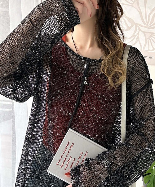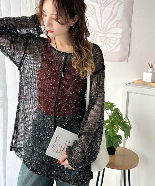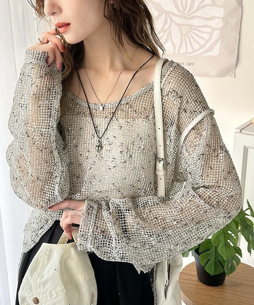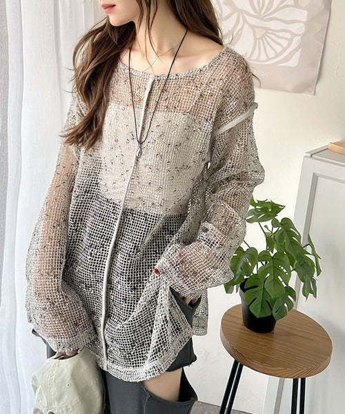 透け感とルーズシルエットが今っぽい!前後2wayメッシュニットトップス(長袖) ce1240067