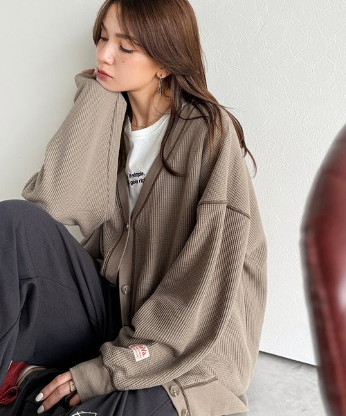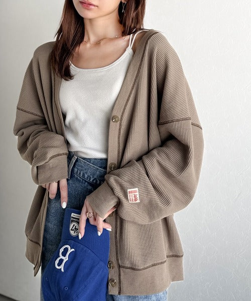 ワッフル素材の柔らかな風合いが心地よいVネックカーディガン!
