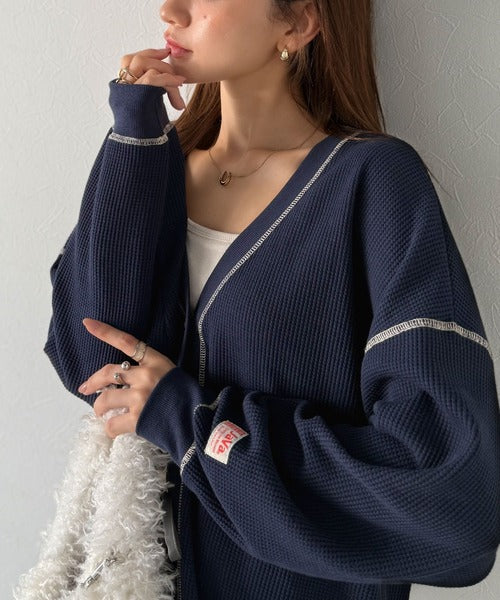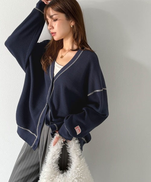 配色ステッチが大人可愛いワッフルカーデ登場!